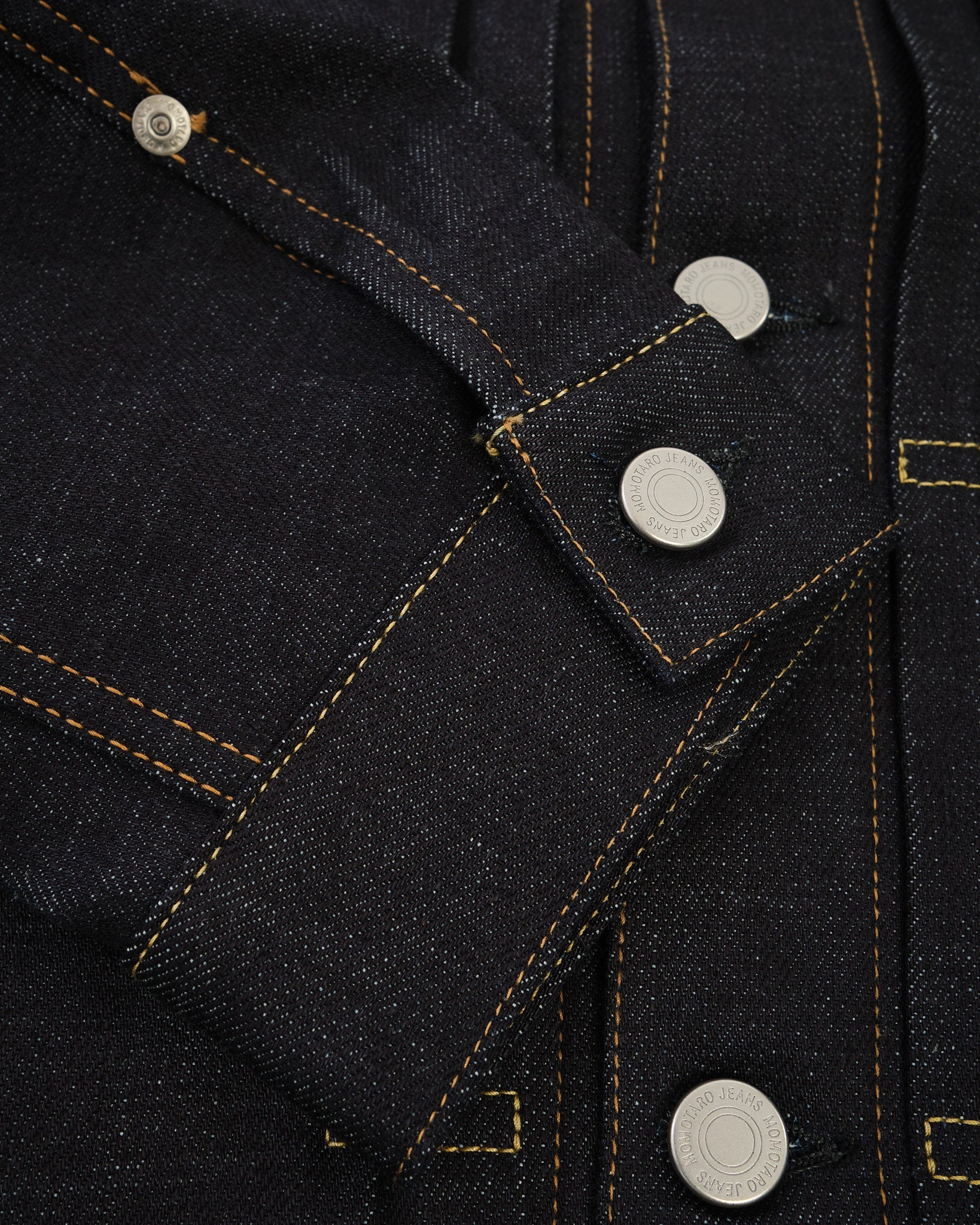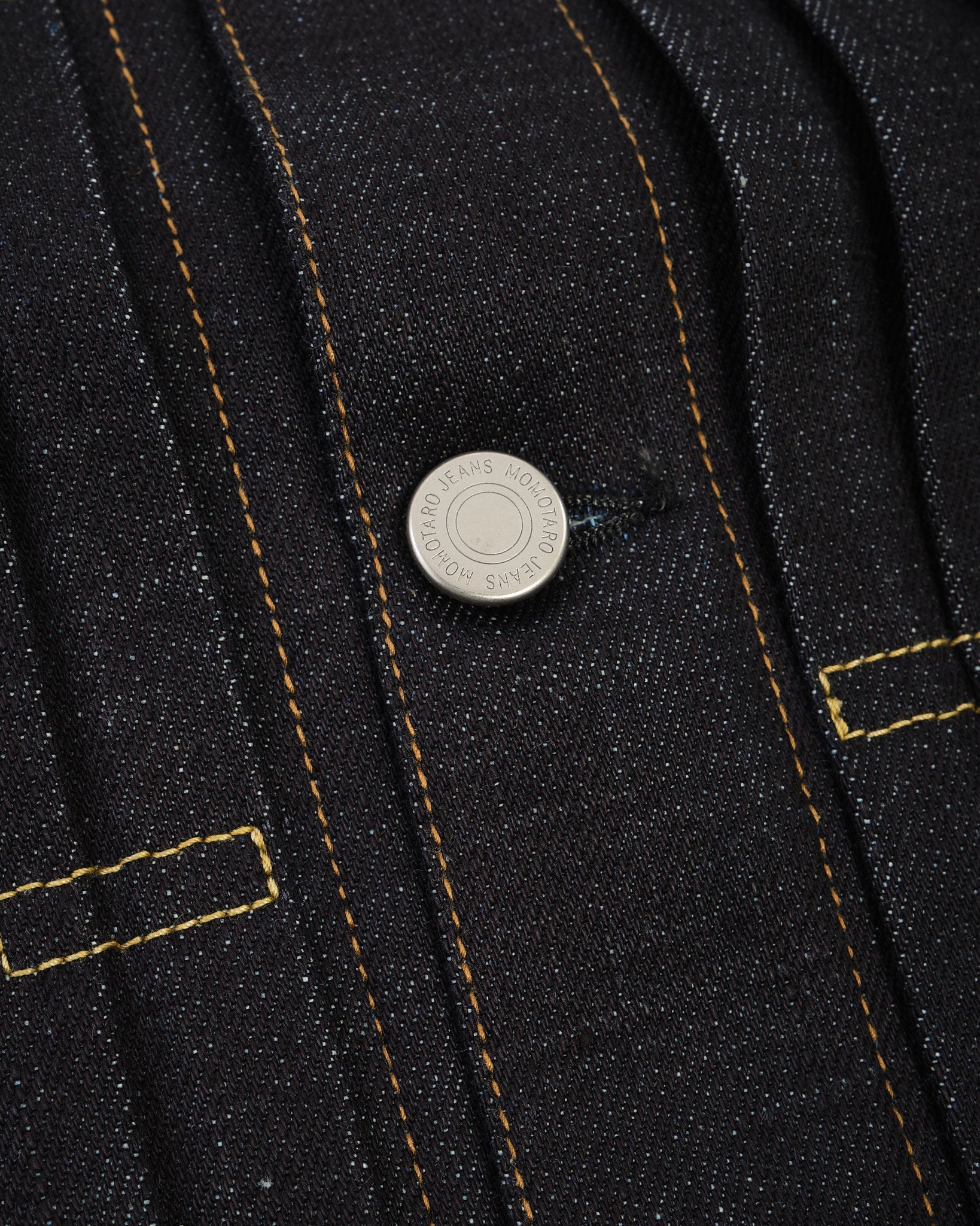 La veste en jean #002 en denim Tokuno Blue de 14,7 oz par Momotaro est une version raffinée d'une silhouette classique, fabriquée à partir d'un denim rigide et non lavé tissé à partir de 100% de coton du Zimbabwe. Teinte dans la signature de la marque 特濃 Tokuno Blue, ce tissu offre une tonalité indigo profondément frappante et une texture sergé qui évoluera magnifiquement avec l'usure. La coupe est propre et équilibrée, présentant une largeur de corps détendue et une longueur modérée pour le confort sans volume. Des poches latérales fonctionnelles améliorent l'utilité quotidienne, tandis que le motif de la veste est taillé pour un mouvement gracieux et une silhouette nette. Traitée pour réduire le rétrécissement après lavage, cette pièce non lavée offre une pureté classique du denim avec une mise à jour moderne réfléchie.