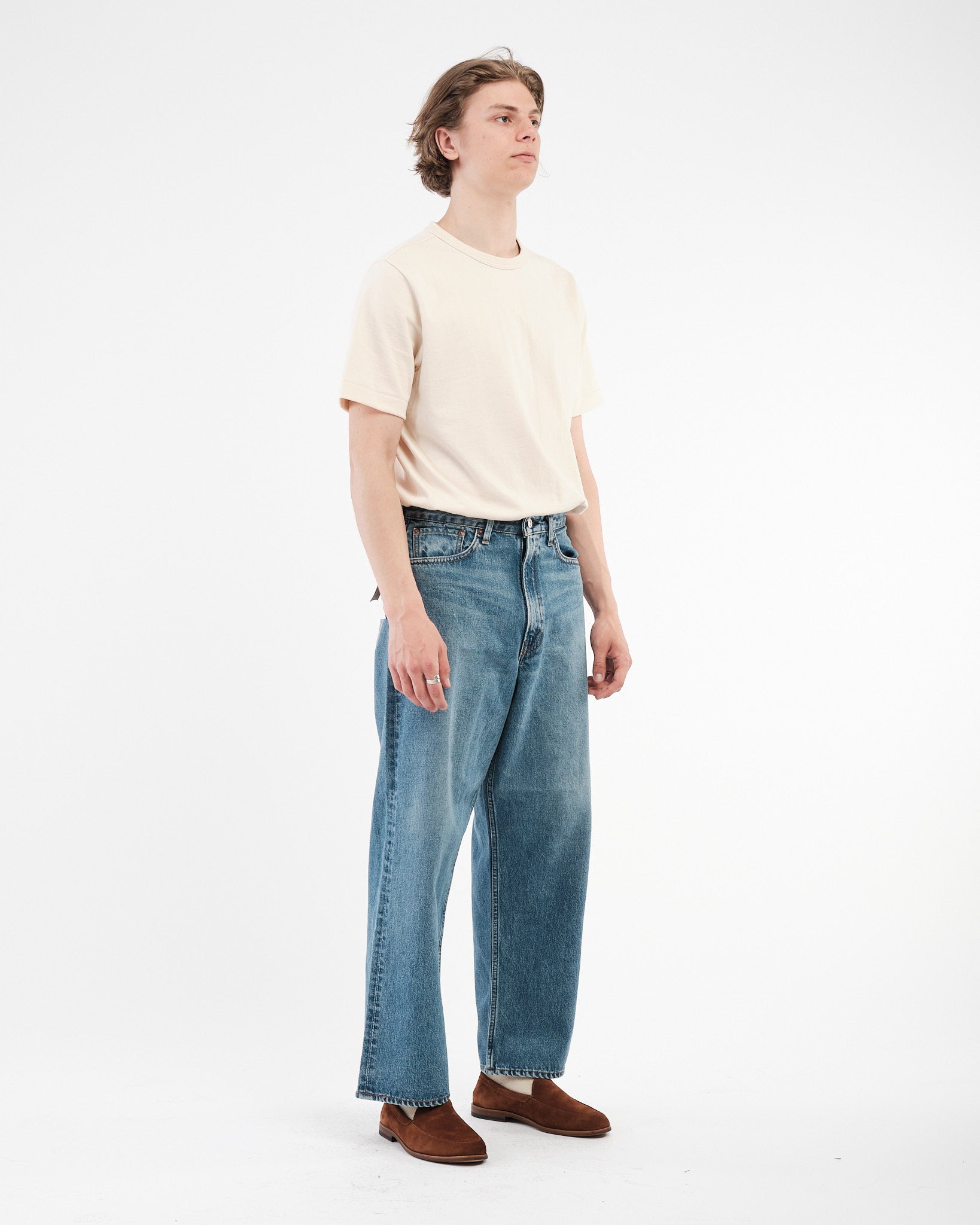 Fabriqués à partir de denim japonais de première qualité, ces pantalons sont pré-lavés pour obtenir une sensation douce et déjà portée dès le premier usage. La finition "Denim Used" offre une apparence vintage et vécue, ajoutant du caractère au vêtement. La construction classique à cinq poches assure la praticité, tandis que la fermeture éclair et le matériel personnalisé augmentent la durabilité et la fonctionnalité.