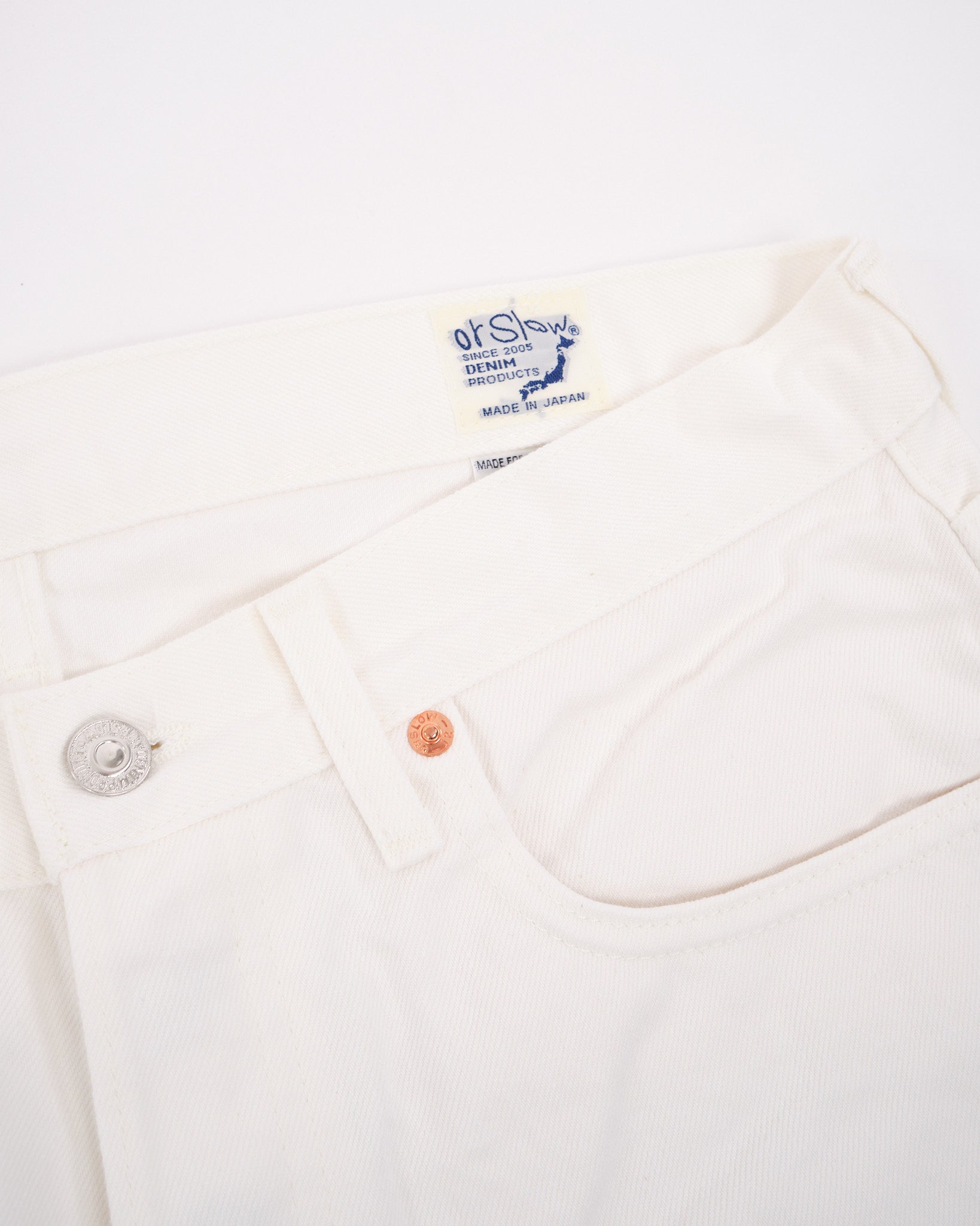Faites l'expérience du mélange de simplicité et de durabilité avec les jeans blancs 105 80s de orSlow. Confectionnés avec expertise au Japon, ces jeans incarnent une ambiance des années 80 avec leur silhouette décontractée et leur denim non selvedge de haute qualité de 13,5 oz. Versatiles et à la mode, ces jeans ne sont pas juste adaptés pour la saison estivale. Le tissu 100% coton assure le confort tandis que la fermeture à boutons et le design à cinq poches ajoutent une fonctionnalité pratique. Associez ces jeans blancs avec des baskets et une chemise en denim, pour un look intemporel ou portez-les avec une veste M 65 pour faire une déclaration de mode audacieuse.