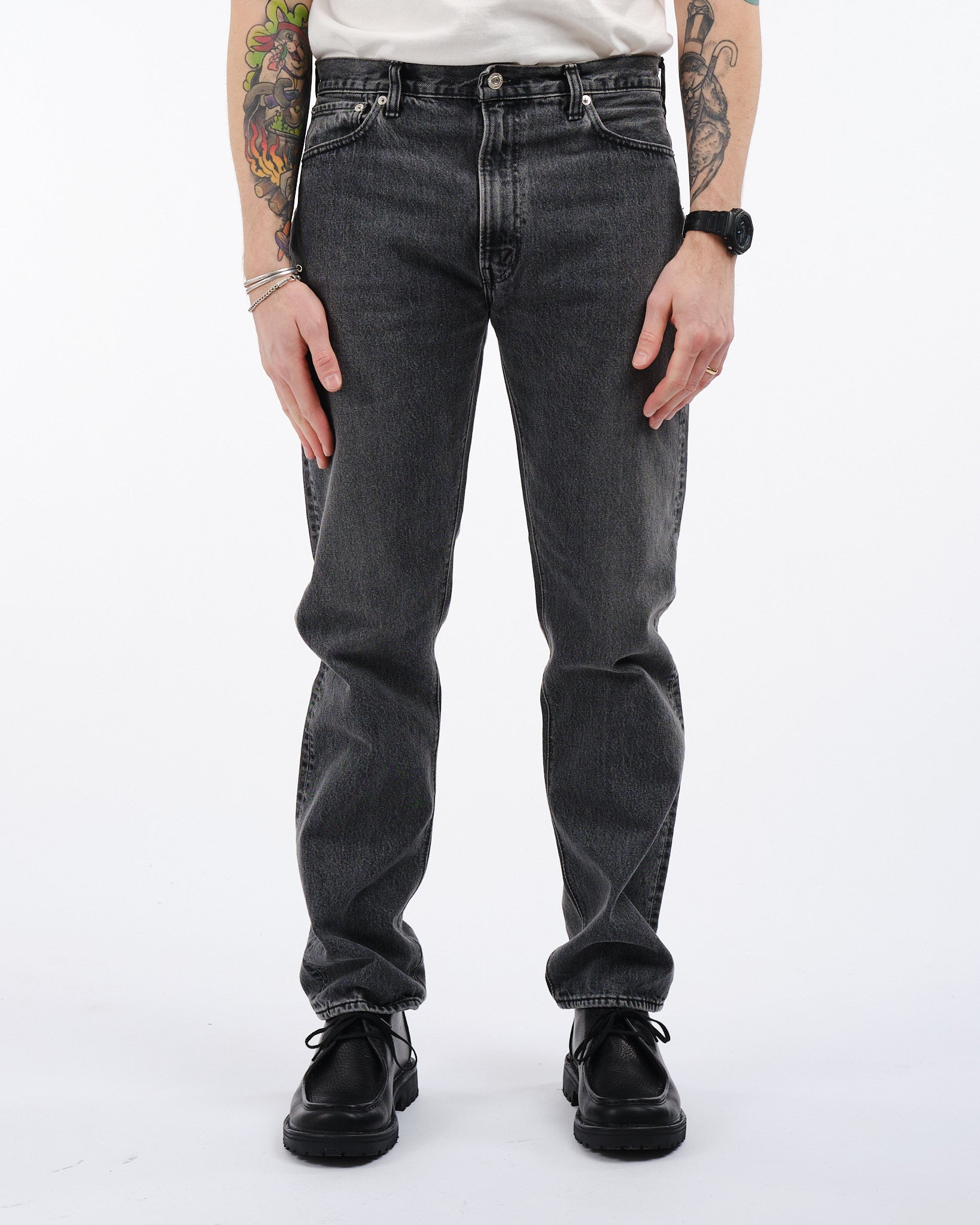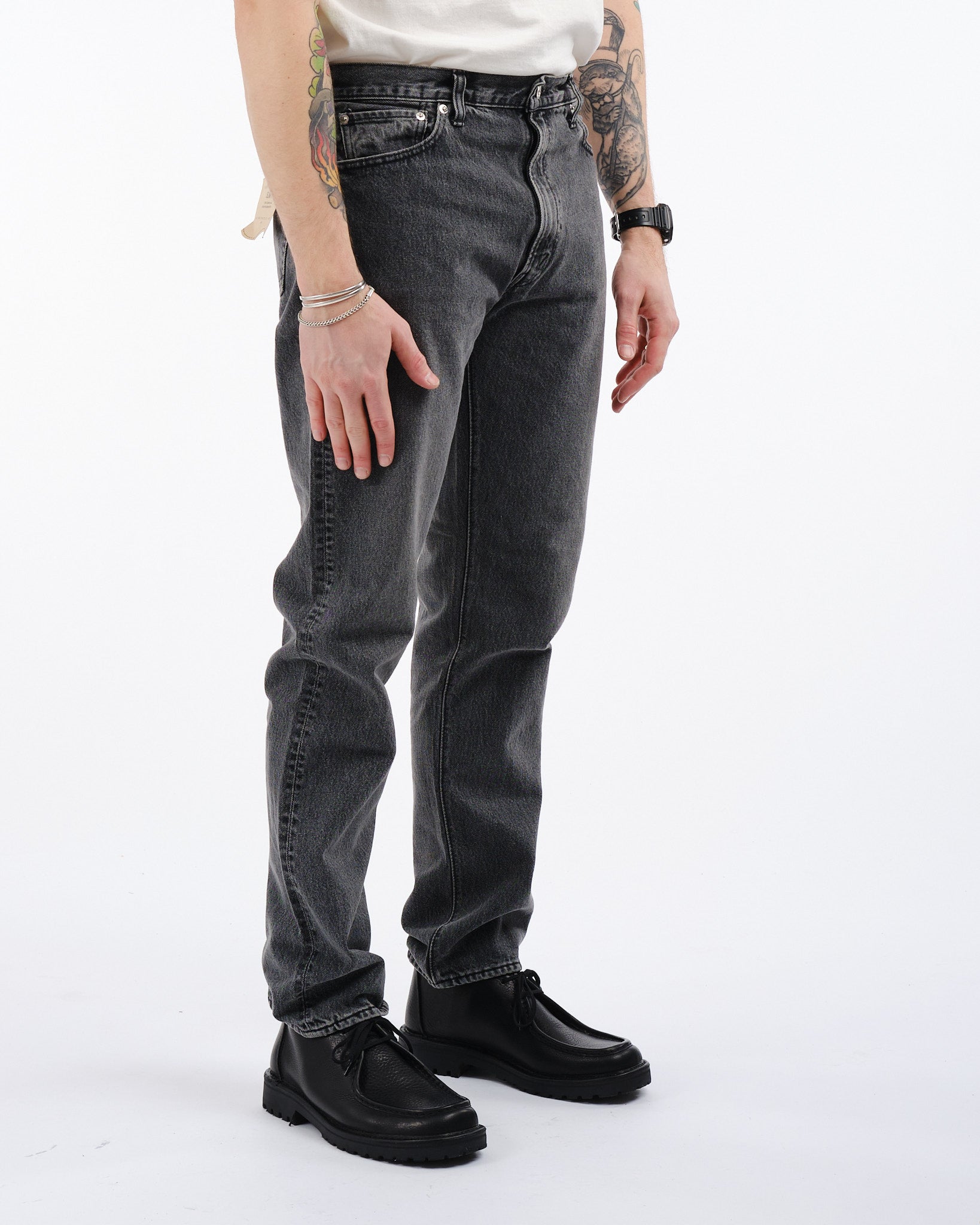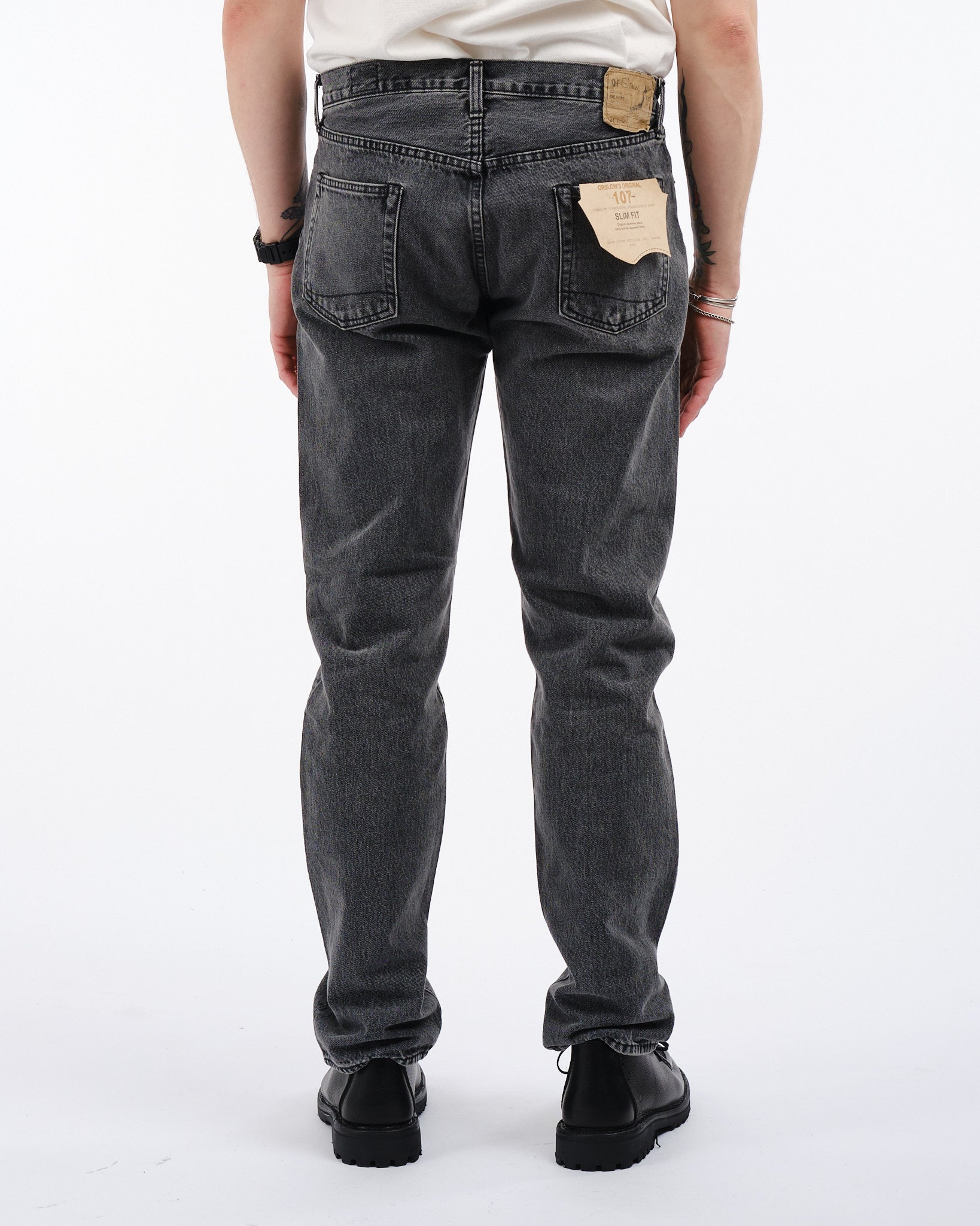 Faites l'expérience de l'attrait intemporel du ORSLOW 107 IVY FIT en Black Denim Stone Wash. Ces jeans sont confectionnés avec une attention particulière en utilisant un denim de 13,5oz qui va au-delà de la simple mode pour faire une déclaration audacieuse. S'inspirant des vintage 505s, le Denim Ivy présente une taille moyenne et une coupe ajustée avec une jambe fuselée qui rend hommage au style iconique de la jeunesse des années 60. Pour ajouter une touche de sophistication, ces jeans sont ornés d'un patch de marque et conçus avec une configuration classique à cinq poches. Ce denim incarne la fusion de la tradition et du design contemporain, le rendant un ajout inestimable à toute garde-robe.