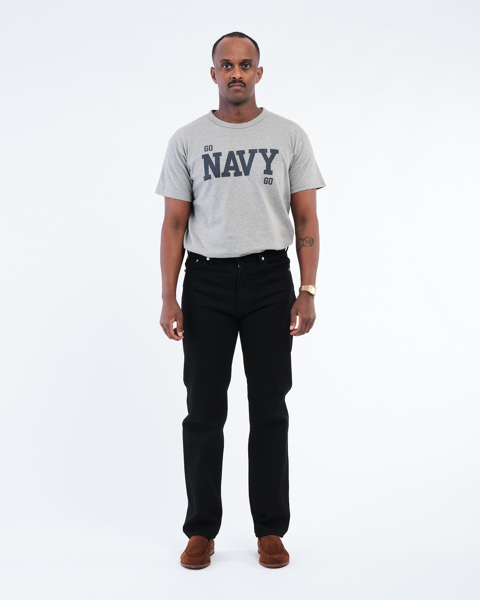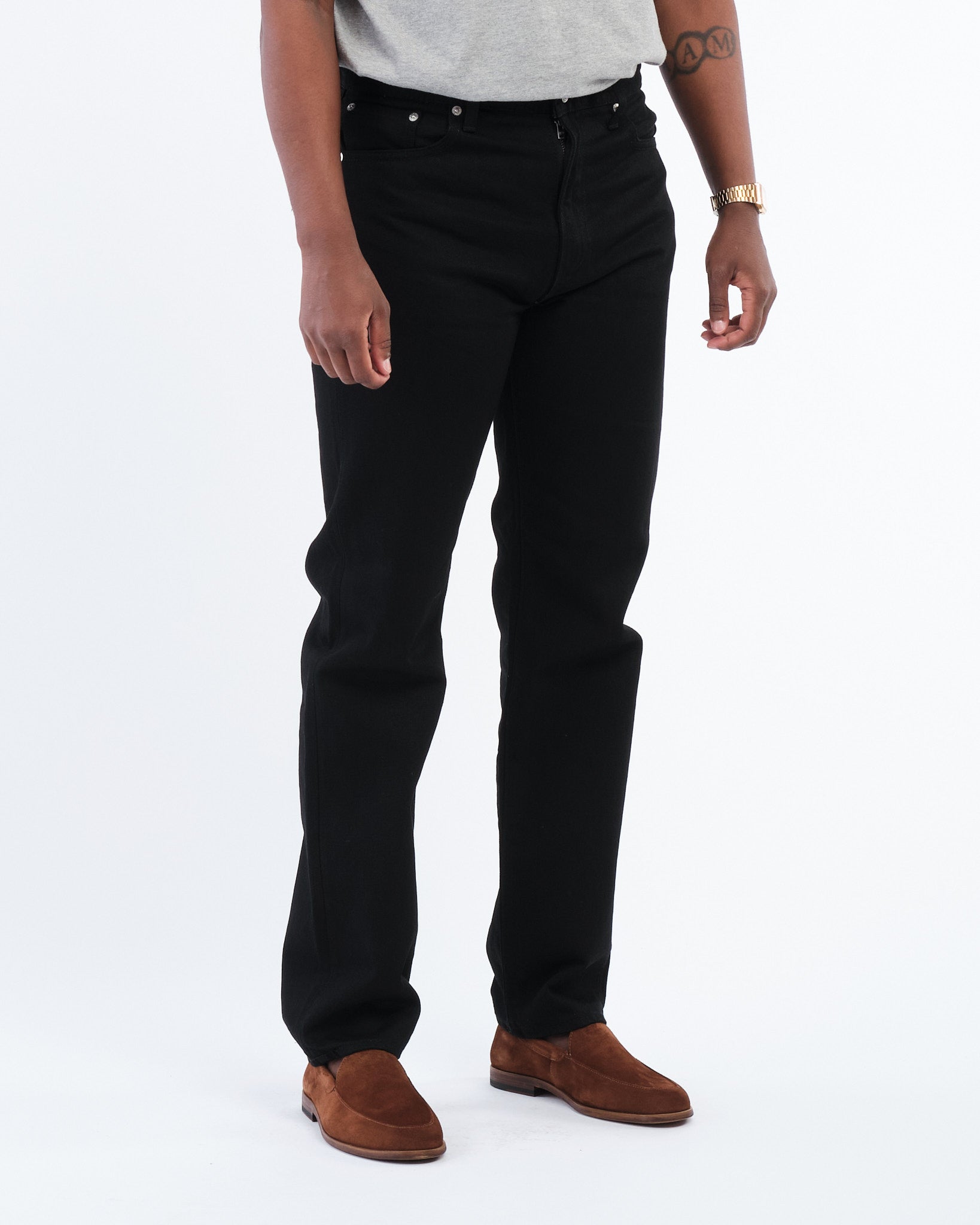 Révélez l'intemporalité du denim noir avec le jean 107 Ivy Fit Black Denim par orSlow. Ces jeans slim sont le summum de l'approche réfléchie de orSlow en matière de production de denim, sélectionnant à la main les fils de coton dans son atelier à Hyogo, Japon. Tissés sur un métier à tisser vintage, ces jeans ont une tenue robuste et authentique qui s'adoucira avec le port. Qu'ils soient associés à des baskets ou à des mocassins, ils s'adaptent sans effort à toute occasion. Les jeans comportent des passants pour ceinture, cinq poches, une fermeture bouton et zip, et un patch de marque en cuir. Fabriqués à partir de 100% coton, ces jeans reflètent l'approche lente de orSlow dans un monde de mode rapide, offrant un style tout noir durable avec une coupe slim contemporaine et une jambe fuselée.