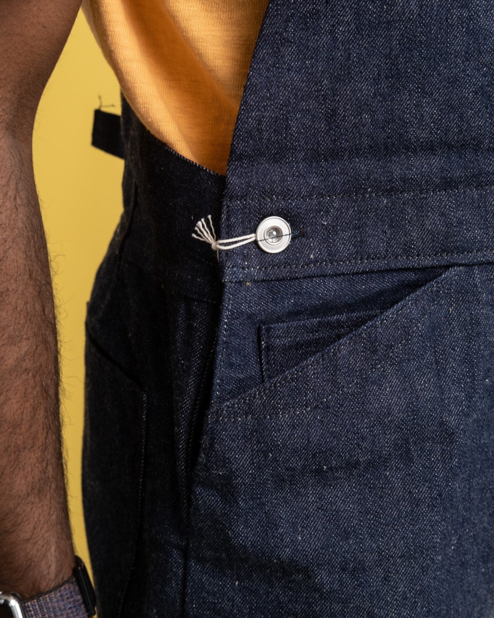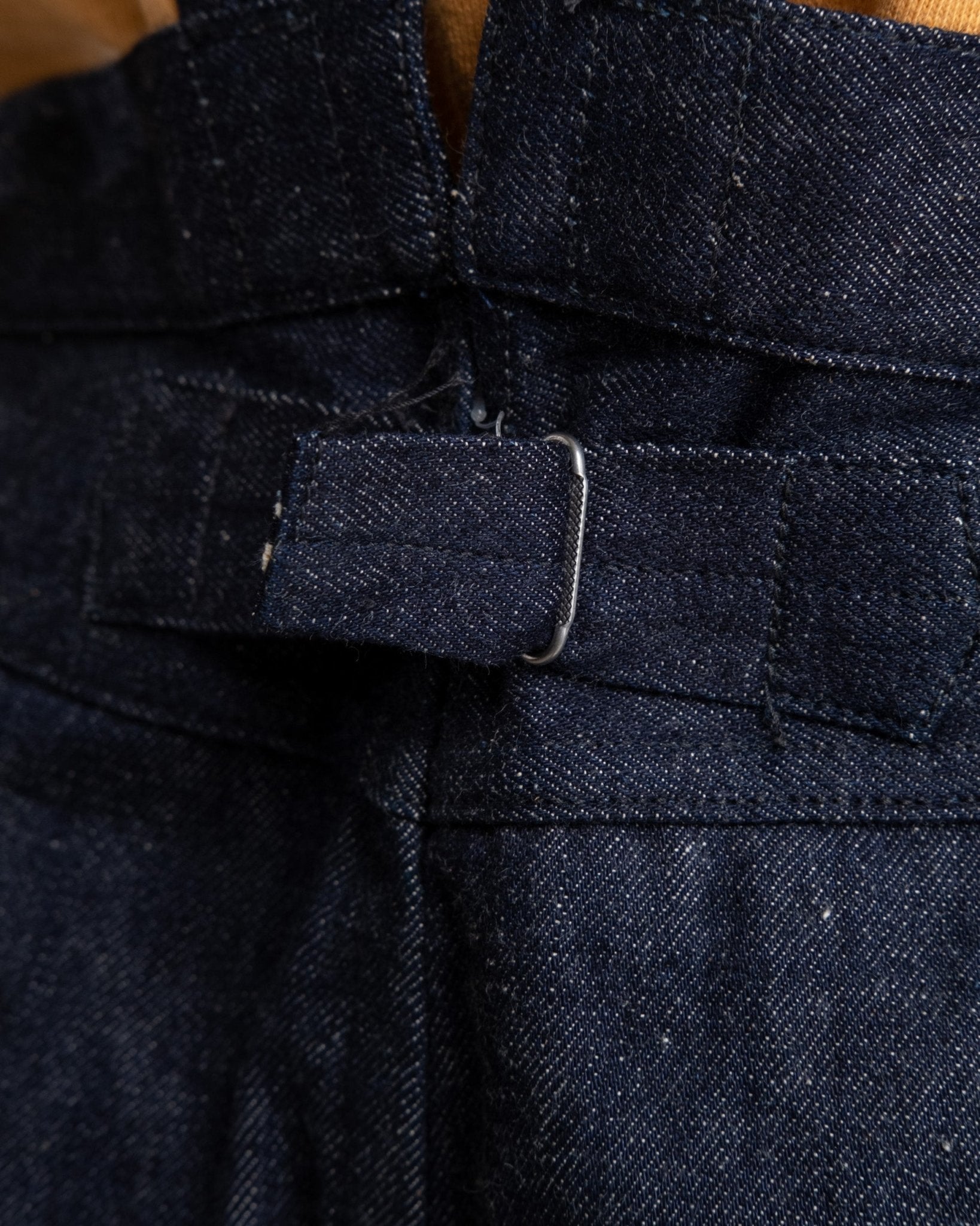 1220 Turn of Century Denim Au total 10 oz un lavage de Warehouse & Co. fabriqué au Japon. Inspiré par les salles des années 1800, créé ici avec une attention incroyable aux détails pour reproduire les détails originaux. Avec des boucles détachables, une poche arrière simple, trois poches avant et une plus petite poche de cuisse. Fabriqué à l'aide d'une machine à verrouillage pour refléter la méthode d'origine utilisée dans l'industrie des vêtements à l'époque. Fait au Japon.