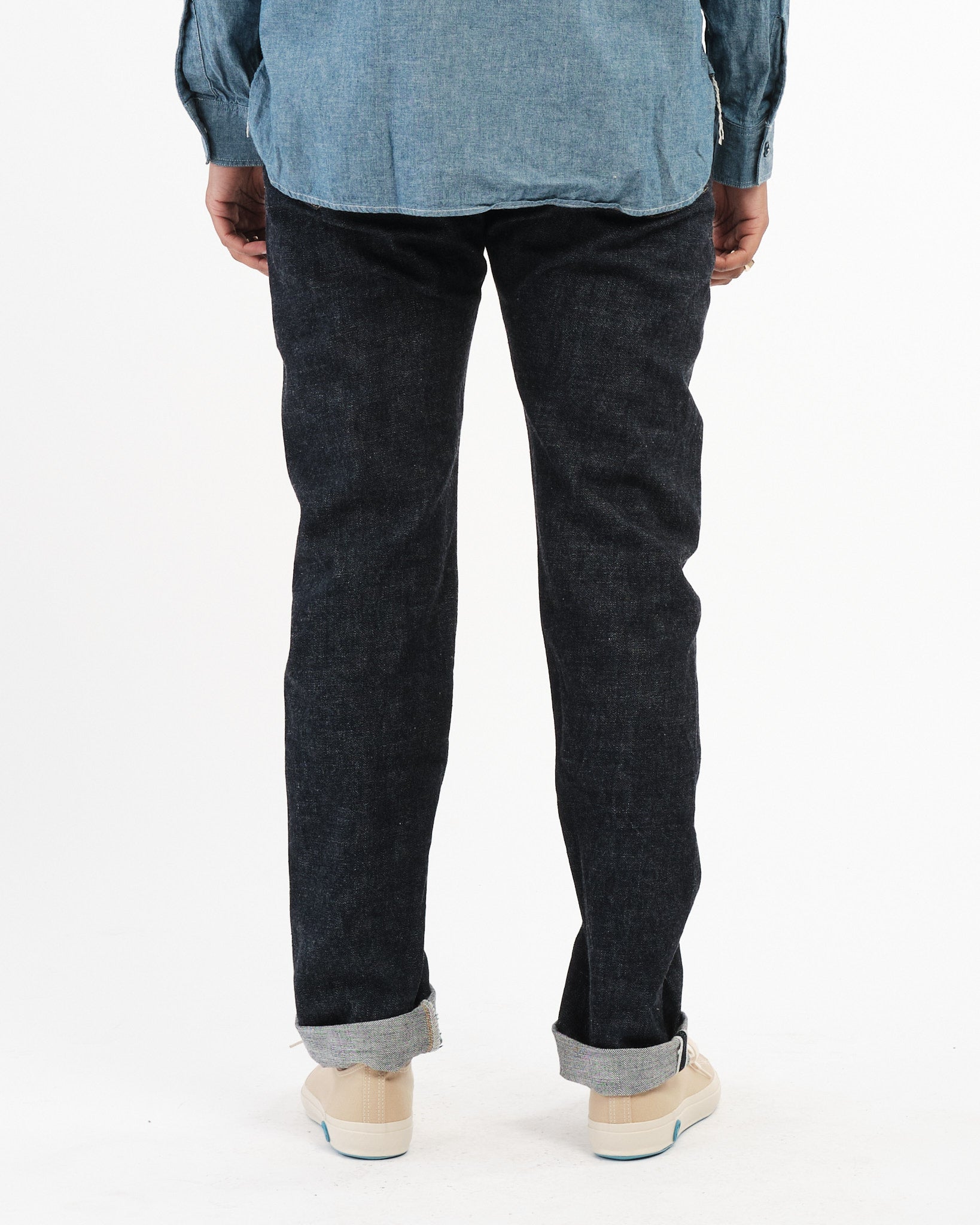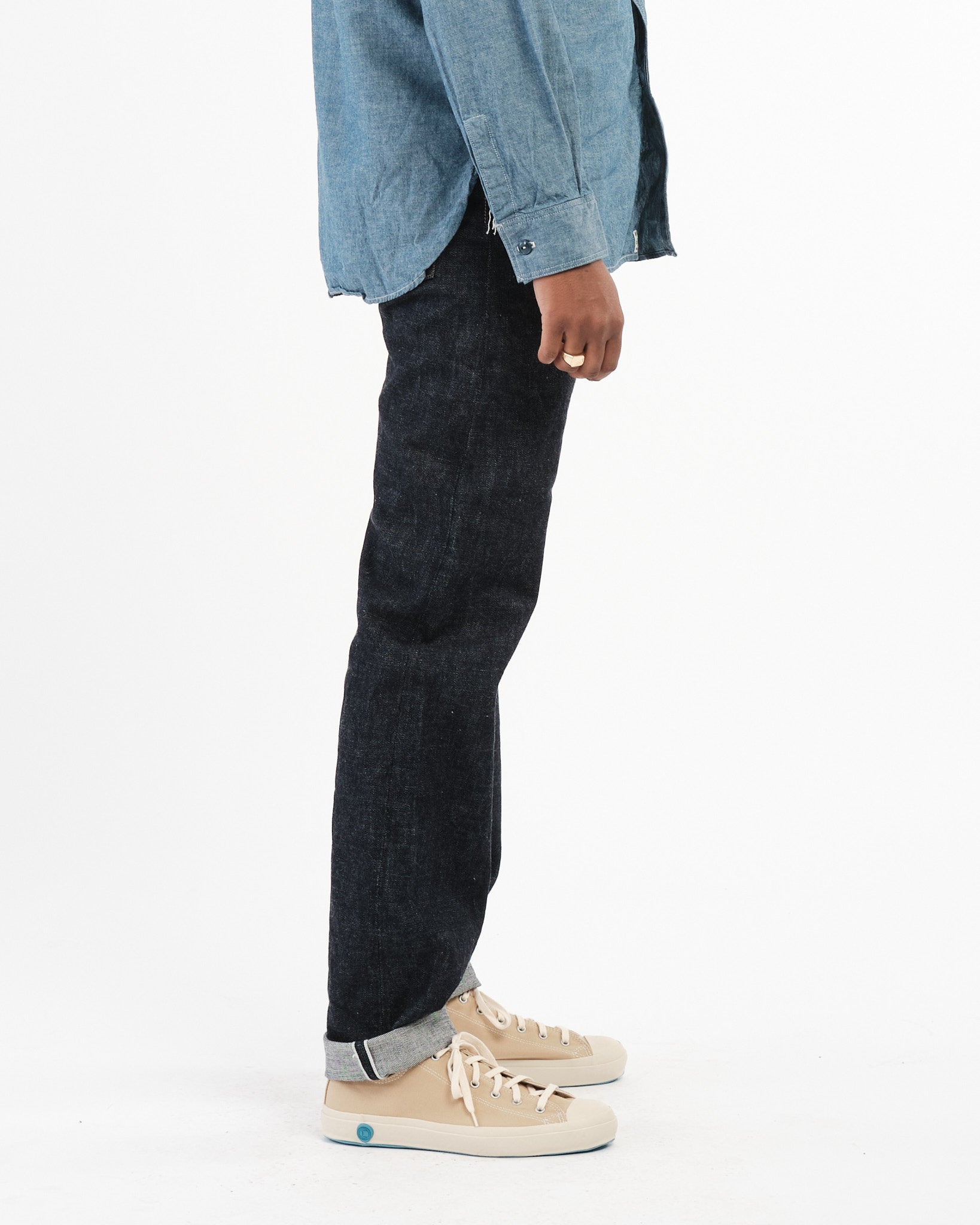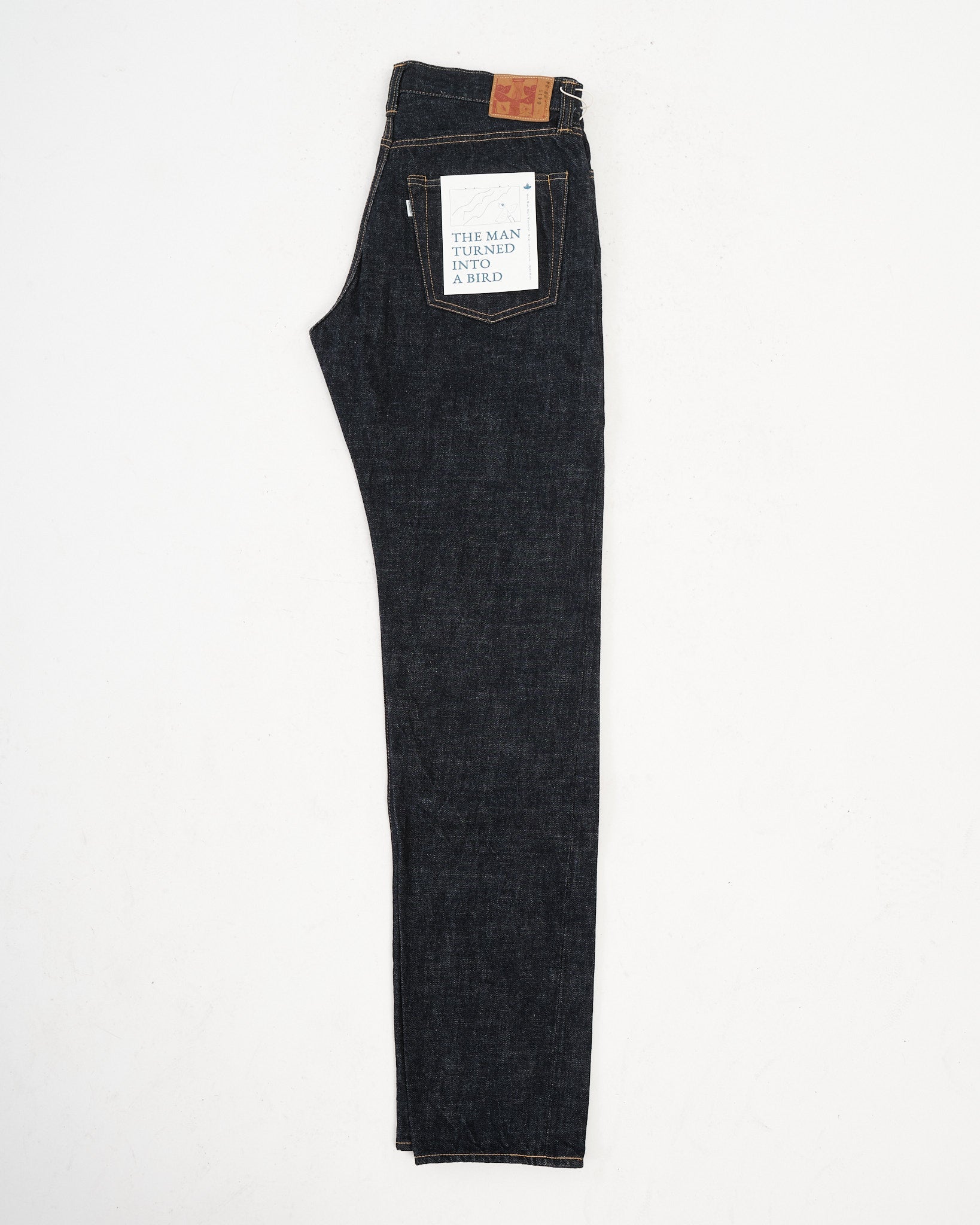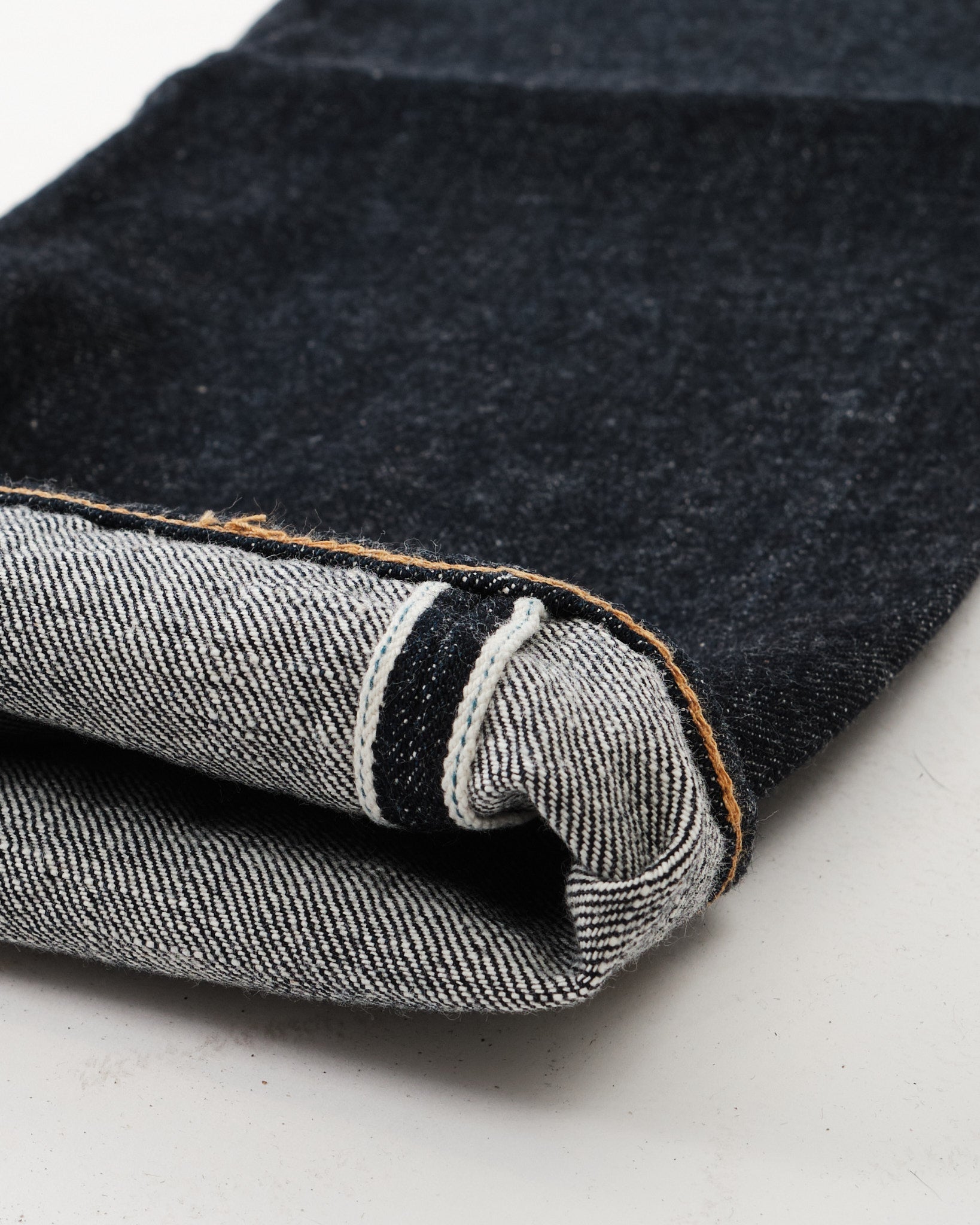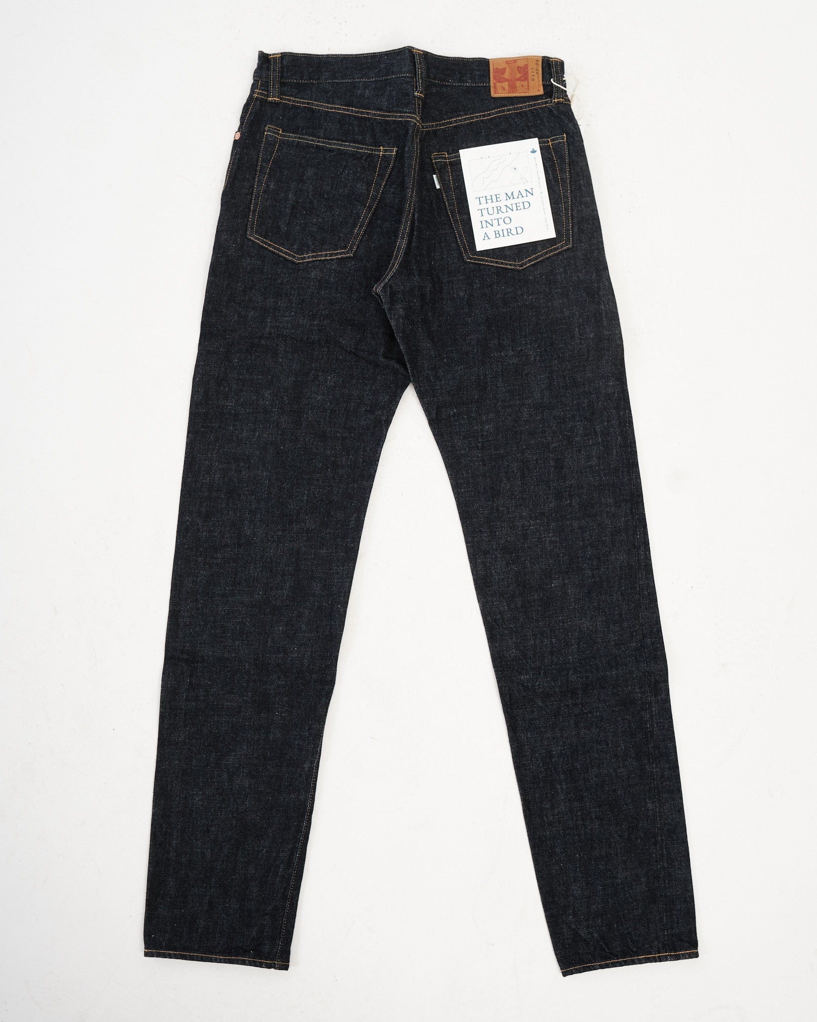 Teint en utilisant 100% pur indigo avec un Technique traditionnelle de dyeing de corde, ces jeans se développent frappants s'estompent au fil du temps, améliorant leur personnalité unique. Tissé sur un Mesure de navette Sakamoto des années 1950 avec un technique de basse tension, le tissu possède une sensation texturée et tissée à la main qui vieillit magnifiquement.
