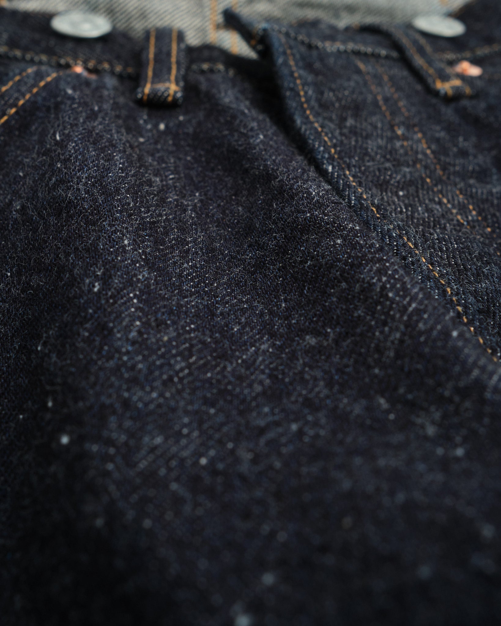 • Denim Selvedge 13,5oz : Teinté avec de l'indigo pur et tissé avec une tension faible