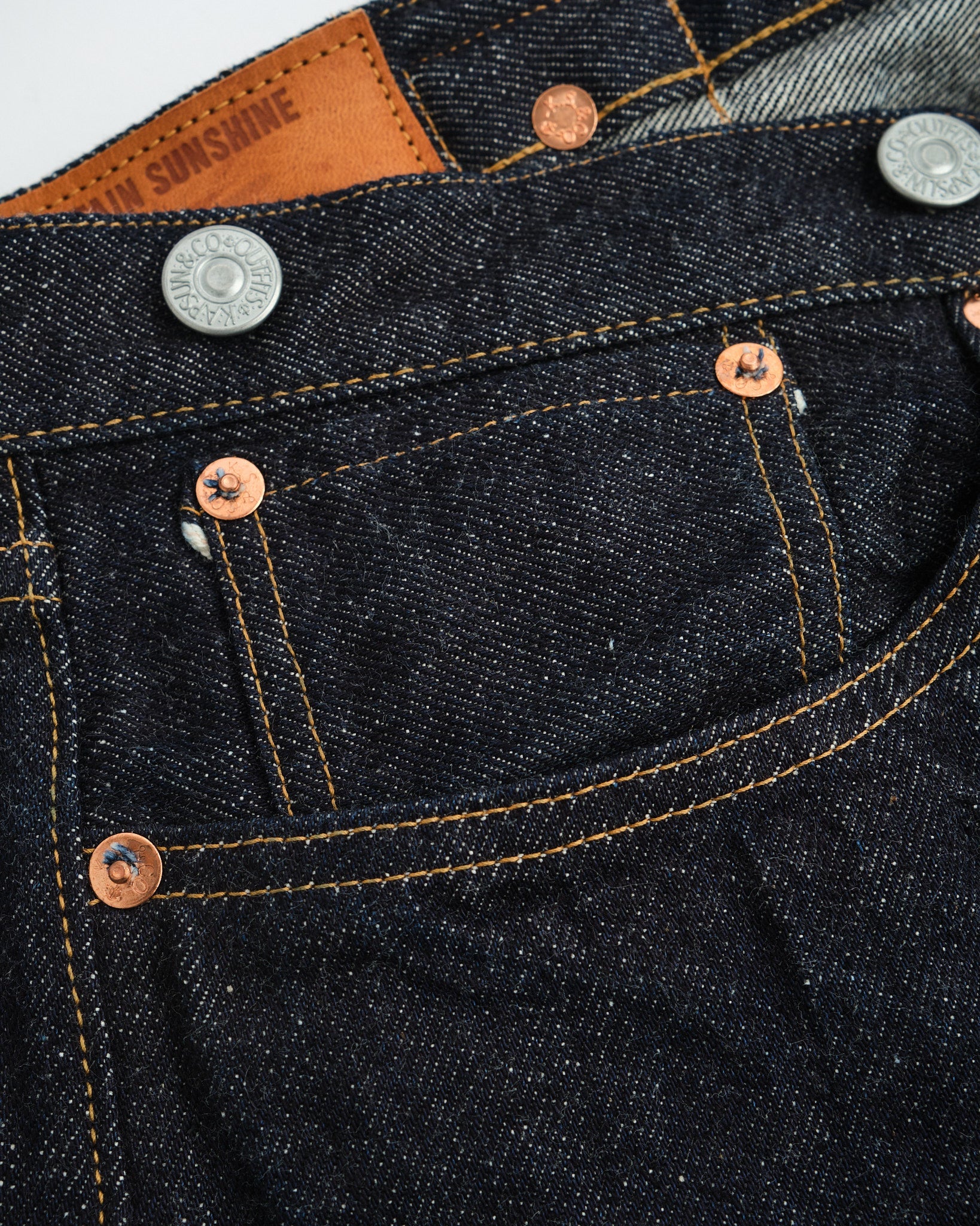 Le Kaptain Sunshine 1930 pantalon en jean droit (KSBS201DZ) dans Indigo un lavage sont un hommage à artisanat de denim vintage. Ces pantalons sont fabriqués à partir de 13,5 onces de lim, teint avec pur indigo, et incorporer NEP naturel en utilisant Coton de San Joaquin de haute qualité, provenant d'une zone de production de coton de riz établie de longue date.