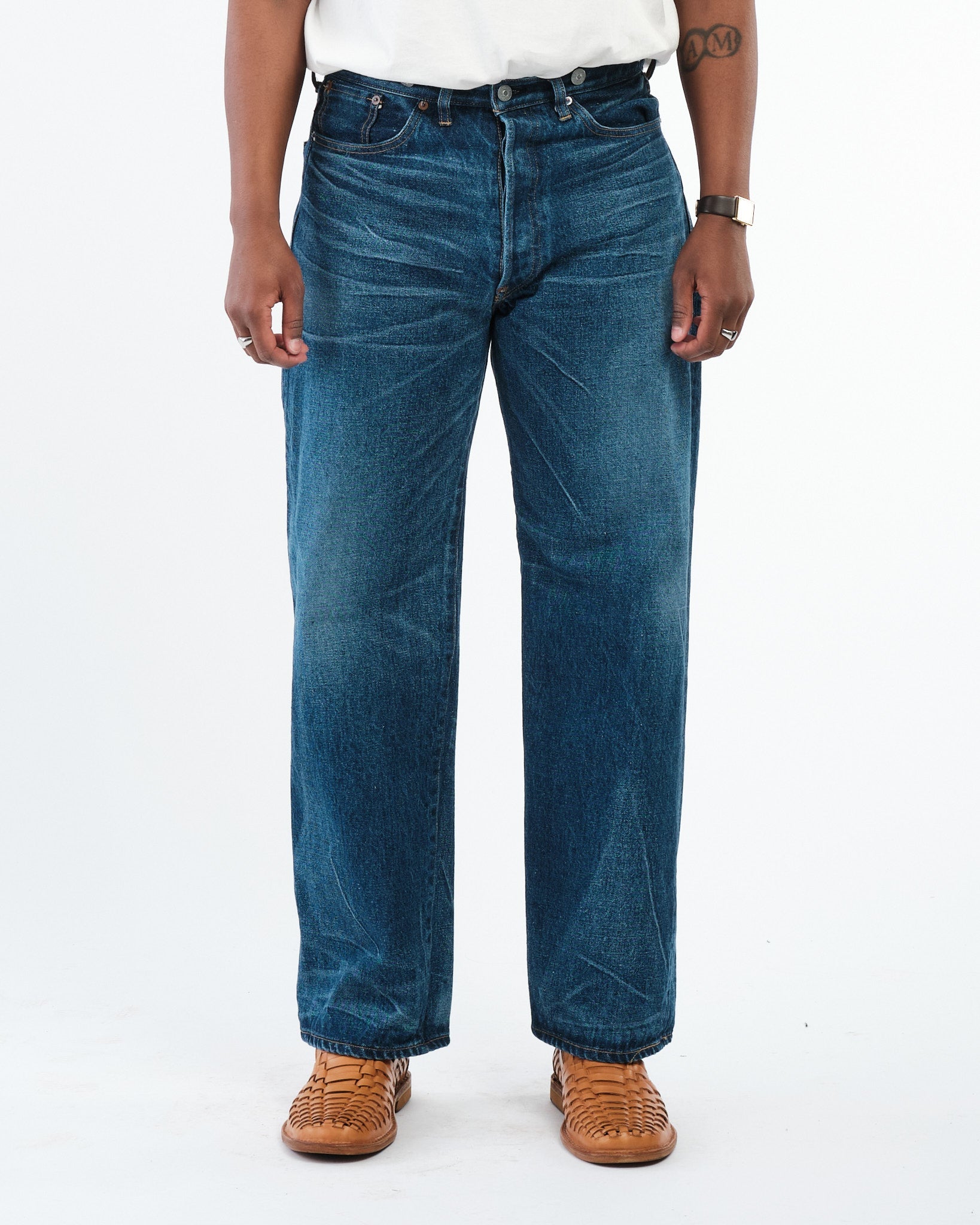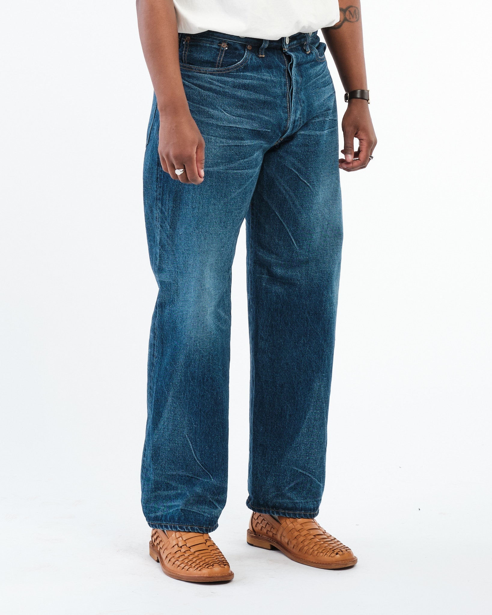 Tissé avec basse tension Sur une ancienne machine de tissage, le denim dispose d'un processus lent et délibéré qui ajoute un sentiment profond de l'inégalité, créant une texture distinctive. Plus vous portez et lavez ces jeans, le profondément la teinte et le caractère Devenez, évoluant vers une paire vraiment unique au fil du temps.