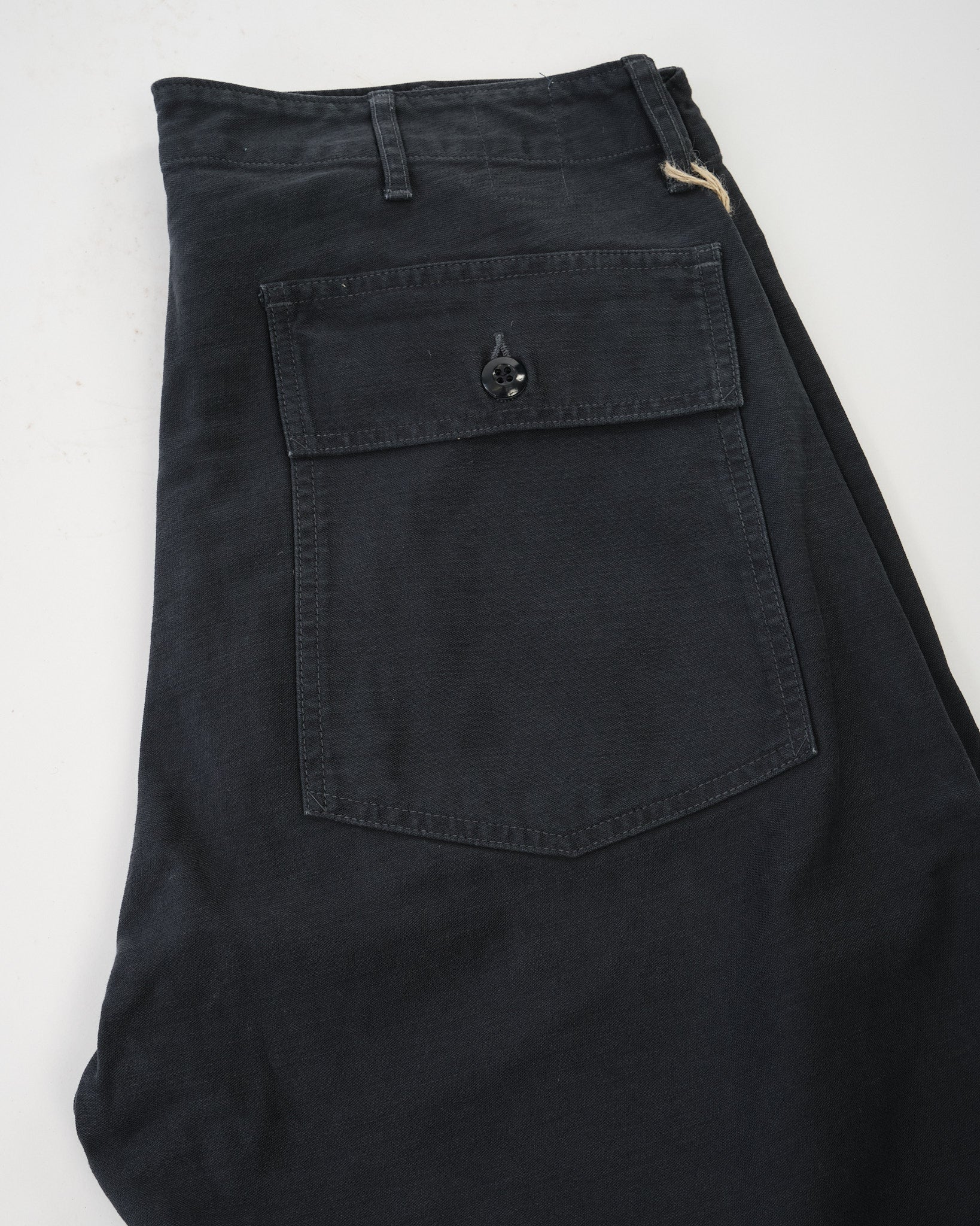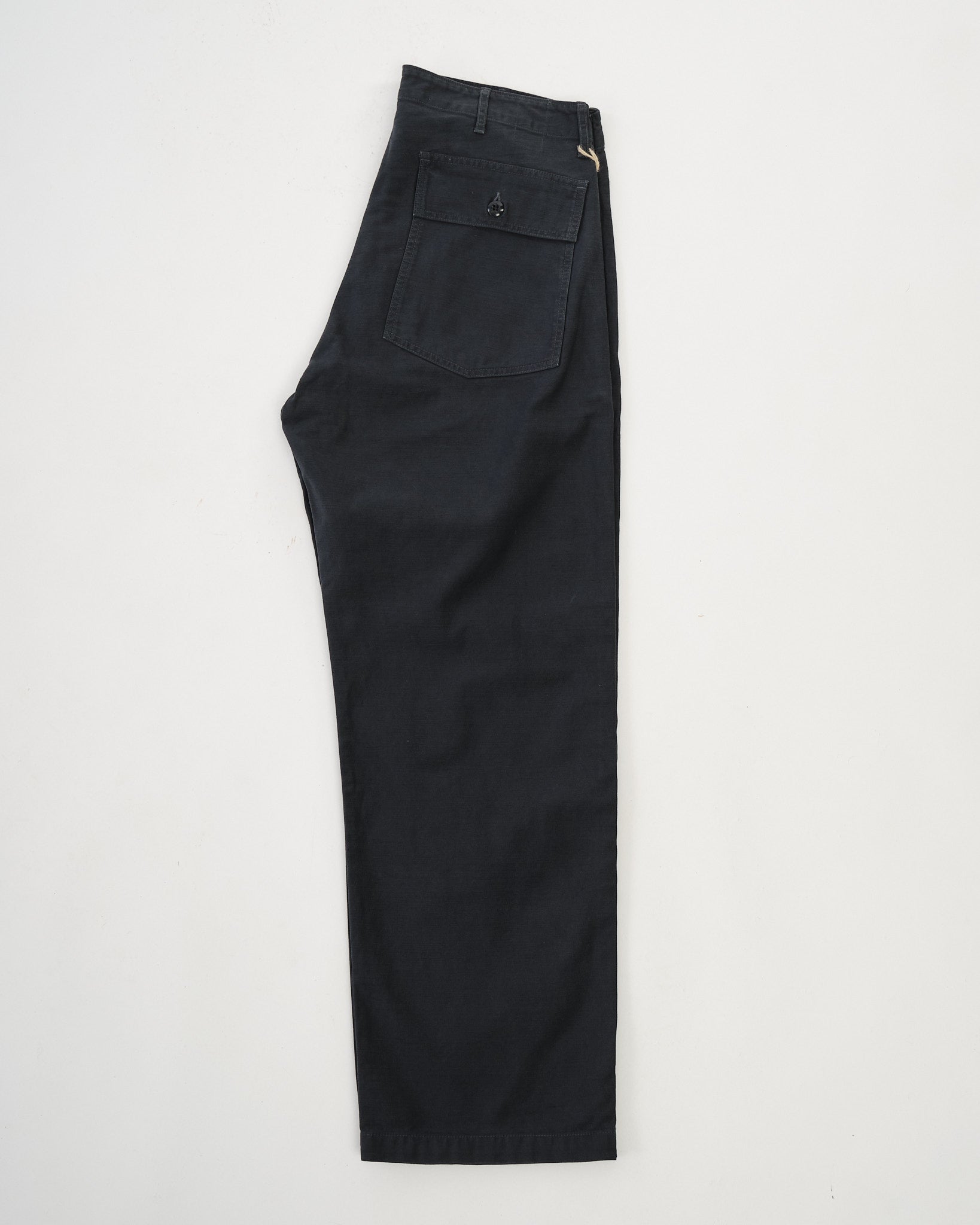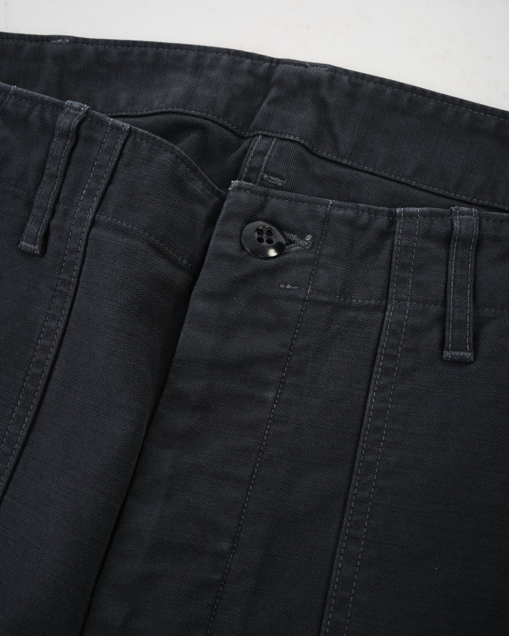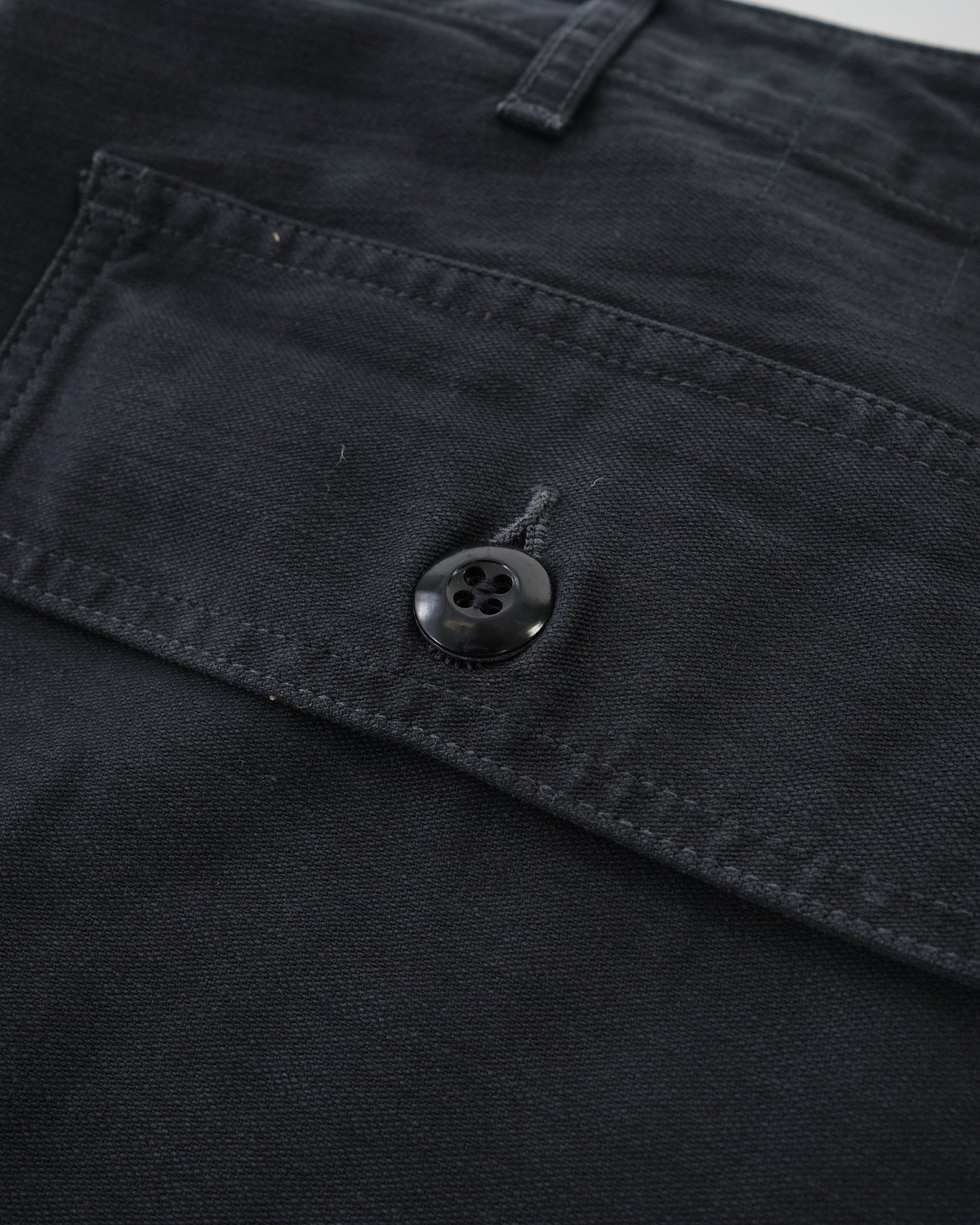 Le Coup de compte complet 1992-24A pantalon d'utilité en noir (1992-24a) sont une interprétation moderne du classique Pantalon boulanger, connu pour leur patrimoine militaire et leur conception fonctionnelle. Après des années de recherche et de raffinement, ces pantalons ont été perfectionnés pour capturer le douceur et durabilité authentiques de vêtements de travail vintage. Fabriqué à partir de 100% coton militaire arrière-satine, le tissu a été méticuleusement analysé jusqu'aux fibres pour reproduire le sensation souple du pantalon boulanger d'origine. Le tissu noir teint de soufre assure un processus de vieillissement progressif, Développer une patine unique au fil du temps. En plus, traitement de l'ozone améliore le tissu confort et texture usées dès la première tenue.