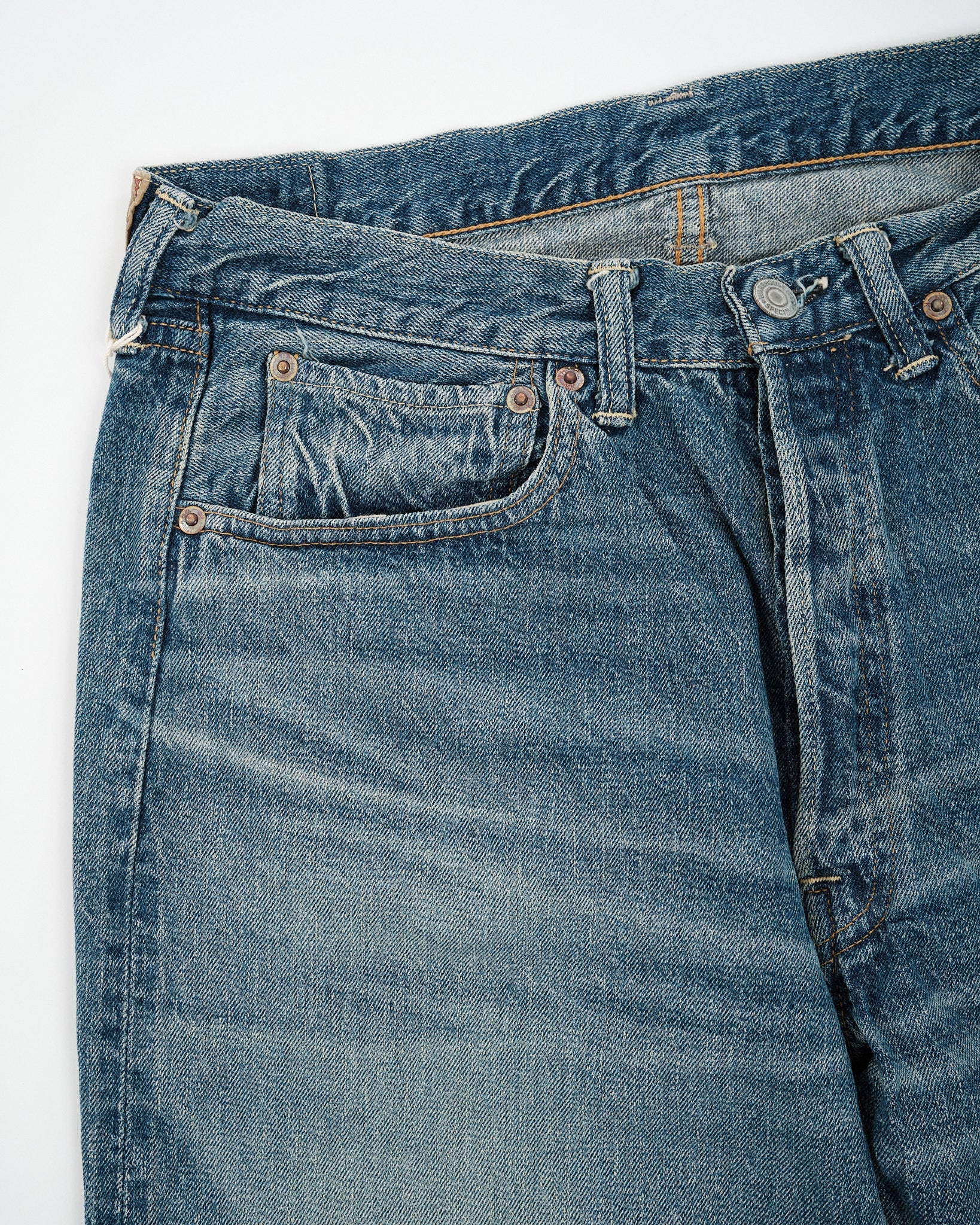 Les jeans de la 2e main 1101 (couleur de lavage usagés) offrent l'aspect et la sensation authentiques du denim vintage, méticuleusement traité pour reproduire des années d'usure naturelle. Construites à partir de n ° 7 x n ° 10 (12 oz) denim Selvedge, ces jeans offrent une usure confortable mais durable adaptée à une utilisation quotidienne. La finition de couleur de lumière lavante utilisée émule une apparence indigo légère et âgée naturelle, avec des motifs de moustache et de décoloration réalistes qui rendent chaque paire unique.