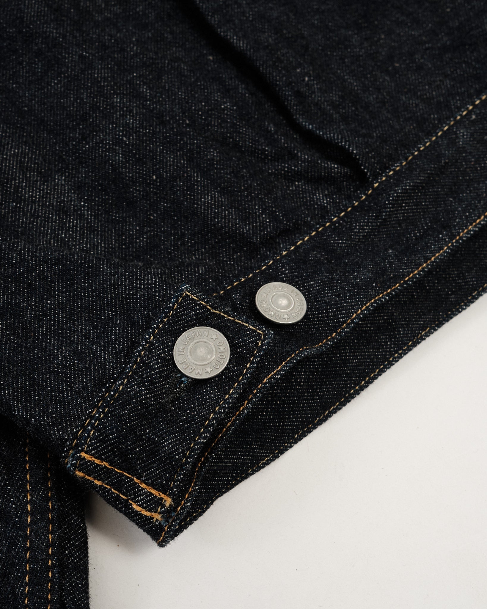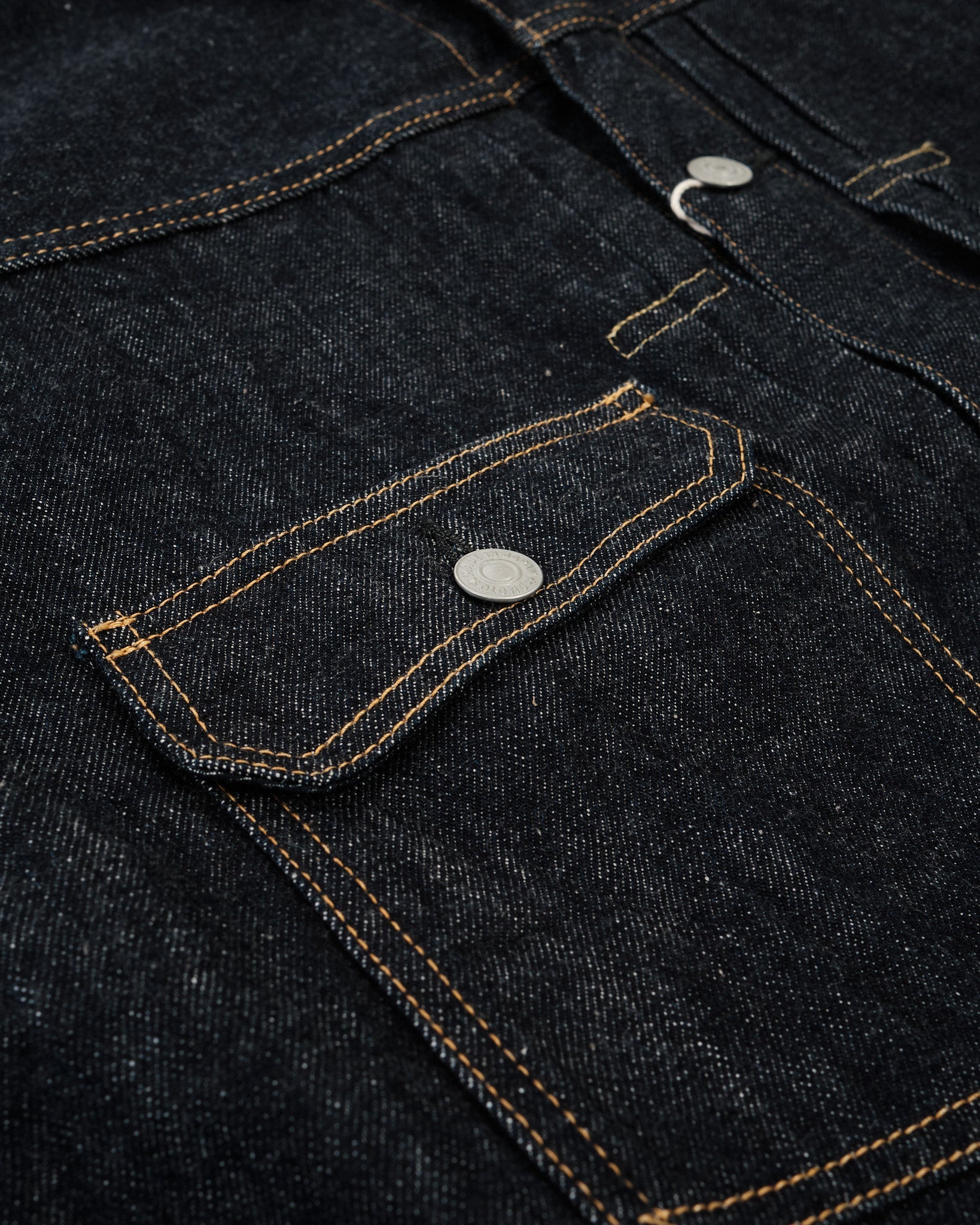 Numéro de style : 3212 Denim nep de 16oz avec une surface texturée et robuste Les fils de chaîne utilisent des fibres de coton courtes pour un aspect irrégulier inspiré du vintage Les fils de trame sont filés en utilisant la technique "gara-bo" pour une sensation rustique, comme tissé à la main Teinté à la corde avec 100% d'indigo pur pour des délavages profonds à fort contraste au fil du temps Tissé sur un métier automatique Toyoda GL8 des années 1950 pour un tissu respirant et texturé Non-sanforisé mais rincé pour conserver la texture brute tout en assurant le confort Le liseré selvedge bleu-vert "MIMI" d'OMOTO pour un détail authentique en denim Patch en cuir de mouton de marque personnalisée pour une touche de luxe Coutures renforcées & boutons métalliques originaux pour une durabilité et un style intemporel