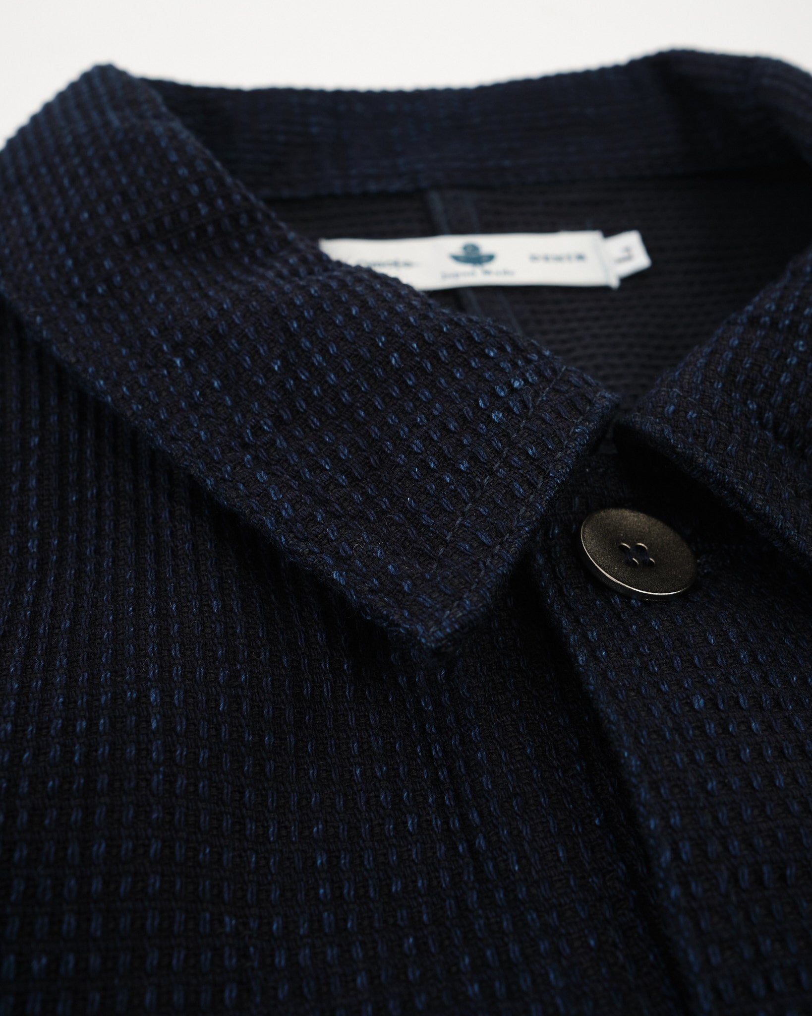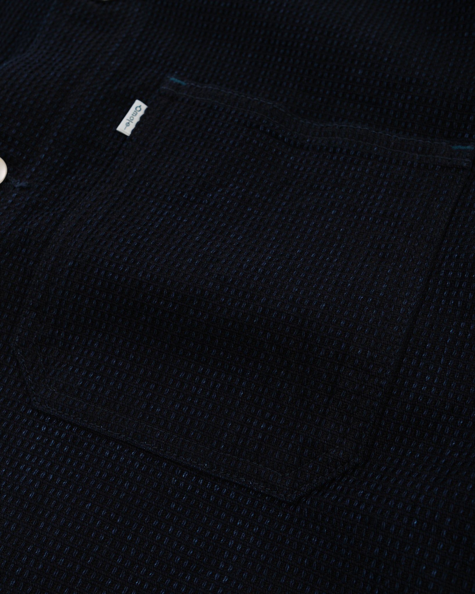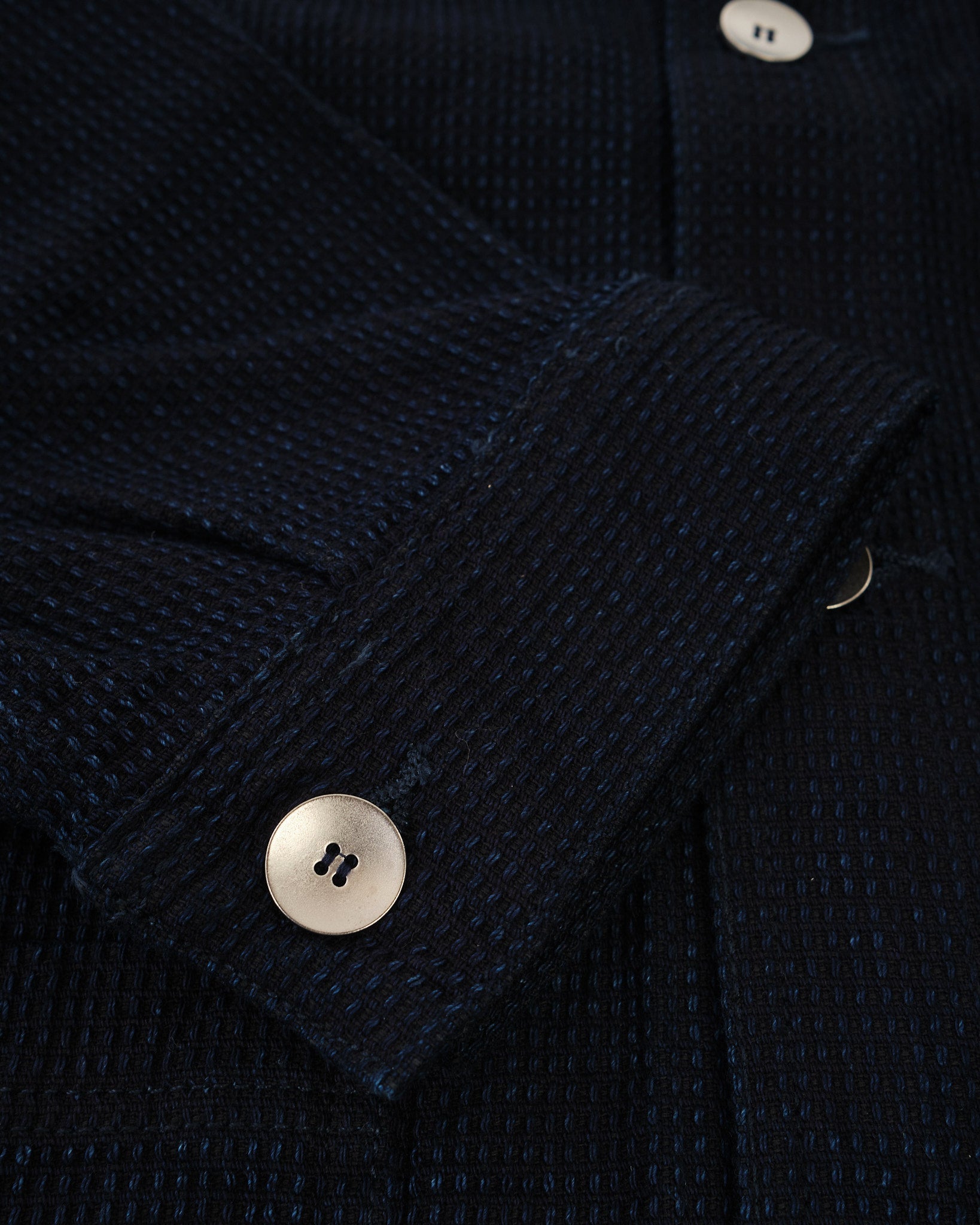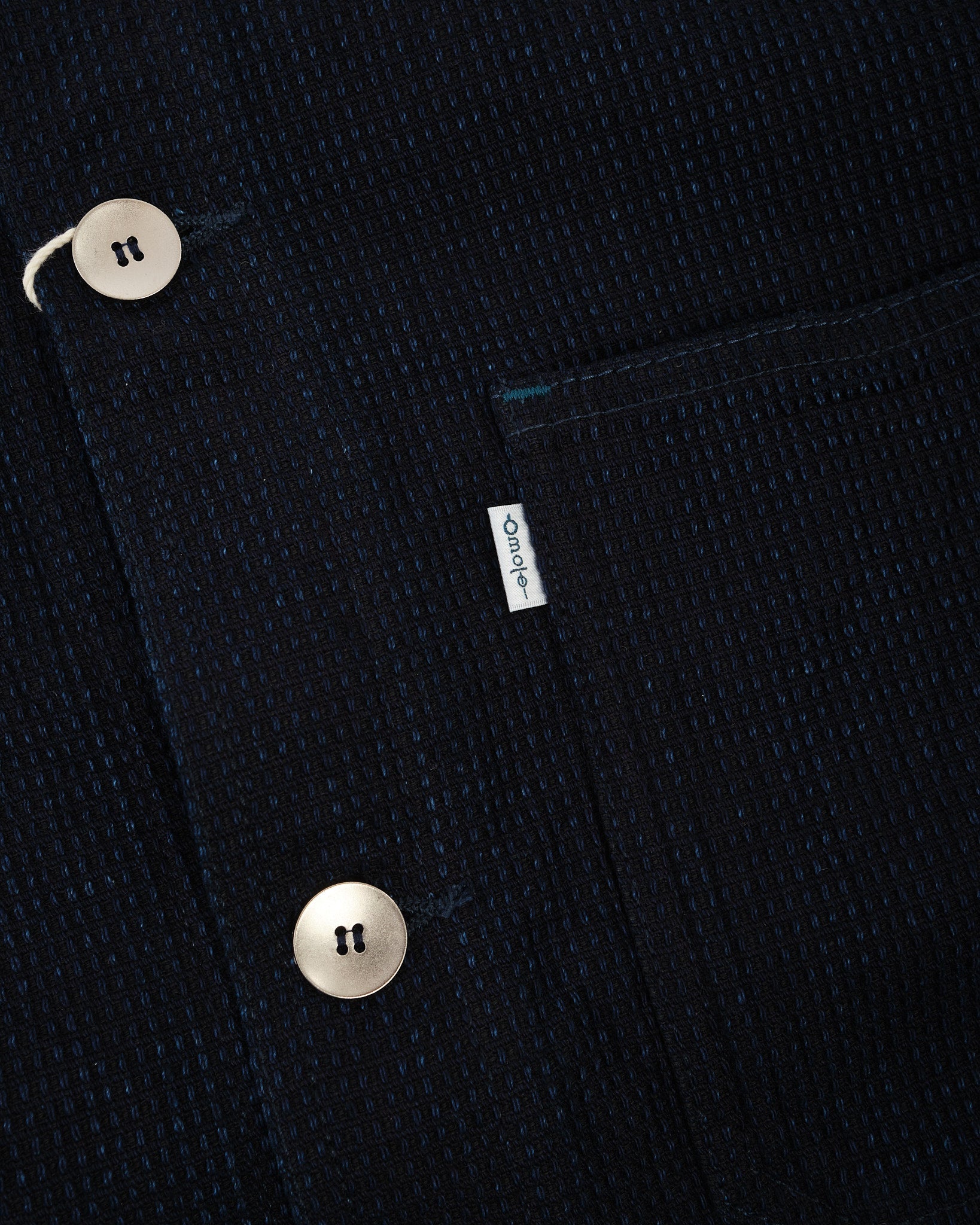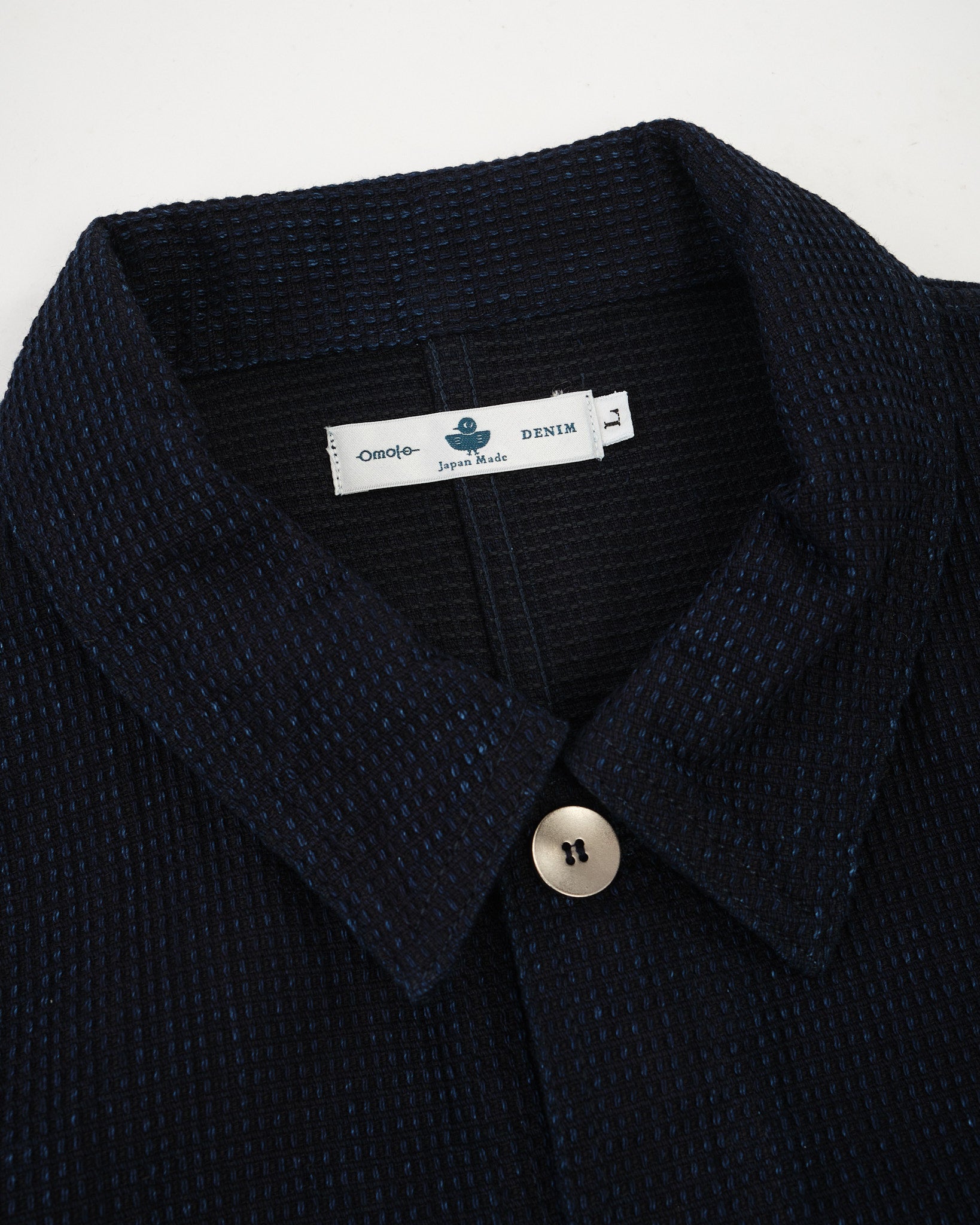 Style number: 3720 12oz Cube Sashiko Denim with a rich, textured feel Inspired by traditional sashiko stitching for durability & heritage craftsmanship Woven with denim yarns to reinterpret a historic textile for modern wear Indigo-dyed for deep, high-contrast fades over time OMOTO’s blue-green “MIMI” selvedge for an authentic denim detail Custom-branded sheep leather patch for a premium touch Reinforced stitching & original metal buttons for long-lasting durability Functional chest pockets & sashiko texture detailing for timeless style