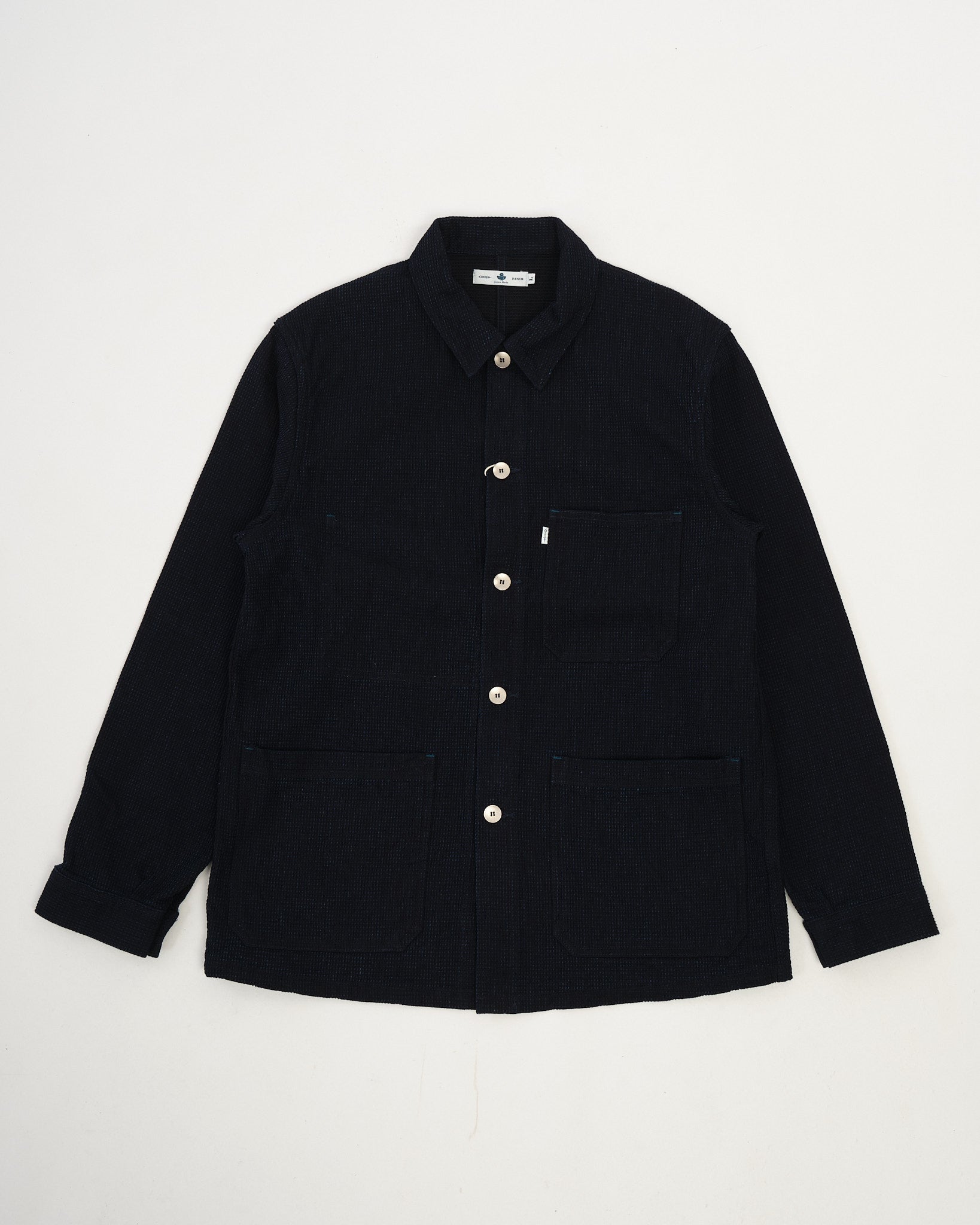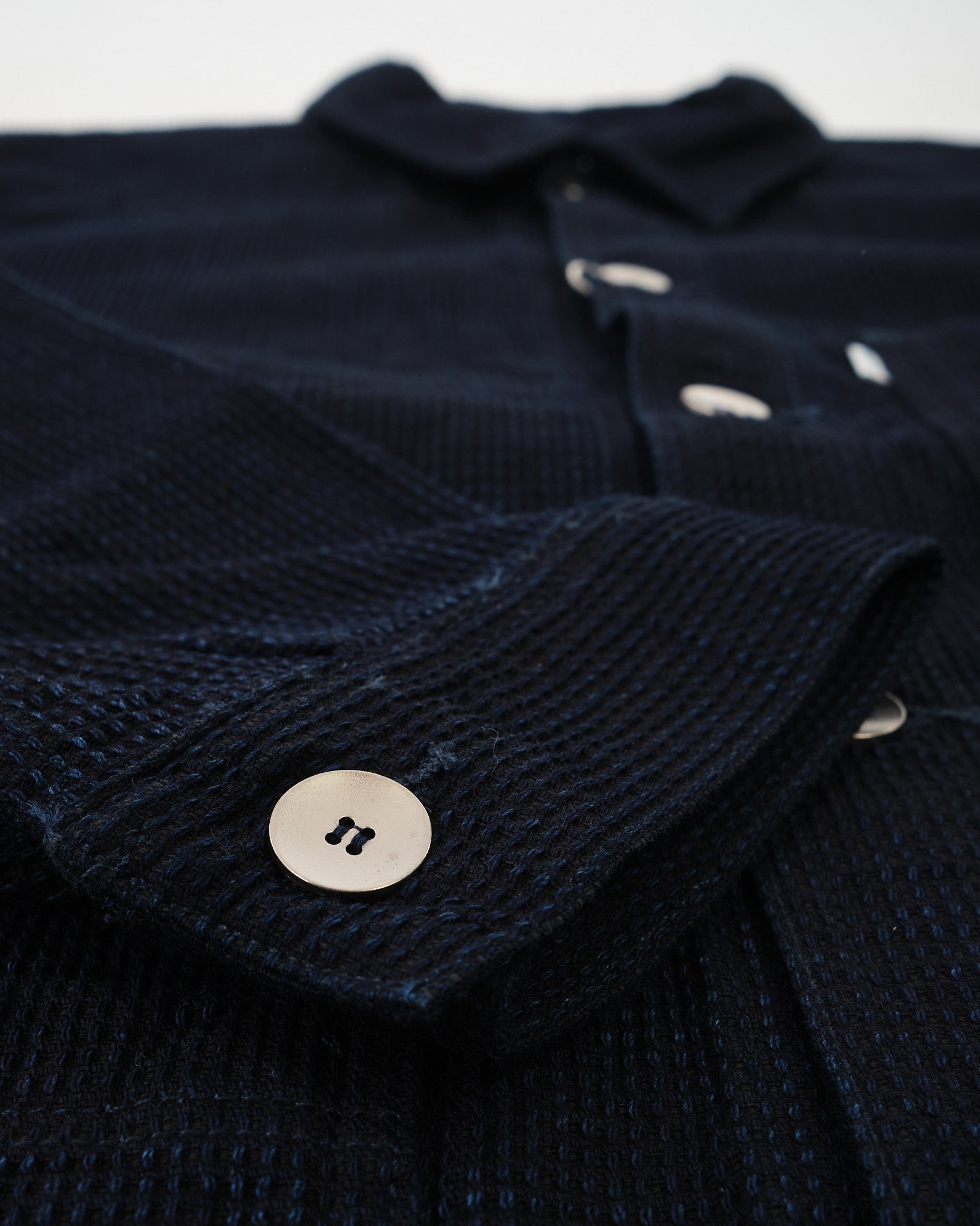 Woven for durability yet offering breathability and softness, the fabric is designed to evolve with wear, developing a unique character over time. The deep indigo-dyed finish ensures stunning, high-contrast fades, while the classic chore jacket silhouette provides a structured yet comfortable fit.