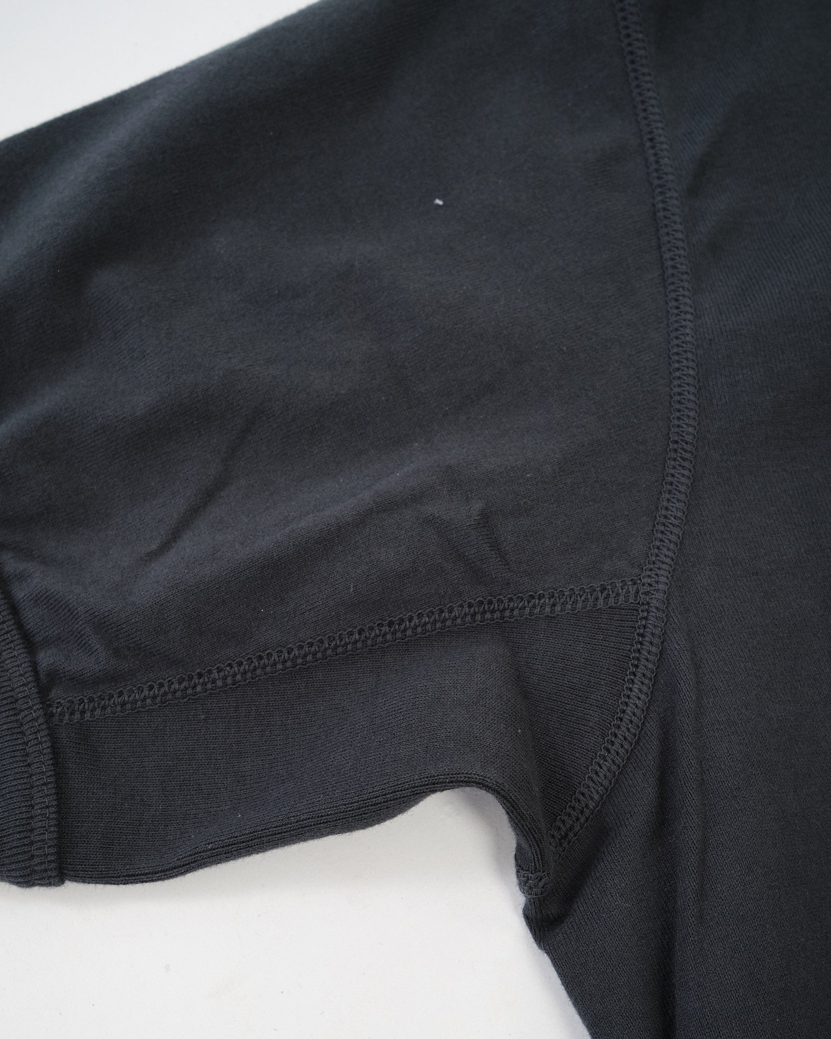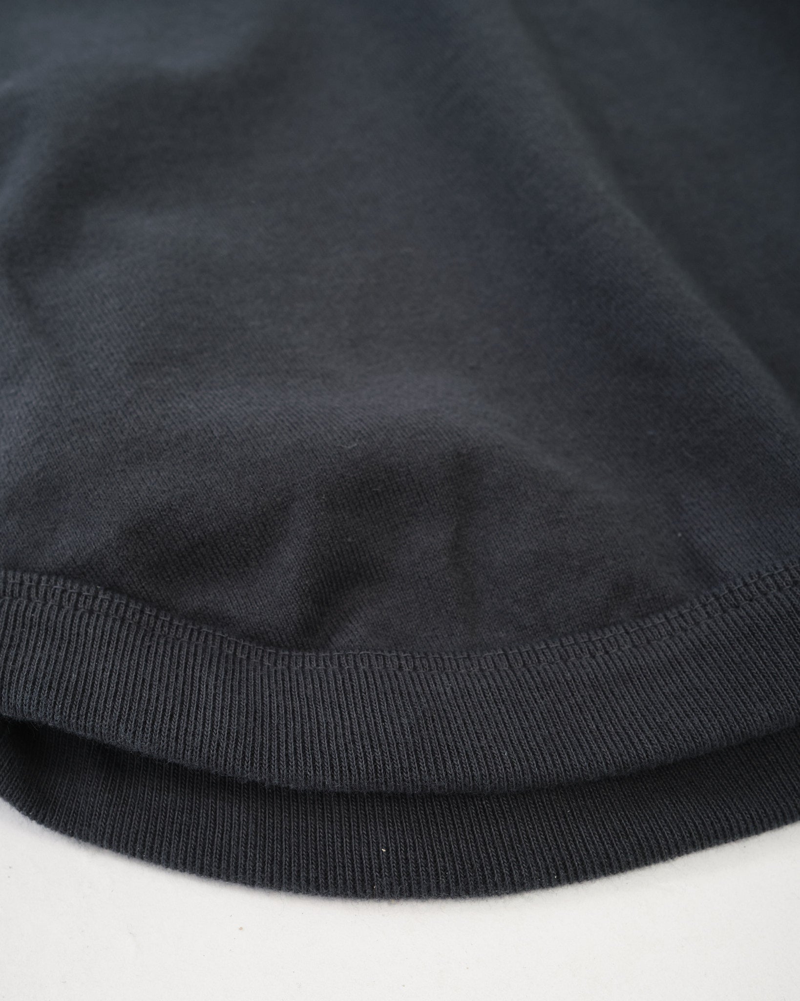 The Fullcount Flat Seam Heavyweight T-shirt in black brings together rugged durability and everyday comfort. Crafted from 100% cotton with a 30/2 tight tension jersey stitch, it offers a dense, heavyweight feel while staying surprisingly soft, thanks to an air-spun yarn technique. Each size is circular knitted to create a tubular body with no side seams, giving a natural drape and fit. Reinforced rib and binder construction at the collar, cuffs, and hem prevents twisting over time, while the four-needle flat seam sleeves ensure smooth comfort against the skin. Designed to age with character, this tee becomes your go-to for years of wear.