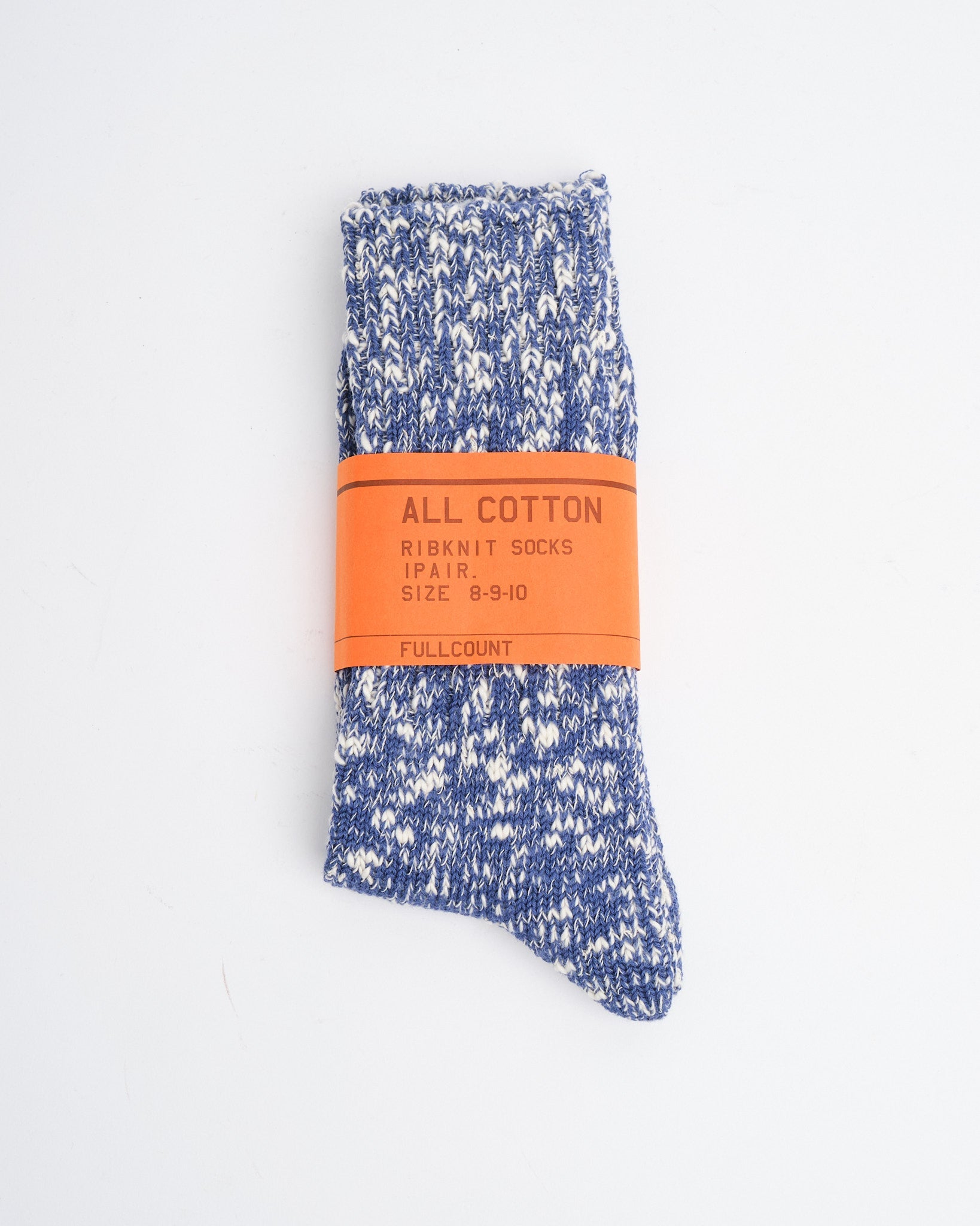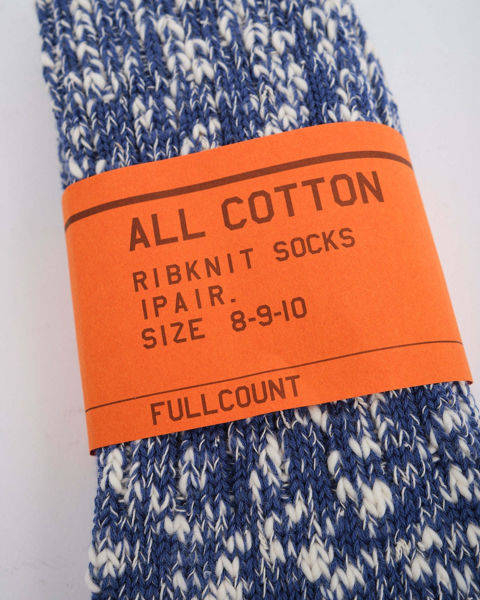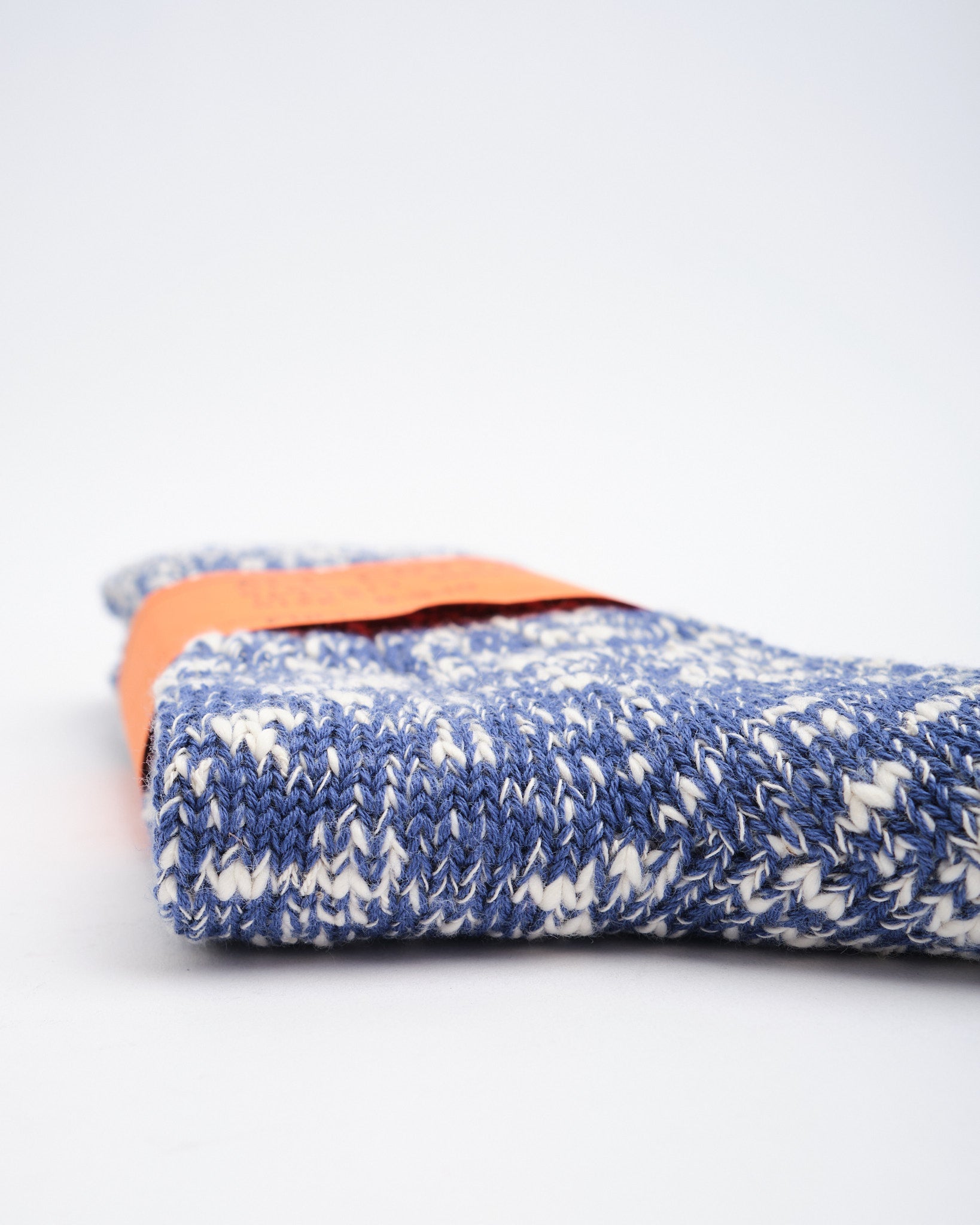 The Full Count 6110-2 Mix Socks in blue highlight the brand’s passion for heritage production. Made from 100% cotton, these socks are knitted on vintage double cylinder machines from the 1960s — operated by experienced craftsmen rather than modern computer controls.