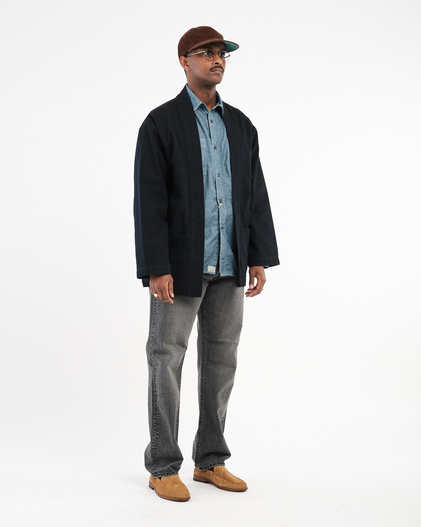 Fini avec La lisière «Mimi» de la signature d'Omoto «Mimi», un Patch en cuir de mouton de marque sur mesure, et Construction traditionnelle de style happy, Ce vêtement pose le passé et le présent, célébrant l'héritage textile japonais sous une forme contemporaine.