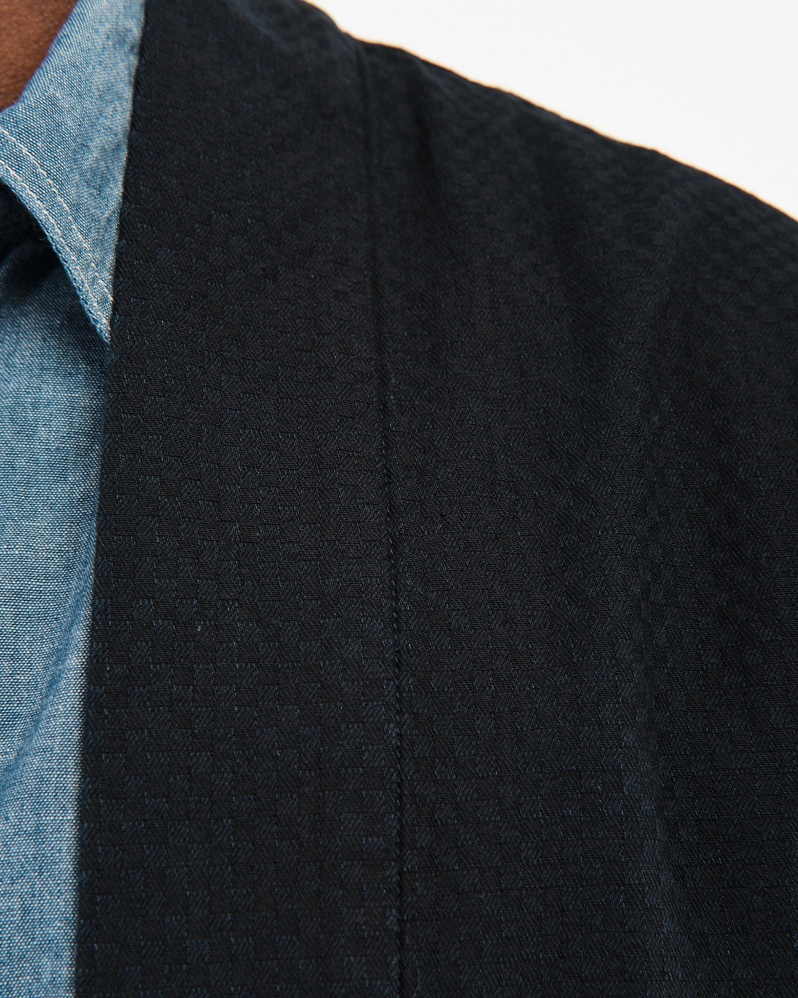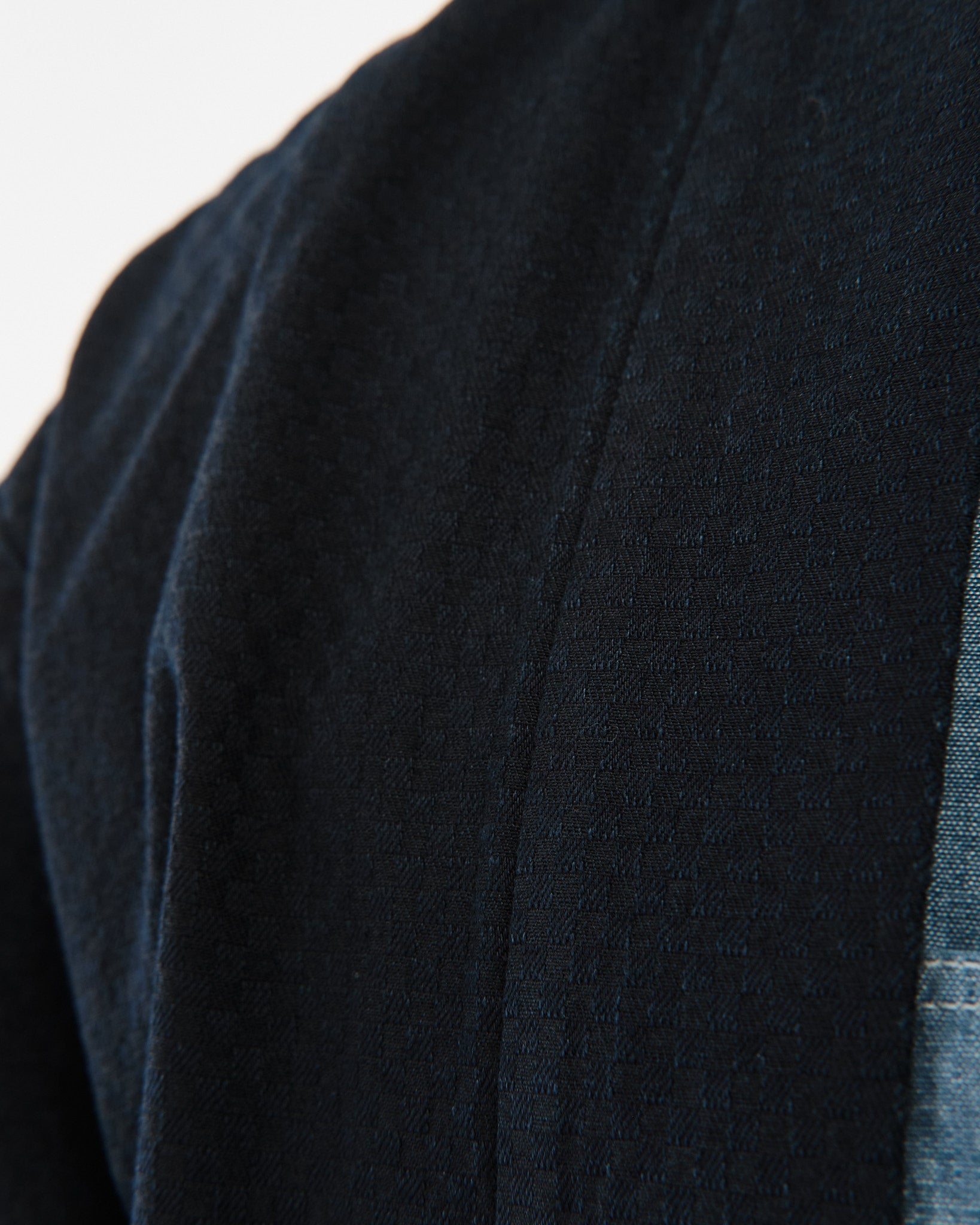 Numéro de style : 8819 Denim Ichimatsu de 8oz avec une sensation légère mais durable Présente le motif traditionnel Ichimatsu de la période Edo Inspiré par l'acteur de Kabuki Sanogawa Ichimatsu, réinterprété en denim Teint en indigo pour des délavages riches et profonds qui évoluent avec l'usure Tissé avec des fils de denim pour préserver la tradition tout en assurant la durabilité Tissu léger et respirant pour un confort quotidien La lisière bleu-vert « MIMI » d'OMOTO pour une touche authentique de denim Patch en cuir de mouton personnalisé pour un détail haut de gamme Construction de style happi traditionnelle mélangeant héritage et modernité