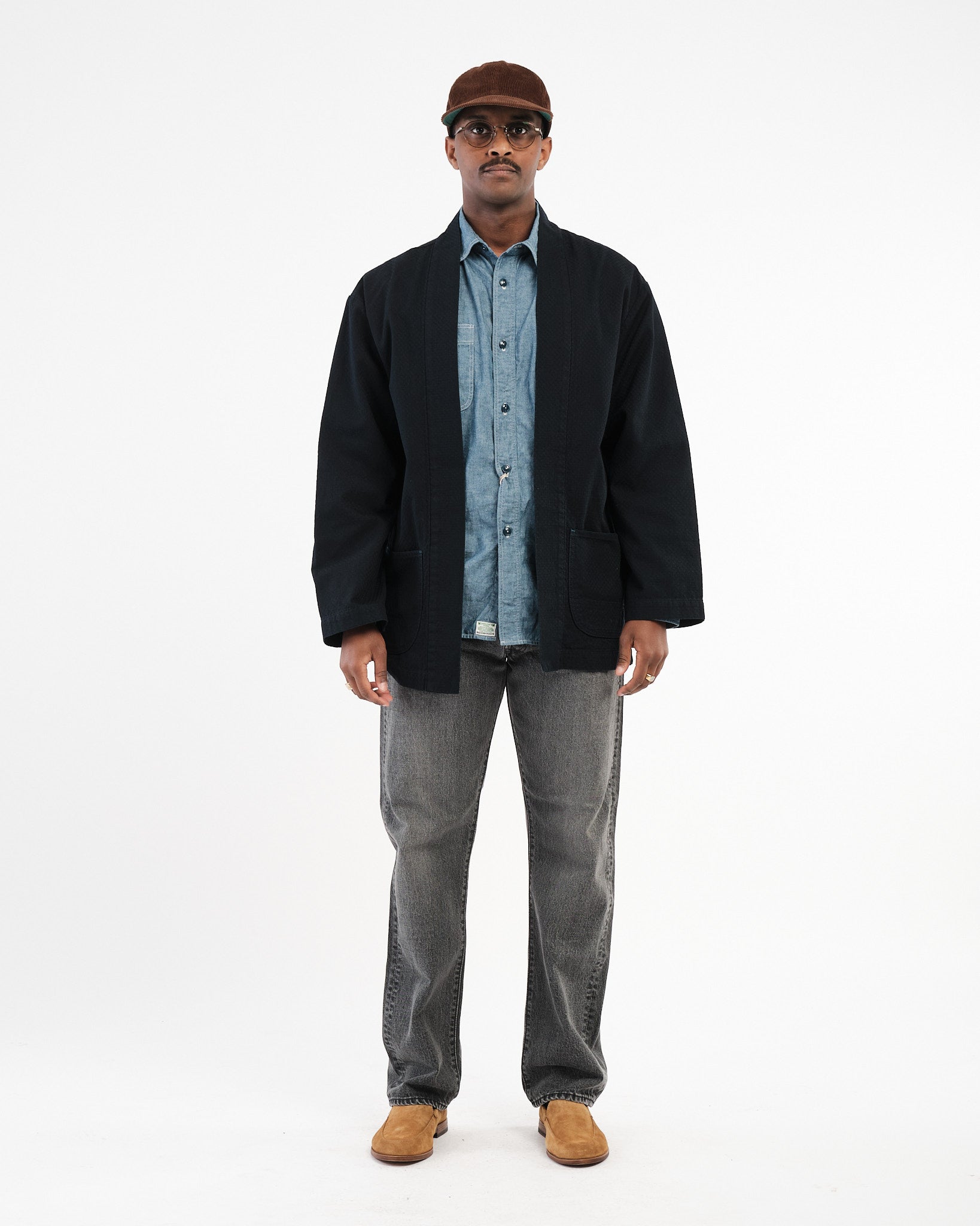 Le Omoto 8819 ichimatsu denim happi Mélange la tradition historique à l'artisanat moderne. À partir de 8oz ichimatsu denim, cette pièce présente le Modèle iconique ichimatsu, un design qui remonte au Période Edo et a été popularisé par Acteur de Kabuki Sanogawa Ichimatsu. Utilisé à l'origine dans Kimonos, ce motif géométrique est désormais tissé dans les fils en jean, garantissant à la fois la durabilité et un processus de décoloration unique au fil du temps.