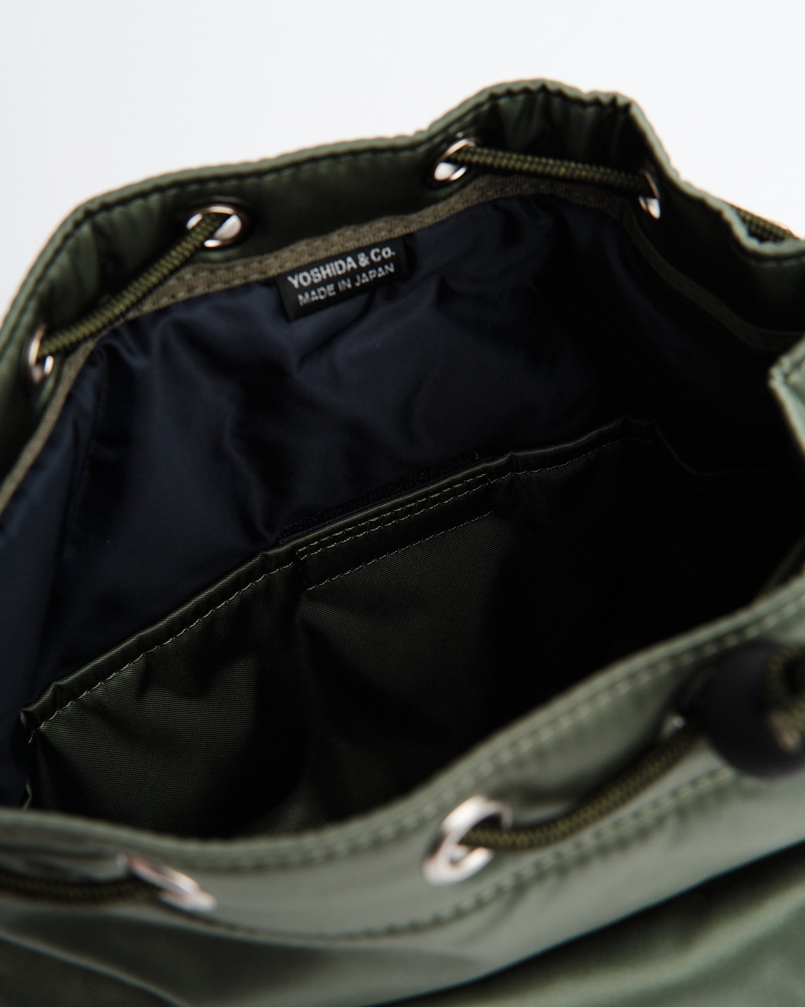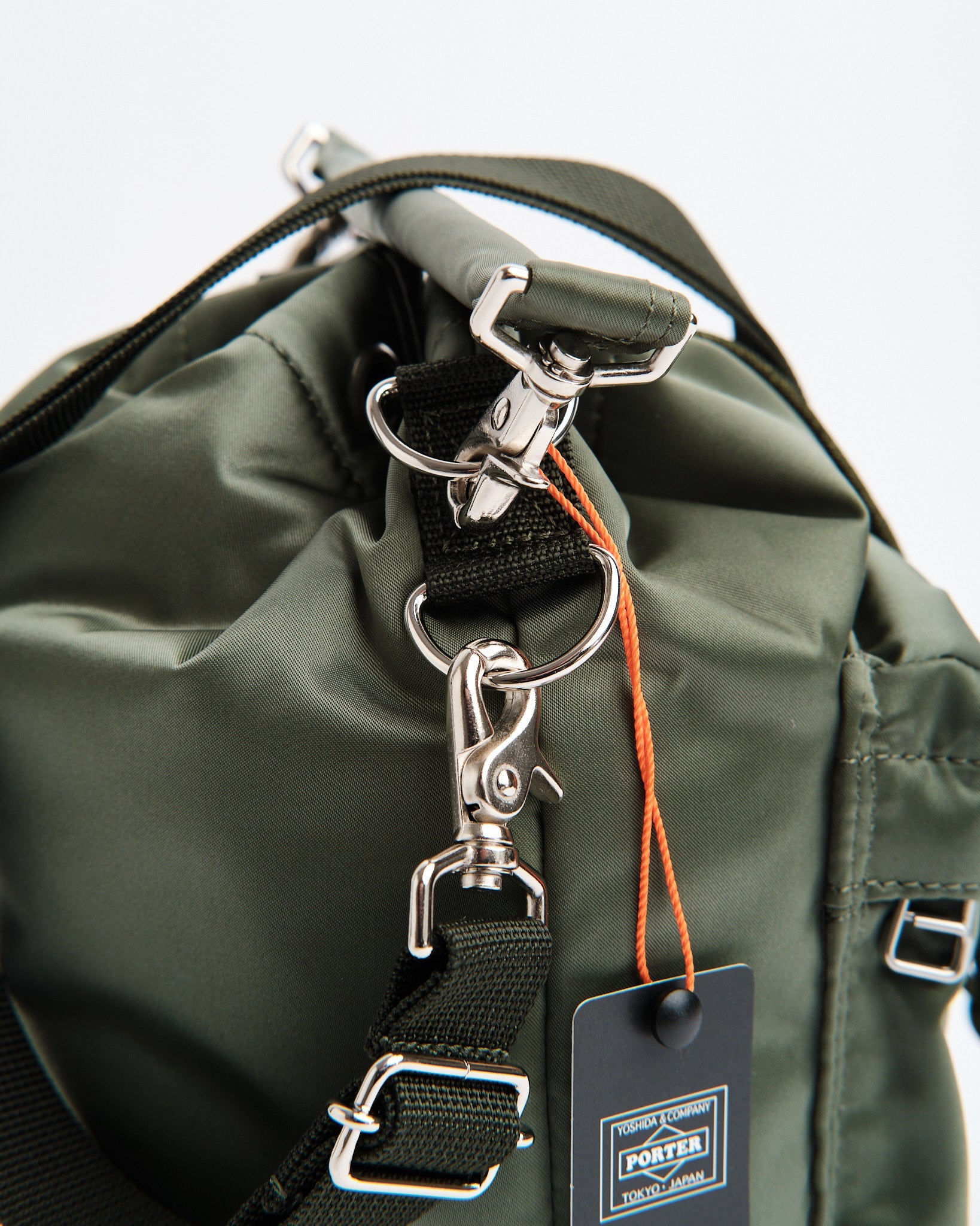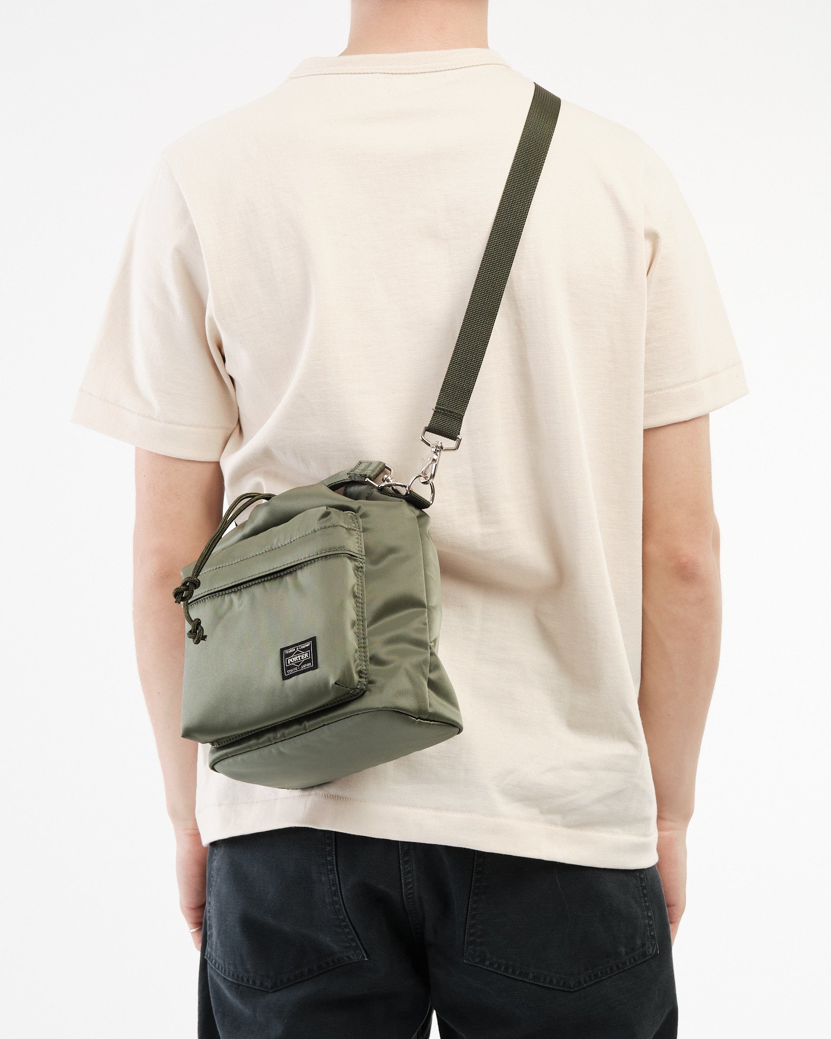 Découvrez le Porter Yoshida 381-16879-30 Bag (s) dans Sage Green. Ce sac s'inspire des sachets utilisés pour stocker de petits articles arborant une forme arrondie unique. Fabriqué à partir de tissu en nylon avec un processus de liaison en coton, il possède une brillance et une texture veloutée moelleuse. La fermeture du cordon supérieur permet d'accéder au compartiment principal tandis que le bouchon de cordon réglable vous permet de régler le formulaire de sacs. Il est livré avec des poignées et un bandoulière pour des options de transport variées. Les cordons comportent deux designs, l'un en noir et orange et l'autre correspondant à la couleur des sacs, ce qui donne une flexibilité. L'intérieur est bordé de tissu marine. Dimensionné à w; 190 mm, H; 255 mm, D; 105 mm (w; 7,5 pouces h; 10 pouces, d; 4,1 pouces). Pesant 400 g (14,1 oz), ce sac compact est idéal pour les éléments essentiels, comme votre portefeuille et votre smartphone.