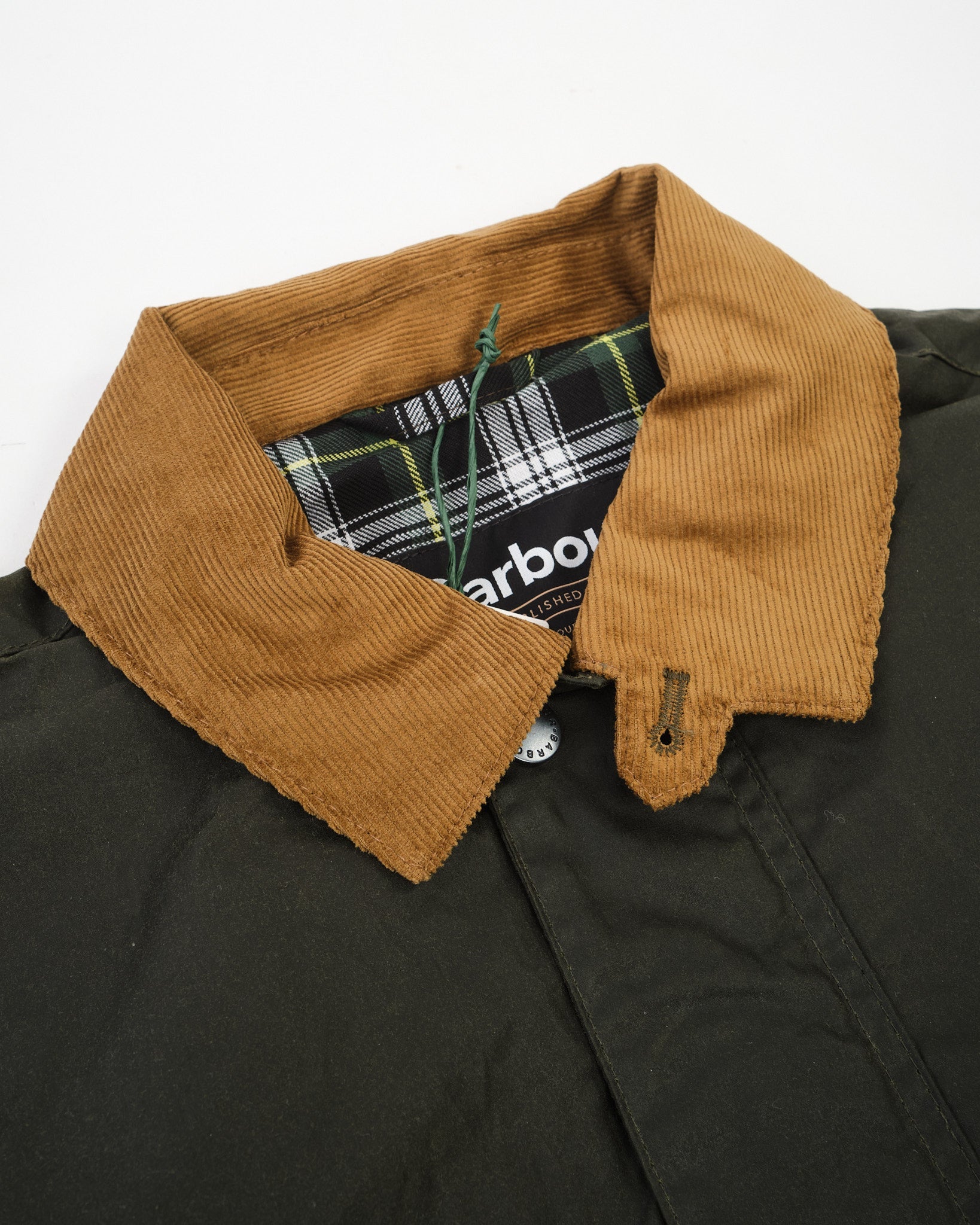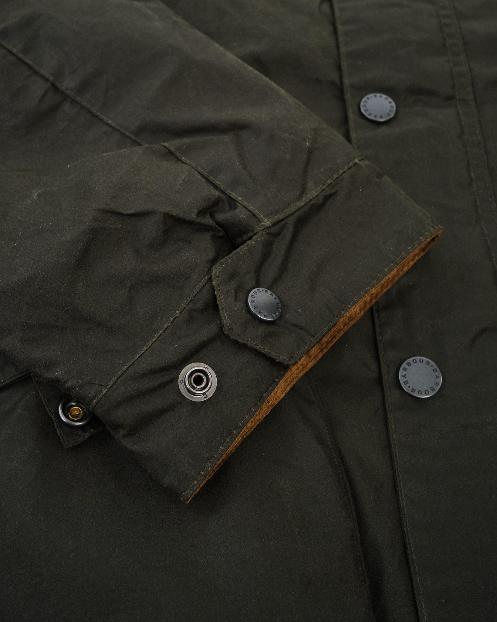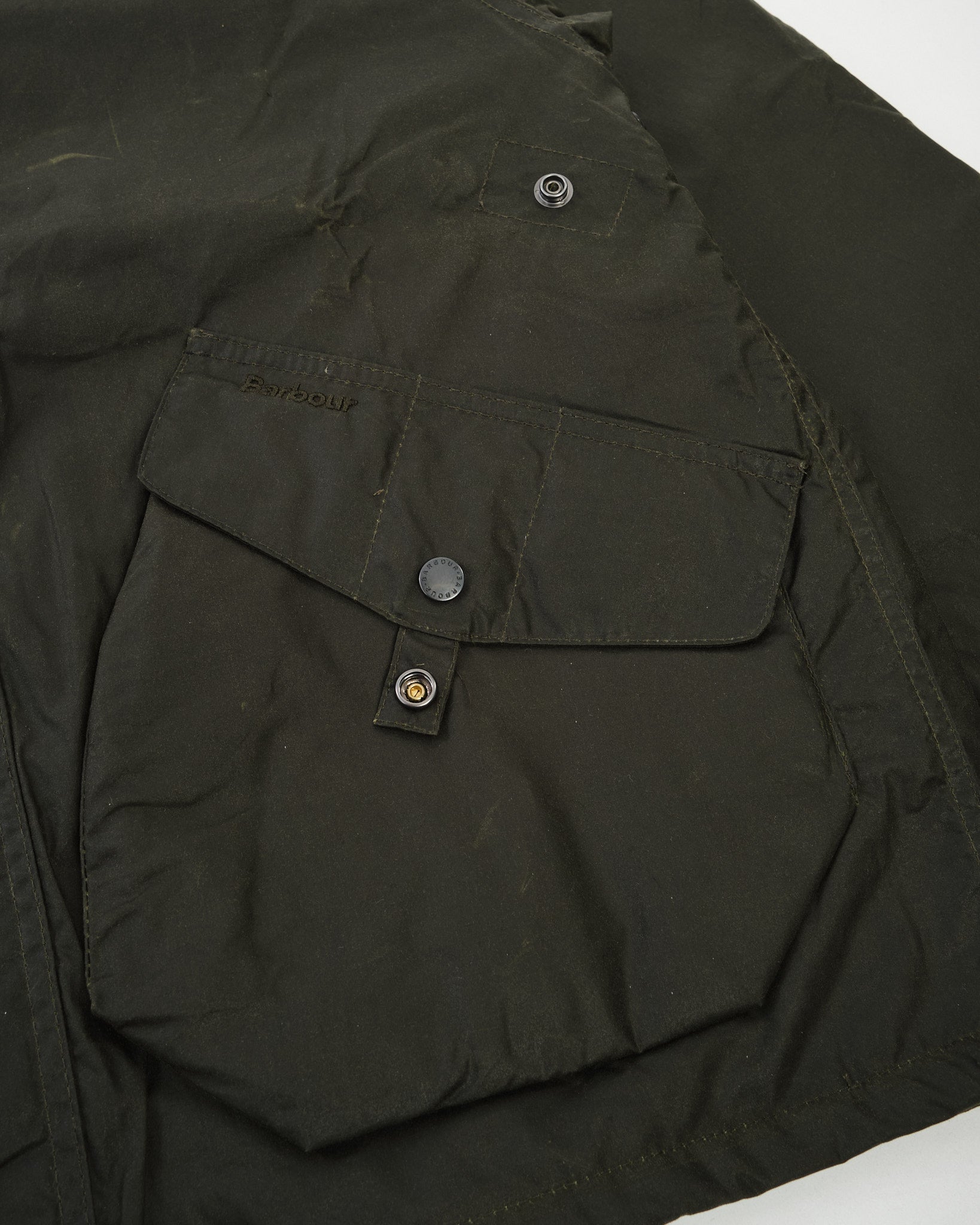 La veste en cire d'endurance modifiée Barbour en Olive est une réinterprétation contemporaine d'un design classique de Barbour, mêlant l'artisanat traditionnel à la fonctionnalité moderne. Confectionnée en coton ciré Sylkoil 6oz signature de Barbour, cette veste offre une robuste résistance aux intempéries et une finition mate distinctive. Le design présente une capuche fixe, un zip frontal double sens avec un rabat tempête à boutons-pression, et de multiples poches utilitaires pour la praticité. L'intérieur est doublé du tartan emblématique de Barbour, ajoutant une touche d'héritage à la pièce. Des poignets ajustables et un cordon de serrage à la taille permettent un ajustement personnalisable, faisant de cette veste un choix polyvalent pour diverses activités en plein air.