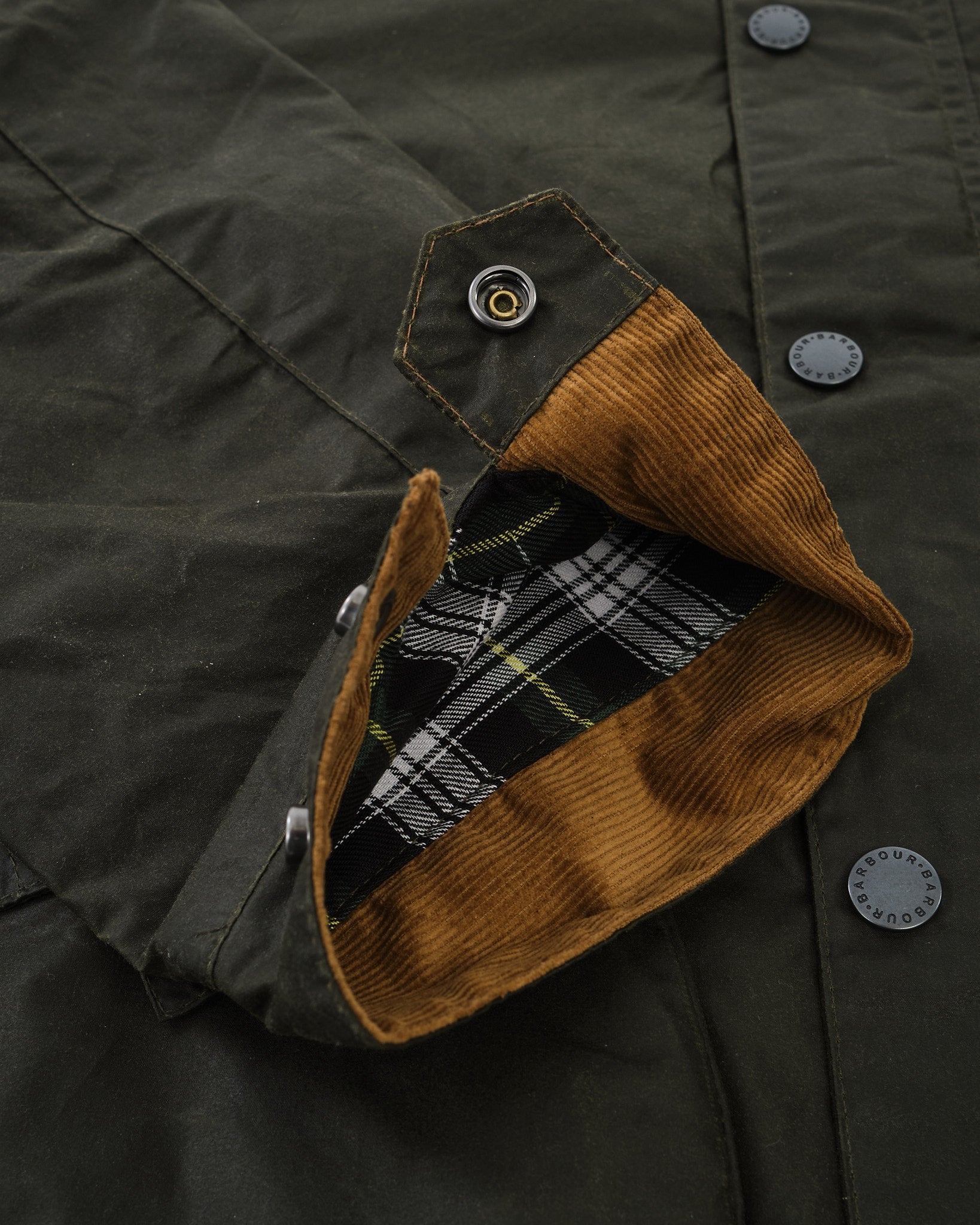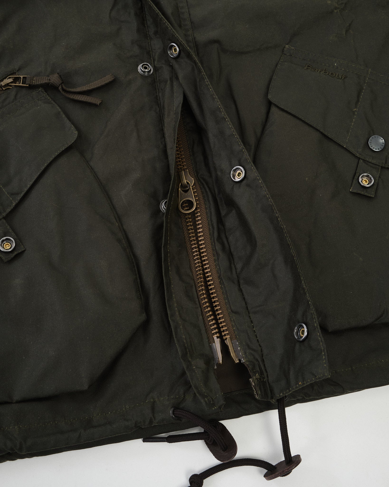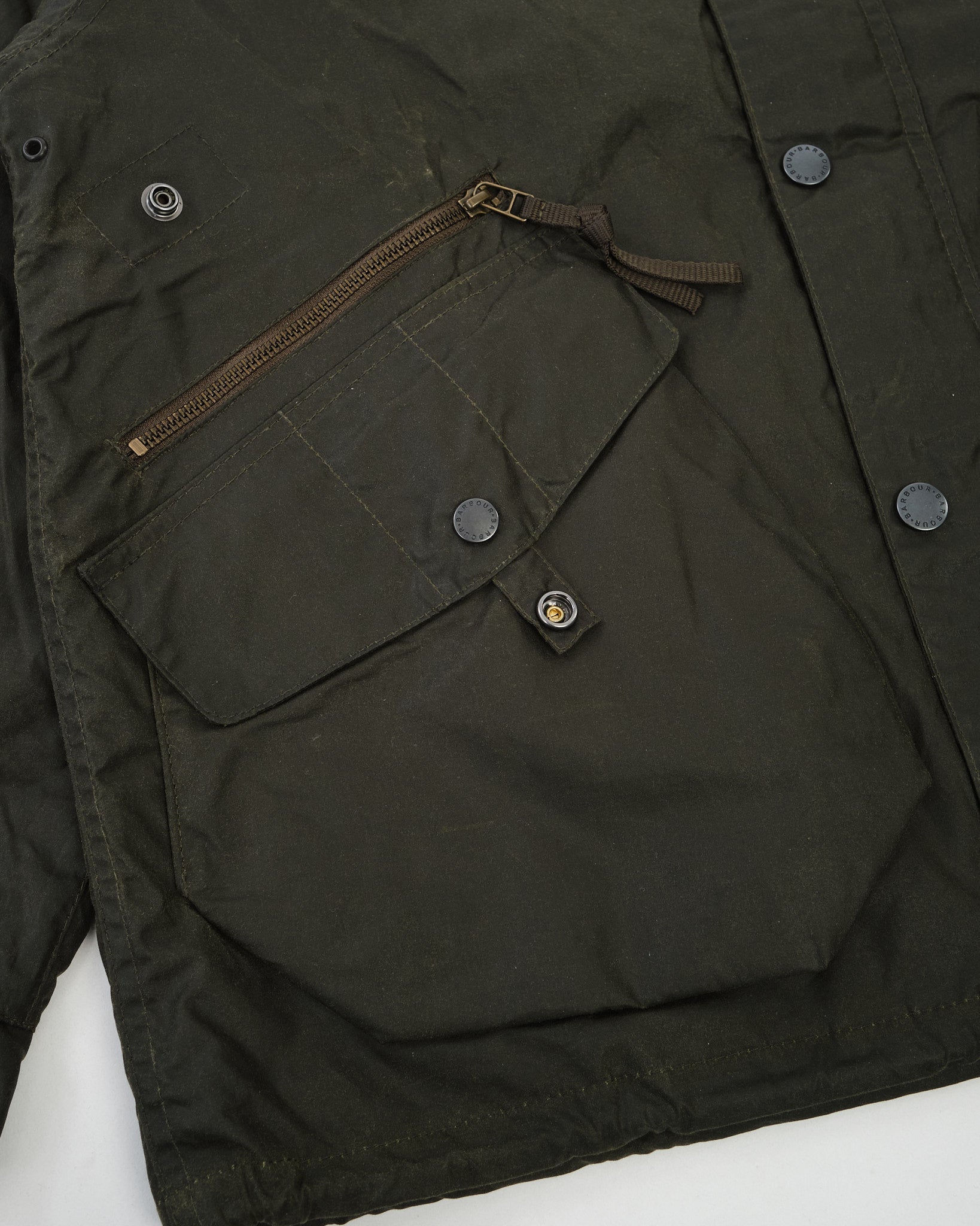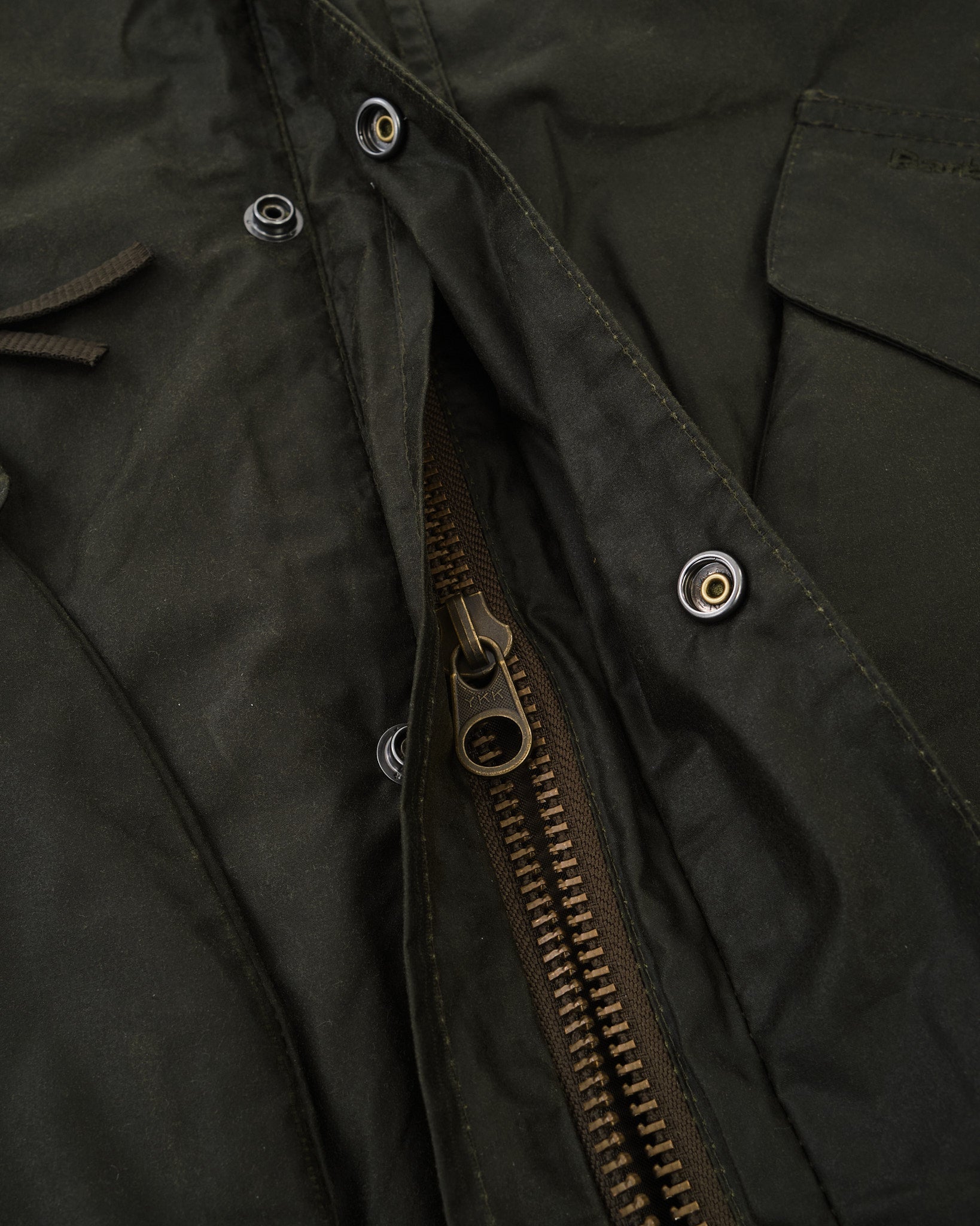 La veste en cire d'endurance modifiée Barbour en Olive est une réinterprétation contemporaine d'un design classique de Barbour, mêlant l'artisanat traditionnel à la fonctionnalité moderne. Confectionnée en coton ciré Sylkoil 6oz signature de Barbour, cette veste offre une robuste résistance aux intempéries et une finition mate distinctive. Le design présente une capuche fixe, un zip frontal double sens avec un rabat tempête à boutons-pression, et de multiples poches utilitaires pour la praticité. L'intérieur est doublé du tartan emblématique de Barbour, ajoutant une touche d'héritage à la pièce. Des poignets ajustables et un cordon de serrage à la taille permettent un ajustement personnalisable, faisant de cette veste un choix polyvalent pour diverses activités en plein air.