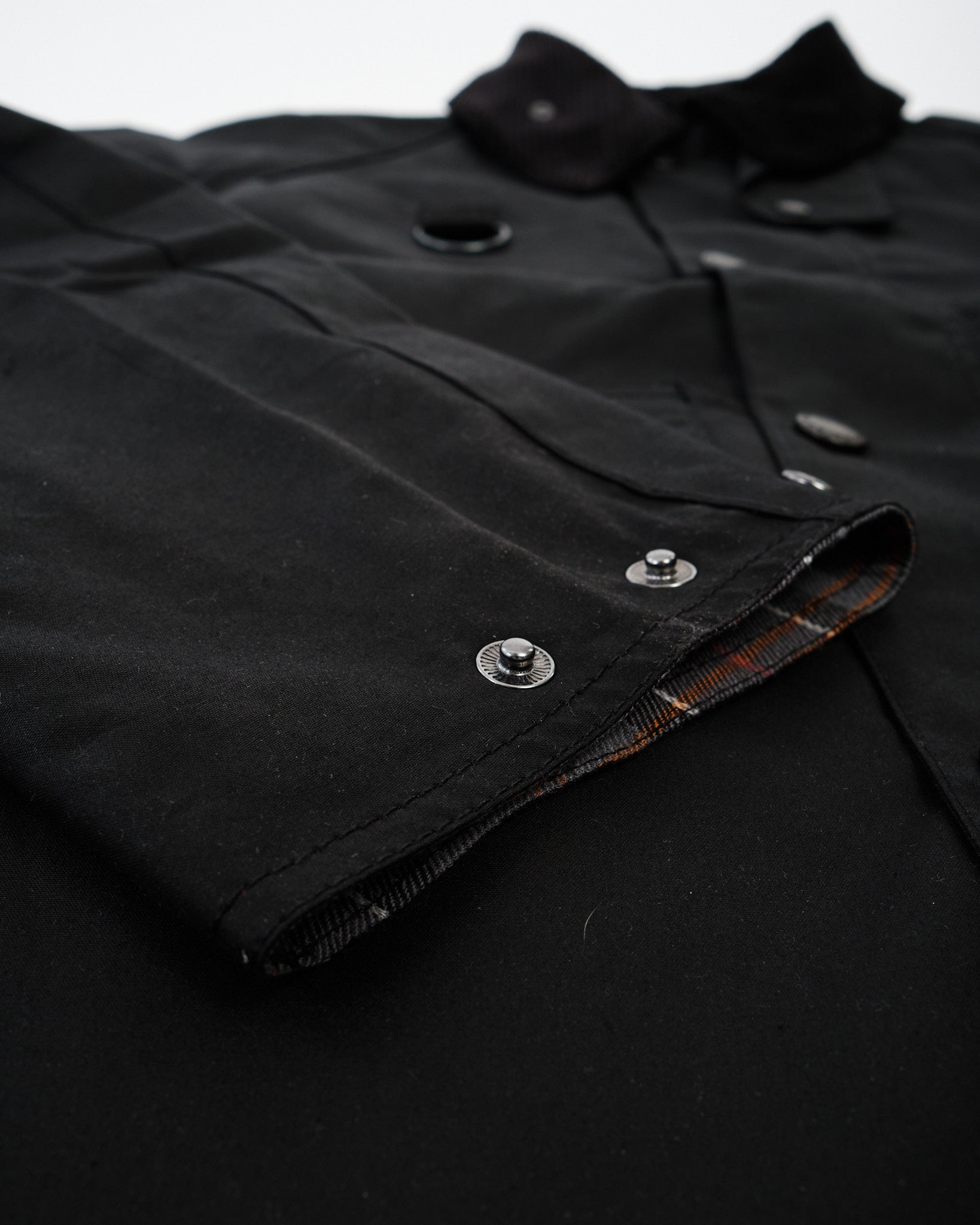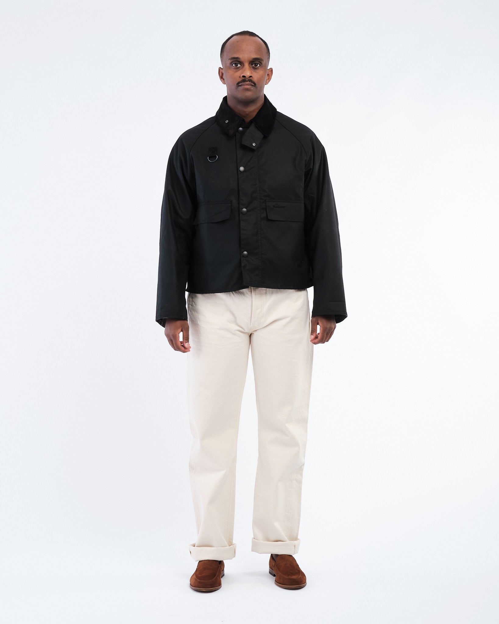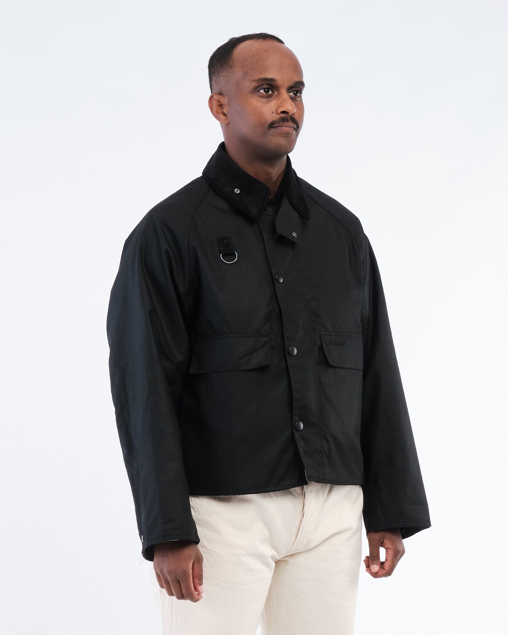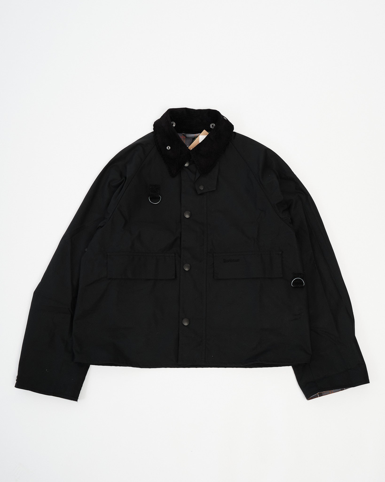 Rencontrez la Barbour Veste en cire Spey Modifiée en Noir—une mise à jour sophistiquée de la silhouette Spey d'archives, introduite pour la première fois en 1981. Fabriquée à partir de coton ciré Thornproof de 6 oz, elle offre une résistance durable à l'eau avec une structure raffinée. Les caractéristiques incluent un col en velours côtelé net, des revers de manche tartan distinctifs, et des détails de boucle D emblématiques au niveau de la poitrine. Des ajouts pratiques comme des poches inférieures passepoilées avec rabats et un élégant zip bidirectionnel avec rabat tempête apportent une utilité classique à la vie quotidienne. Conçue pour une transition sans faille de la campagne à la vie urbaine, elle combine héritage et fonctionnalité moderne.