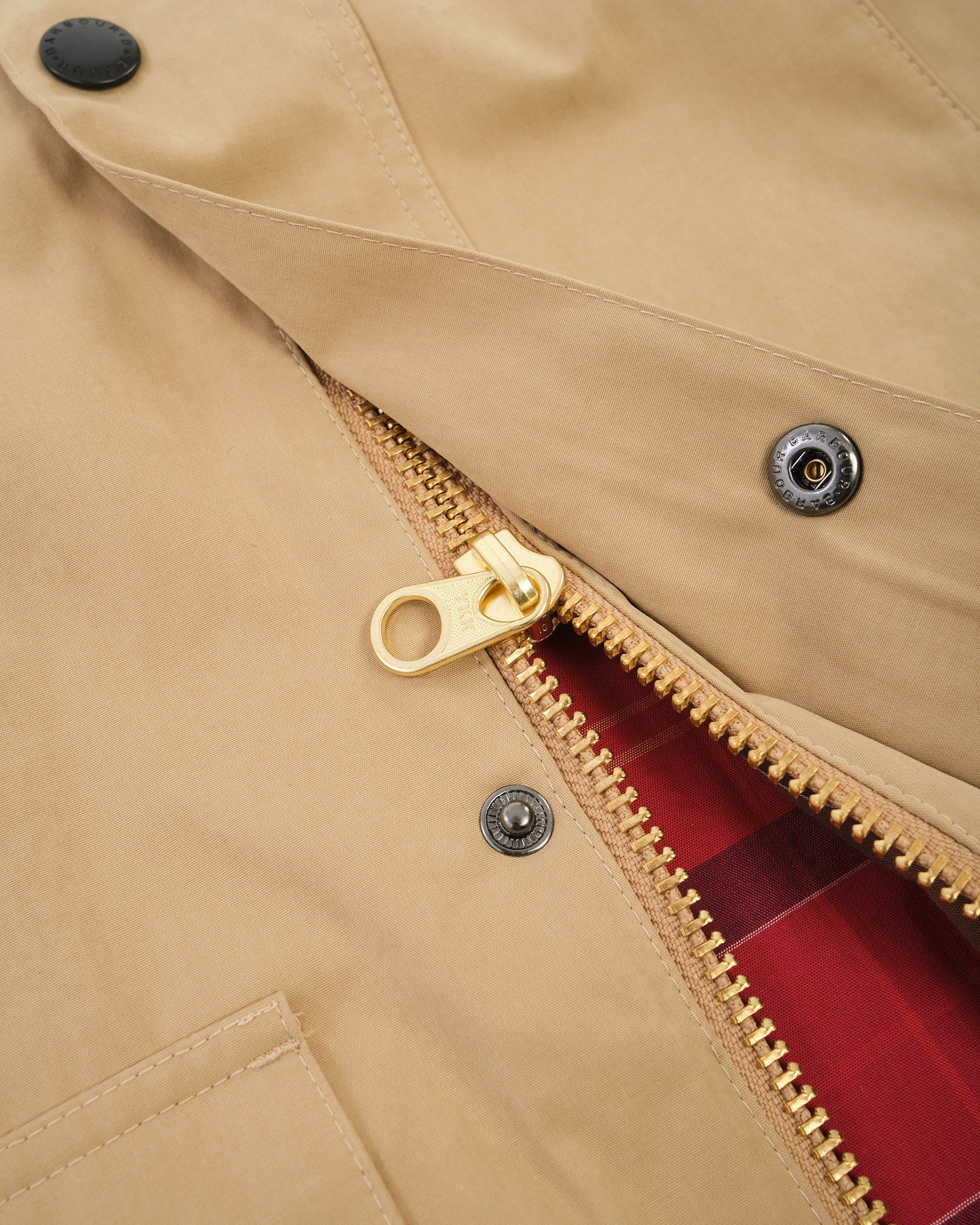 Le blouson décontracté Solar Spey en pierre est une réinterprétation en édition limitée de la silhouette classique Spey, sortie en célébration du Nouvel An Lunaire. Confectionné dans le tissu signature en coton ciré de Barbour, il offre une couche extérieure légère et résistante aux intempéries avec une finition nette. L'intérieur présente une version rouge audacieuse du doublure tartan emblématique de Barbour, symbolisant la bonne fortune dans la culture chinoise. Les détails de conception incluent un col en velours côtelé avec sangle de gorge, deux grandes poches avant à rabat, une fermeture éclair à l'avant avec une patte de tempête à boutons-pression, et un bouton supérieur rouge accompagné d'un badge de pin Nouvel An Lunaire de Barbour. Cette veste mélange la conception patrimoniale avec des détails festifs, la rendant une pièce remarquable pour la saison.