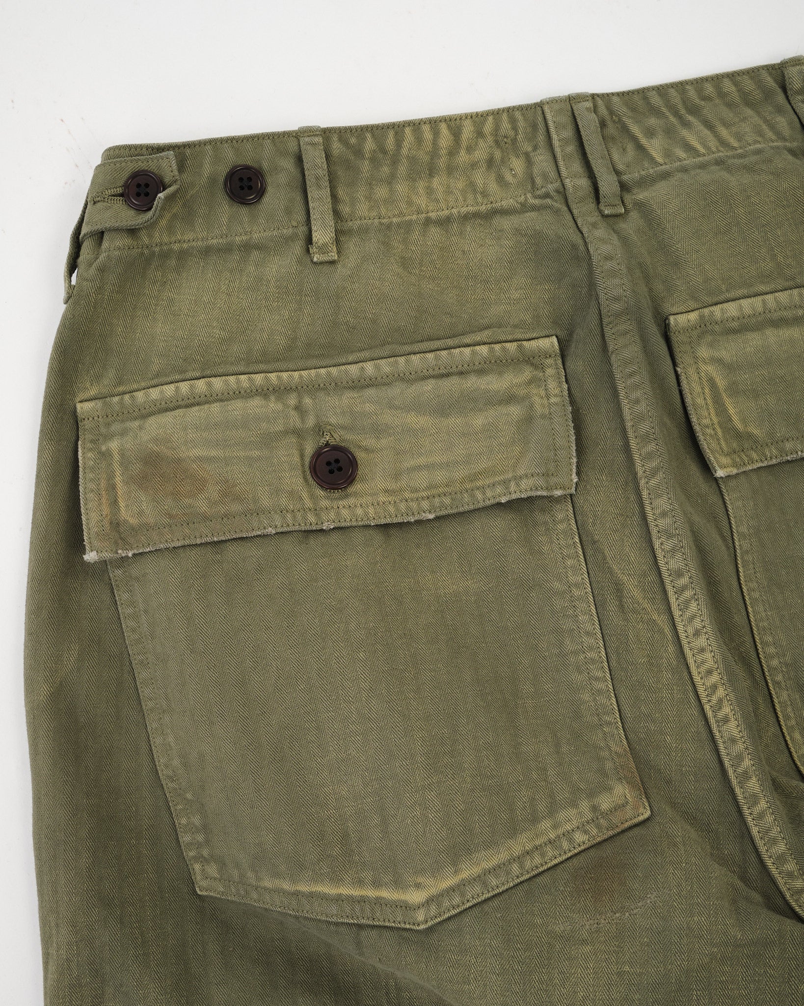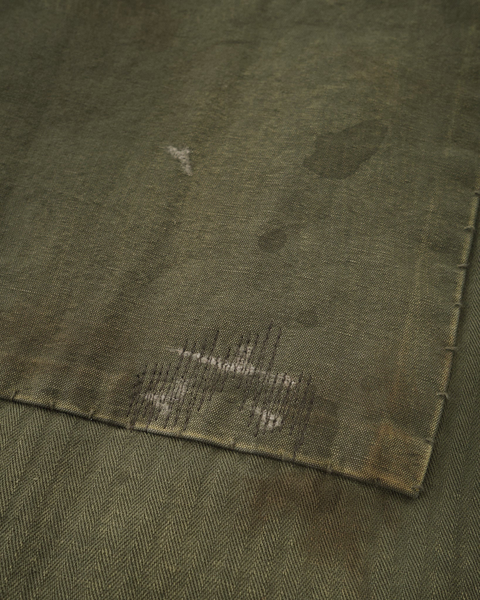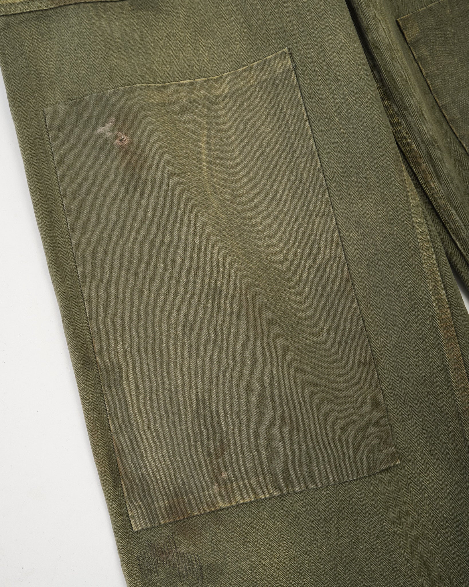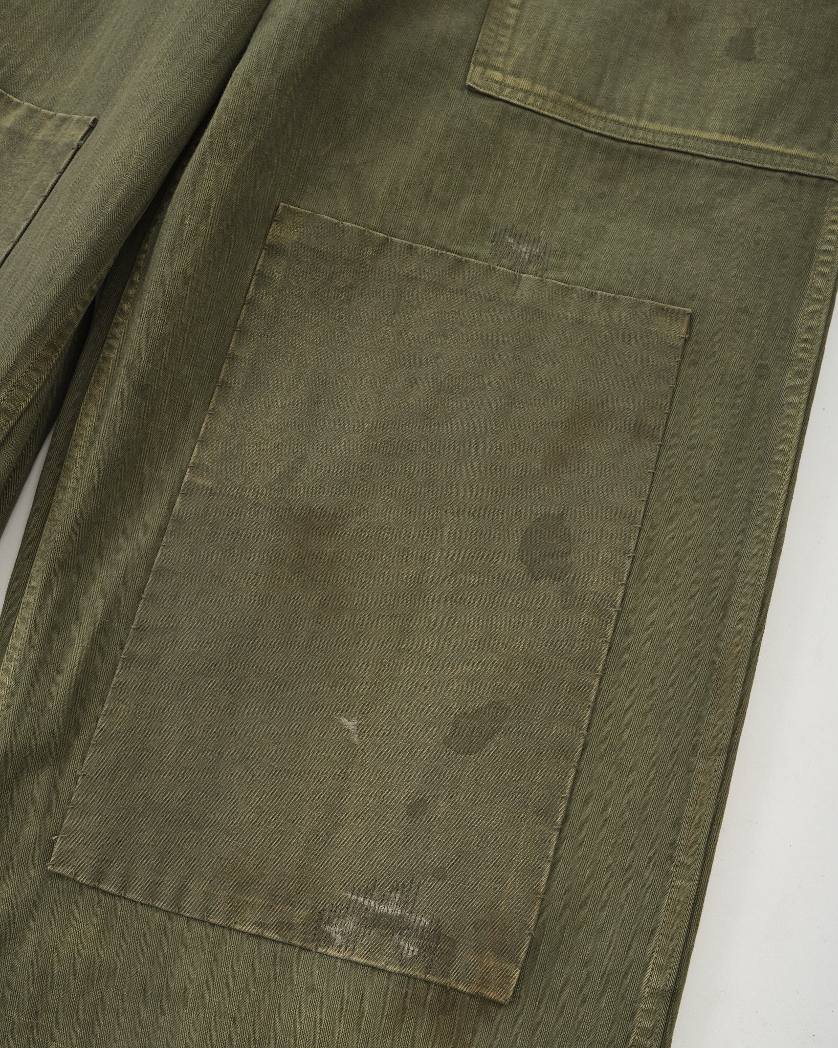 Avec un ajustement détendu, ces pantalons incorporent Détails patchwork de style boro, créant un look texturé unique qui évolue magnifiquement au fil du temps. Le coloris olive Améliore l'attrait militaire vintage, ce qui en fait un choix polyvalent pour l'usure quotidienne. Fabriqué au Japon, ils témoignent de l'artisanat expert et de la conception intemporelle.