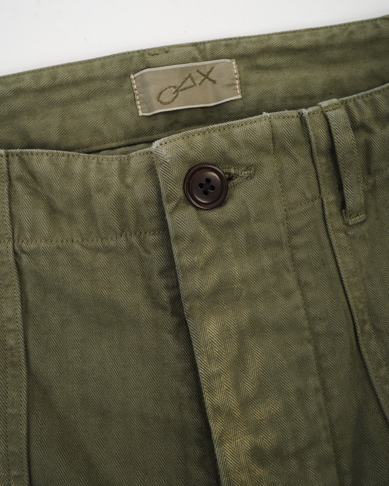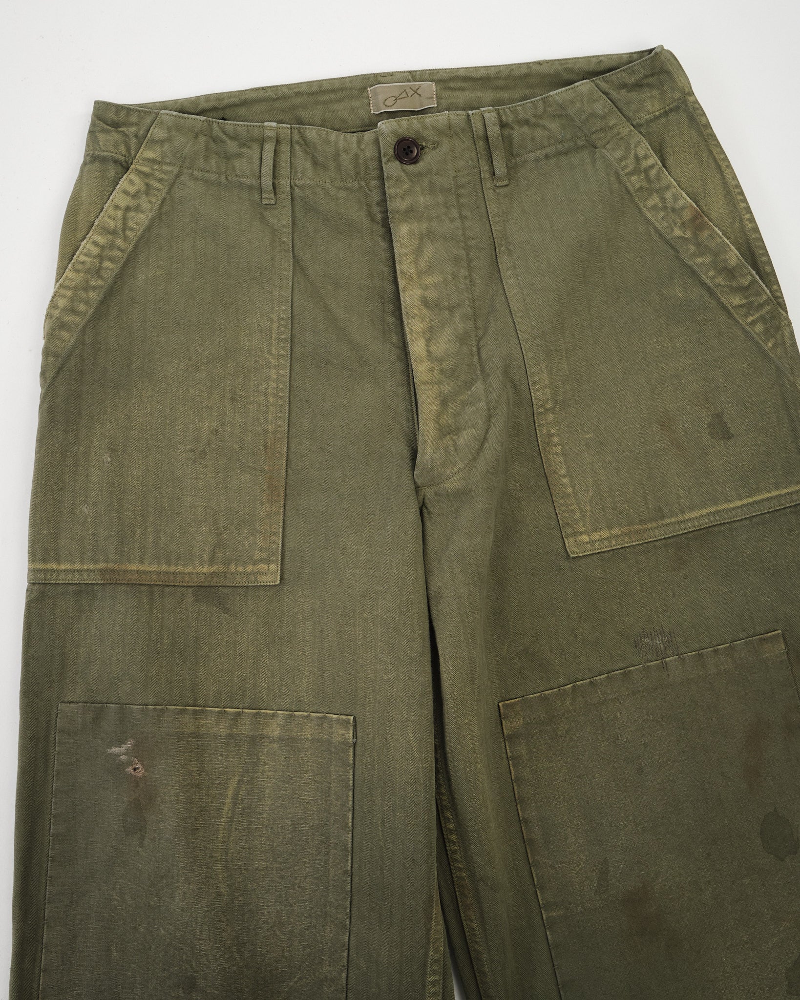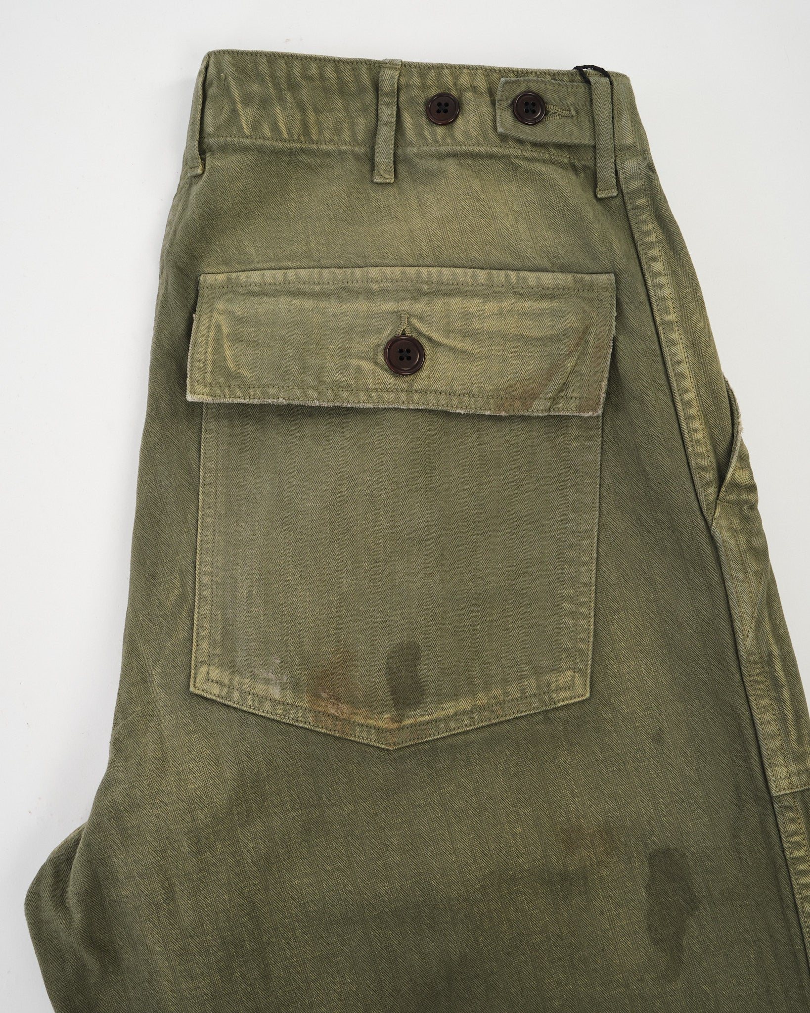 Avec un ajustement détendu, ces pantalons incorporent Détails patchwork de style boro, créant un look texturé unique qui évolue magnifiquement au fil du temps. Le coloris olive Améliore l'attrait militaire vintage, ce qui en fait un choix polyvalent pour l'usure quotidienne. Fabriqué au Japon, ils témoignent de l'artisanat expert et de la conception intemporelle.