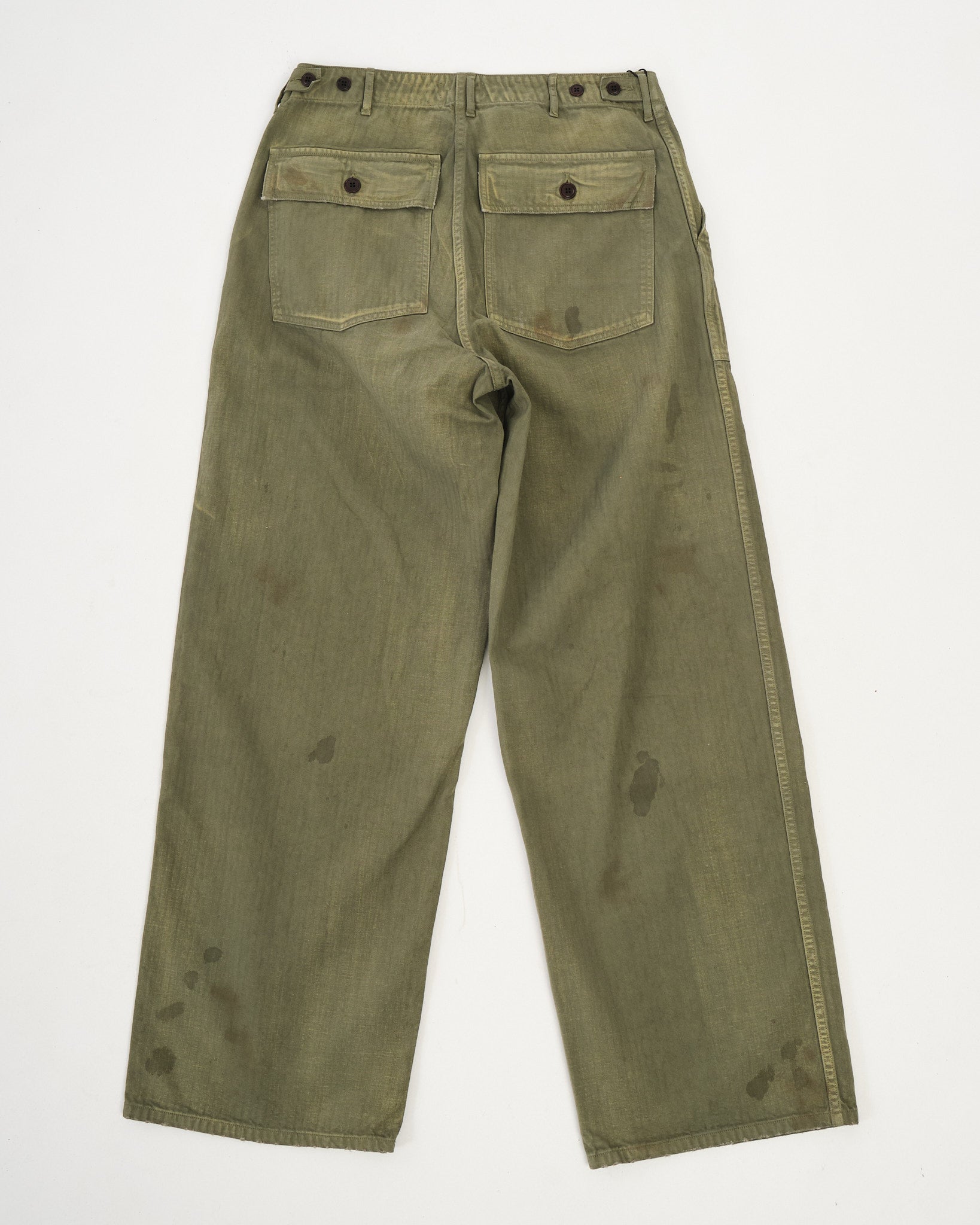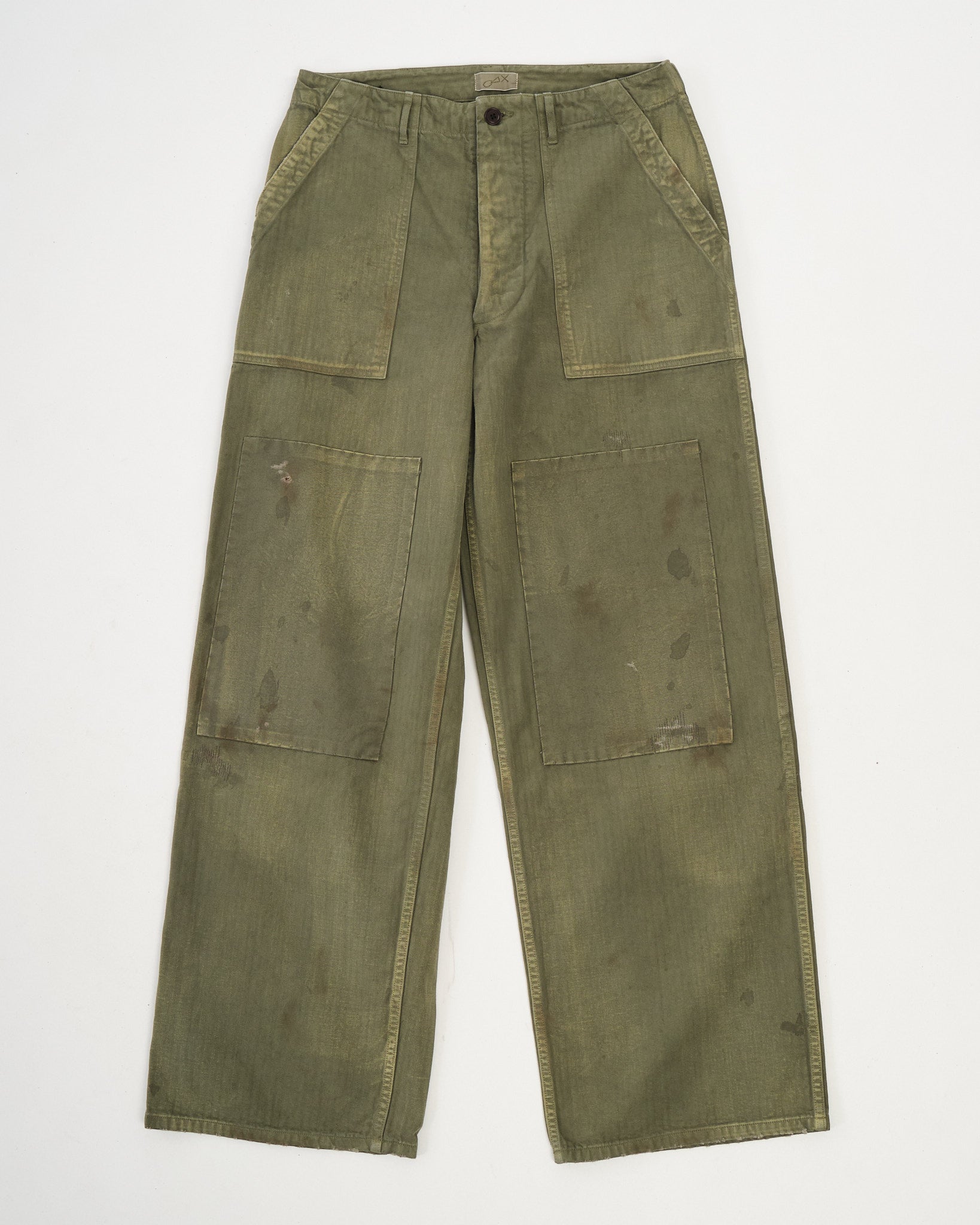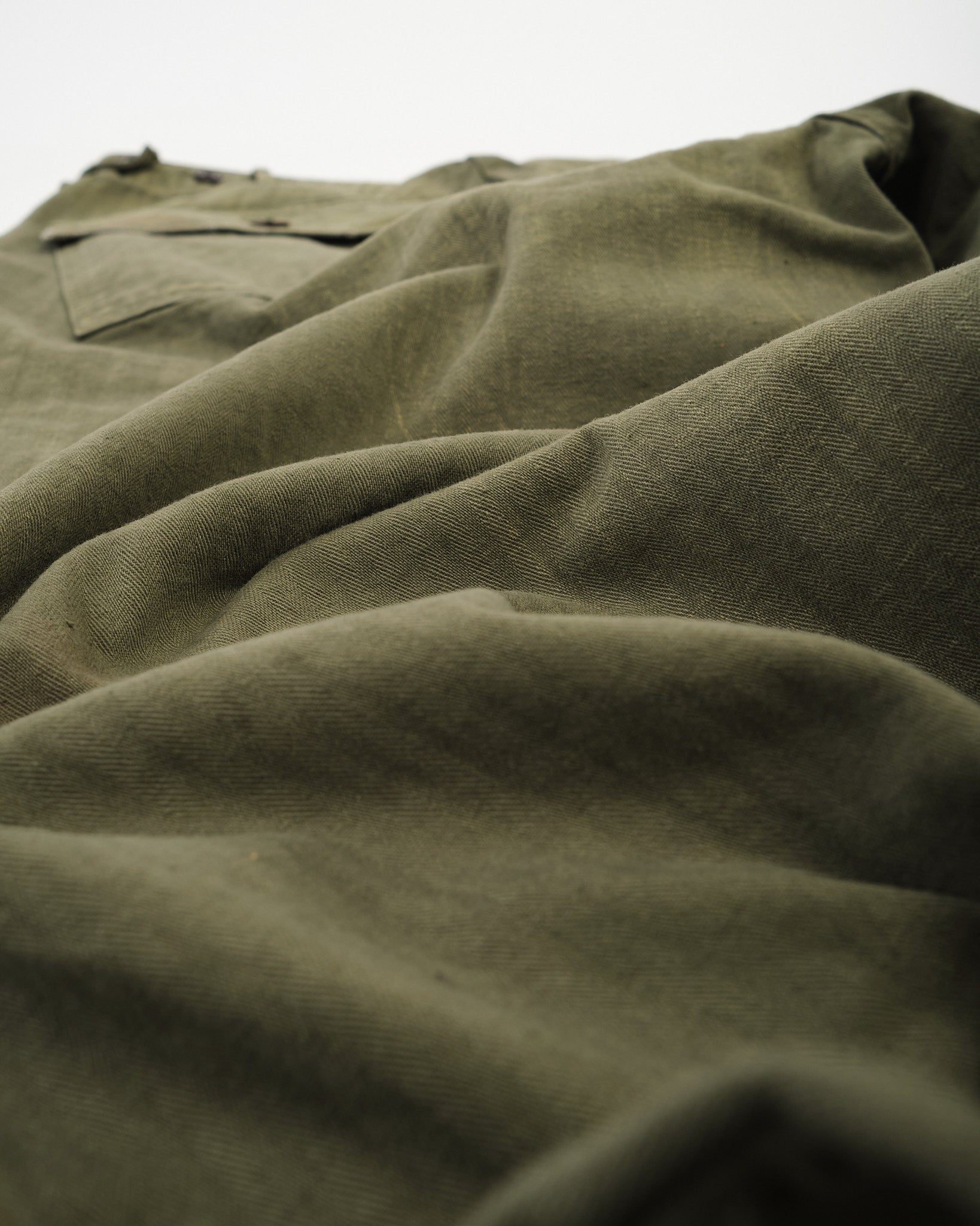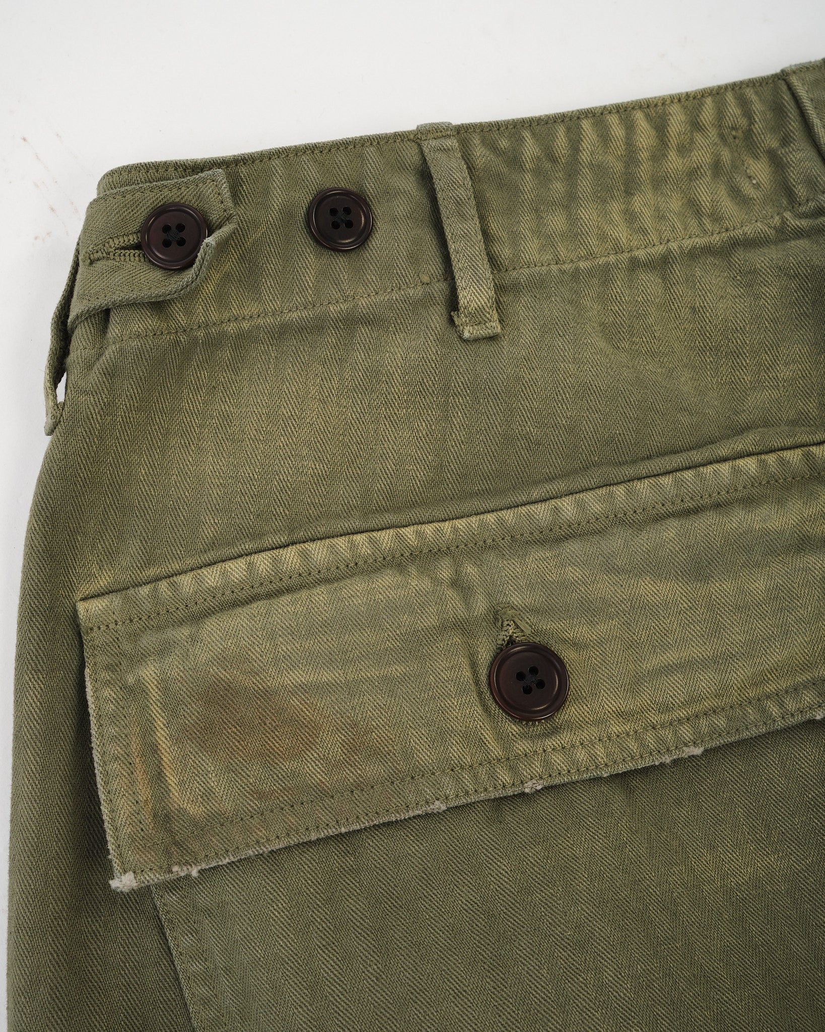 Avec un ajustement détendu, ces pantalons incorporent Détails patchwork de style boro, créant un look texturé unique qui évolue magnifiquement au fil du temps. Le coloris olive Améliore l'attrait militaire vintage, ce qui en fait un choix polyvalent pour l'usure quotidienne. Fabriqué au Japon, ils témoignent de l'artisanat expert et de la conception intemporelle.