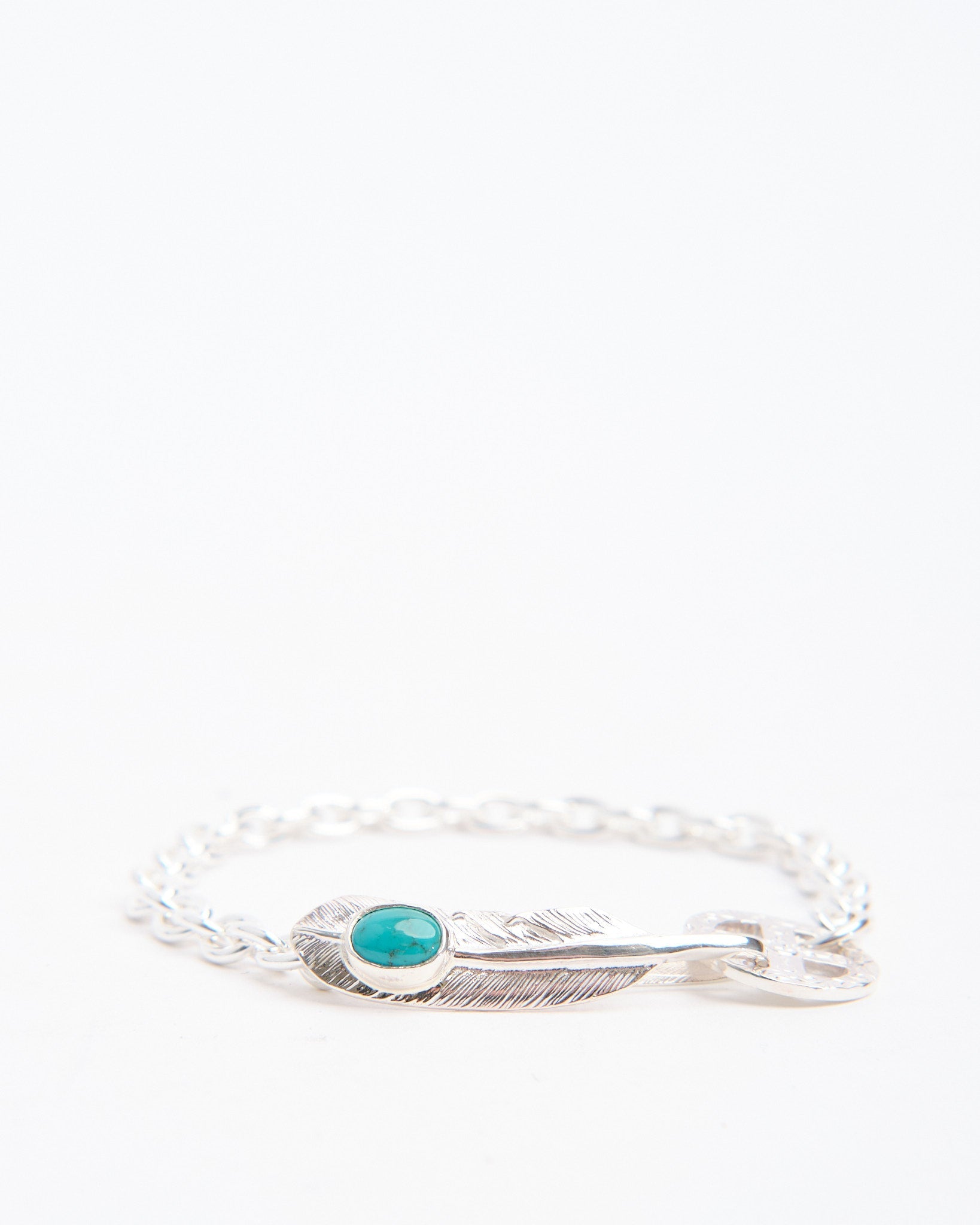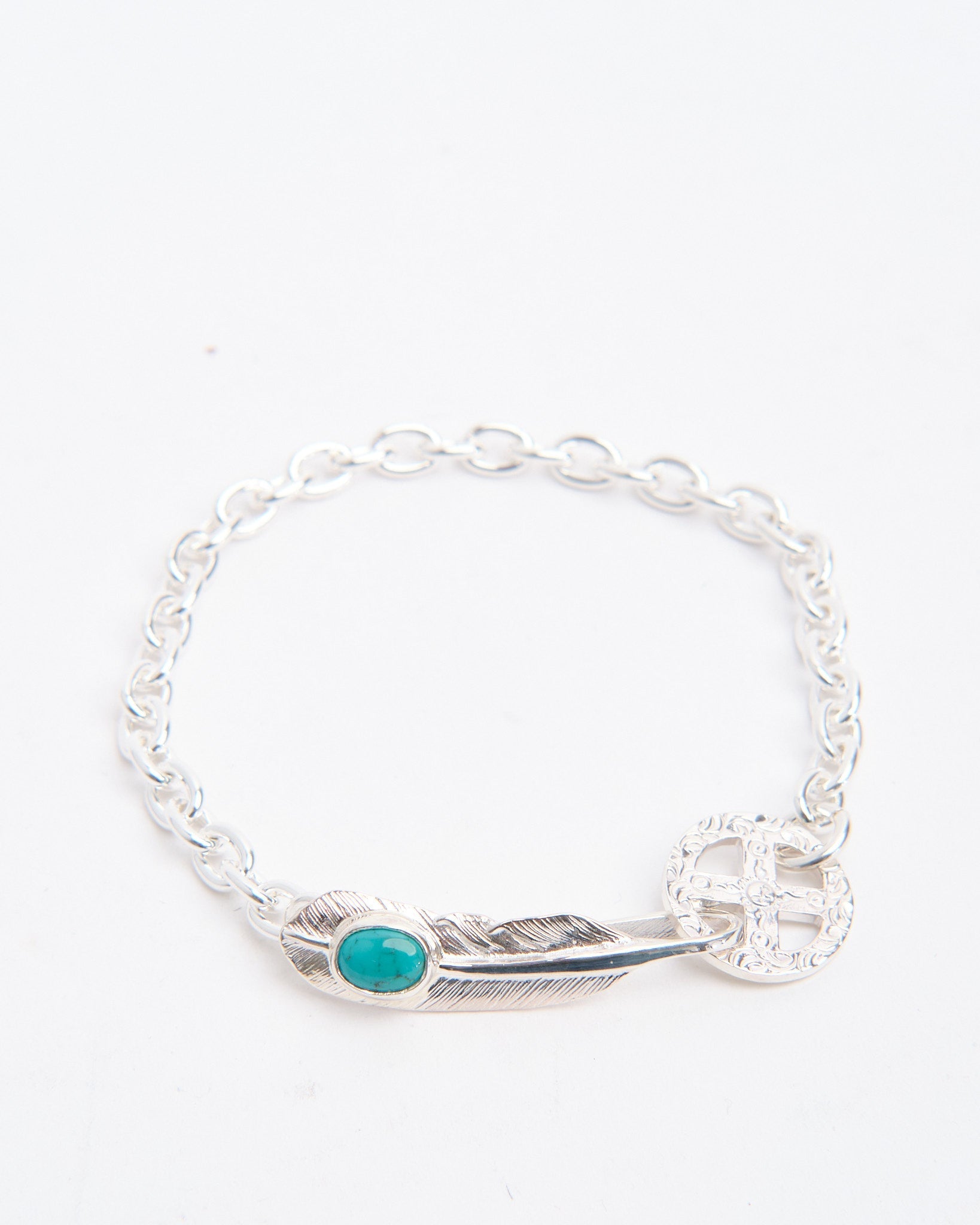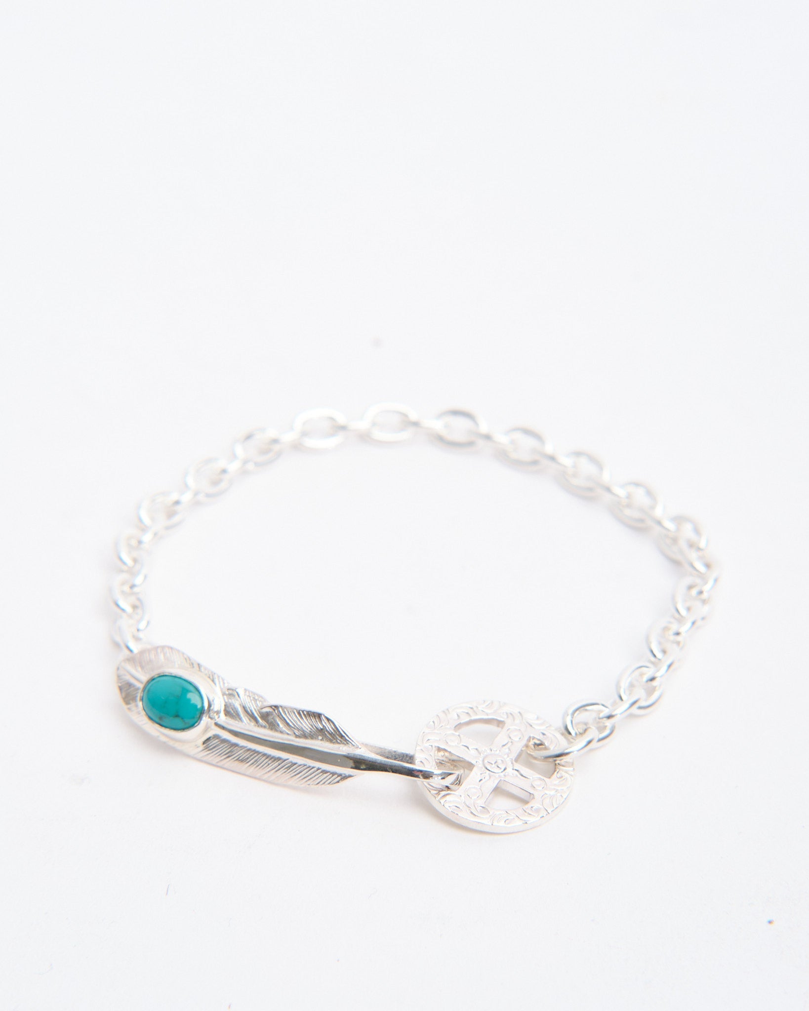 BR-307 S FEATHER HOOK+MEDICINE WHEEL CHAIN BRACELET WITH TURQUOISE Msize