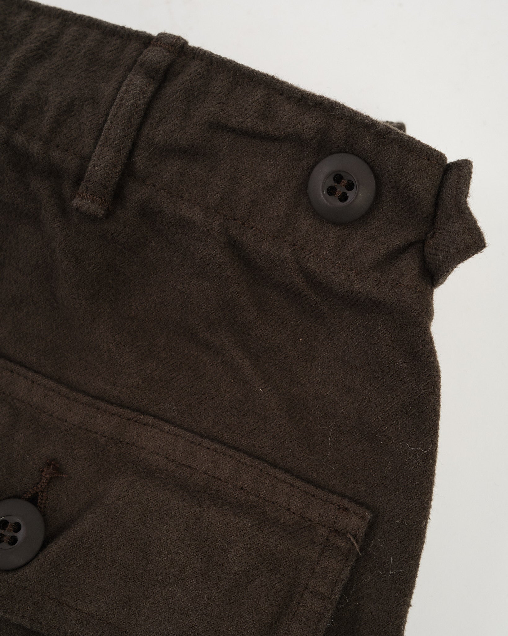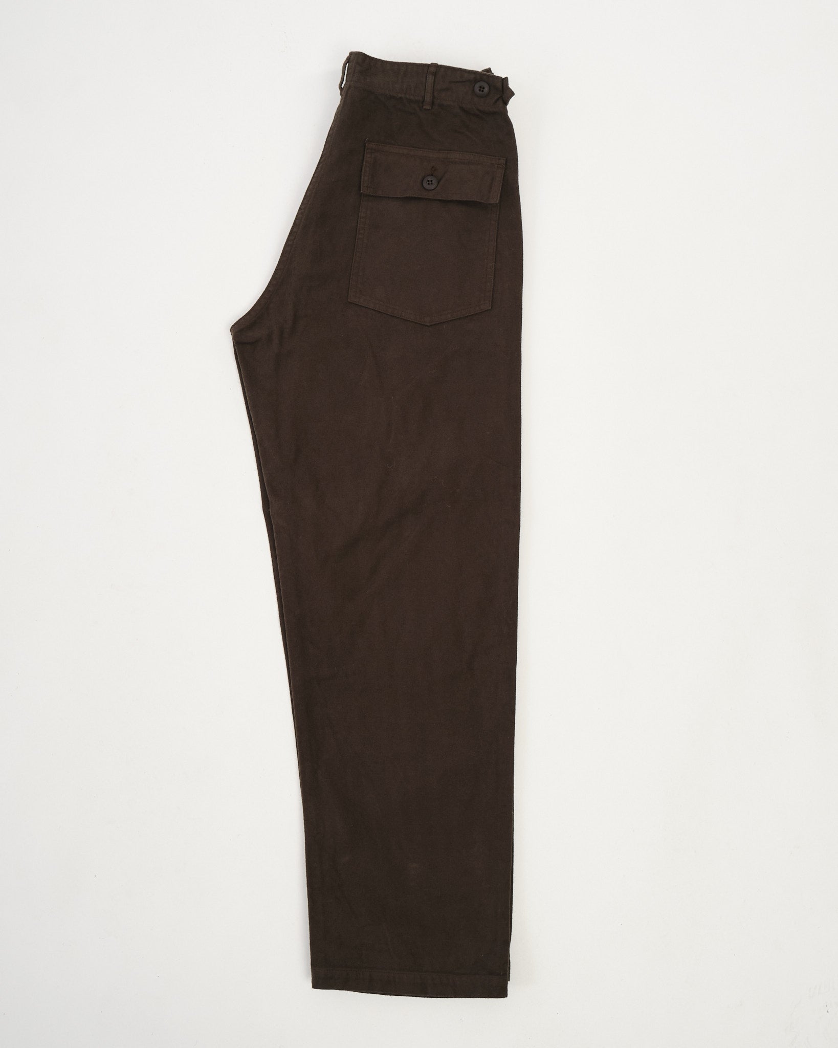 Un classique militaire, réinventé en flanelle chaude. Le pantalon de fatigue en flanelle brossée de orSlow est coupé au Japon à partir de flanelle de coton douce, brossée pour un confort supplémentaire et une sensation dense et douillette. Le ton brun café offre une base riche et polyvalente, tandis que le design reste fidèle au plan original de fatigue de l'armée américaine avec des poches plaquées, une coupe droite et des pattes de serrage ajustables. Un mélange parfait de détails patrimoniaux et de praticité quotidienne, conçu pour les mois les plus froids.