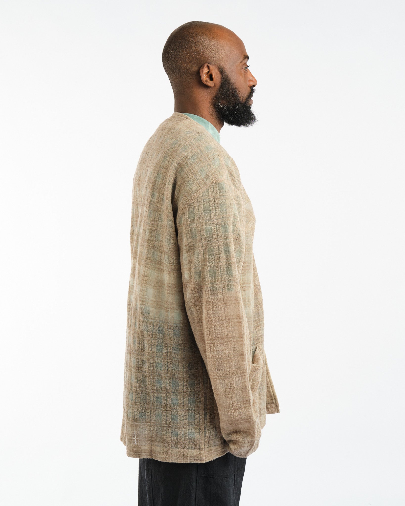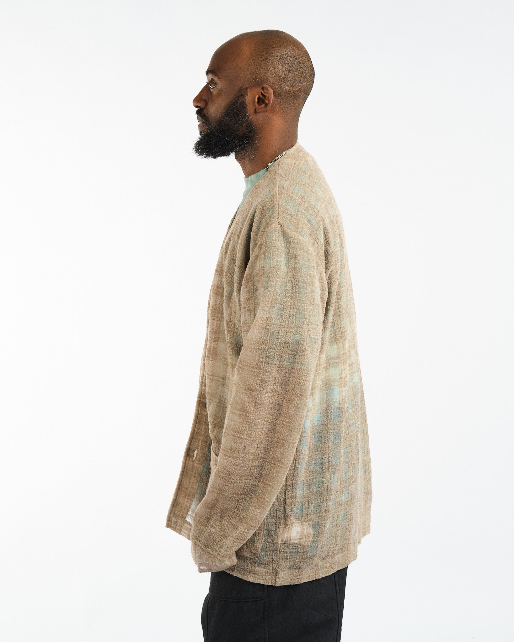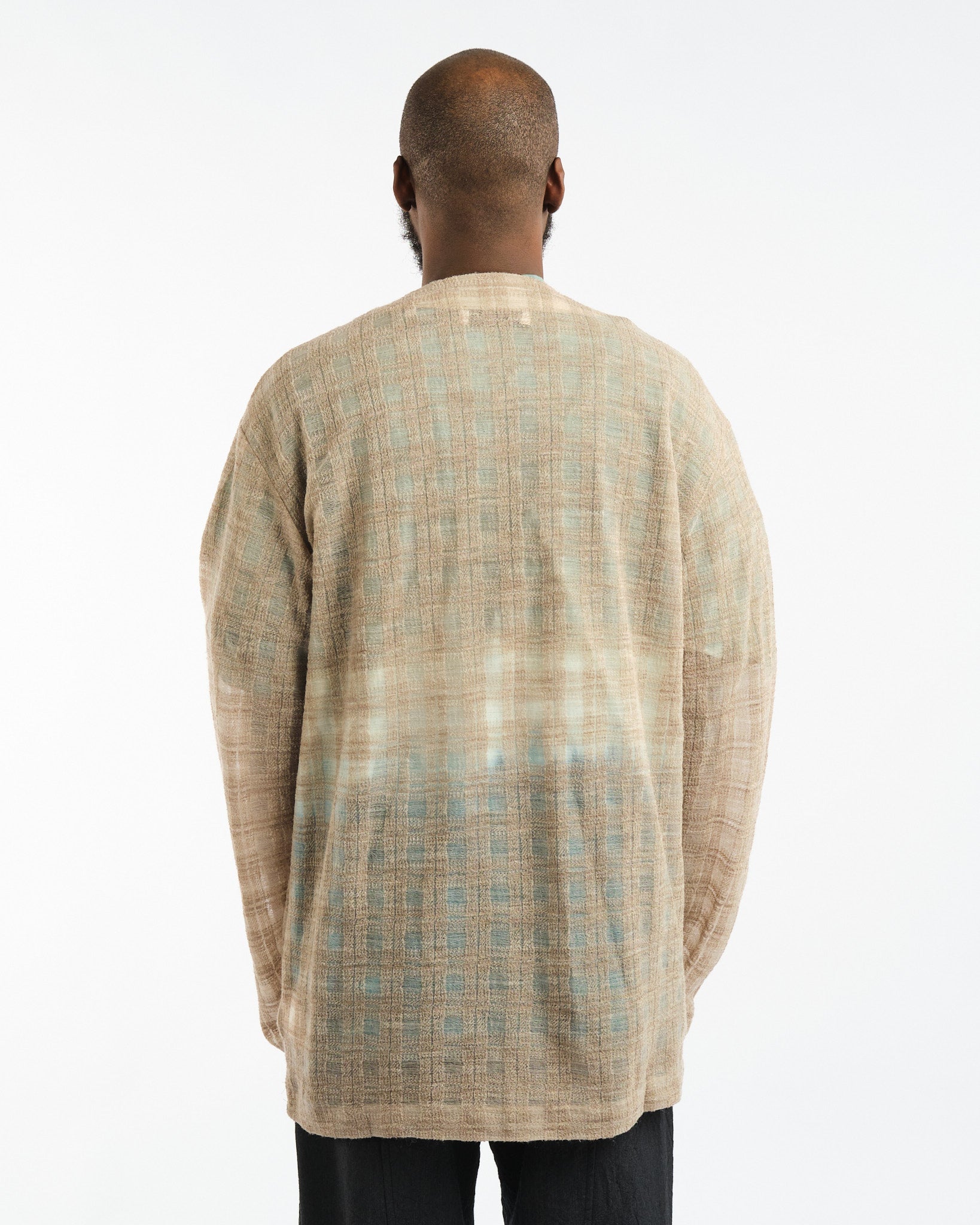Ce vêtement est fabriqué à l'aide d'un matériau spécial qui est soigneusement sélectionné pour ses propriétés uniques. Alors que le porteur enfile le cardigan, il prendra sa forme et sa détresse naturellement au fil du temps, terminant le processus de conception avec une ambiance décontractée et amusante.