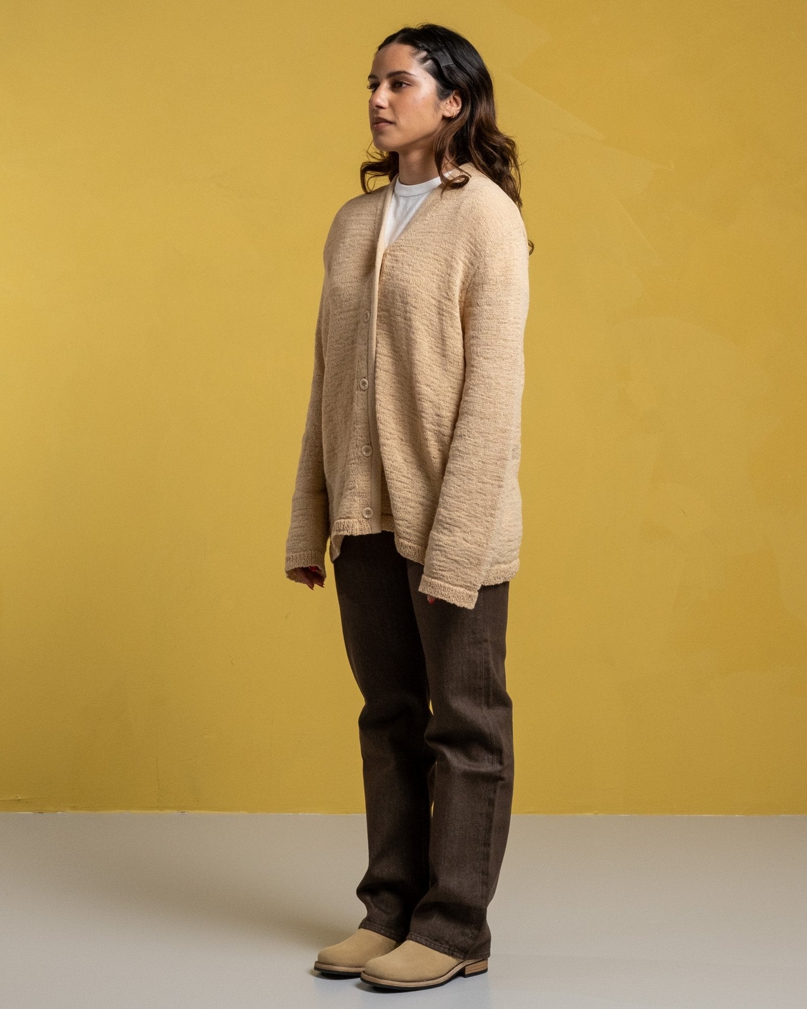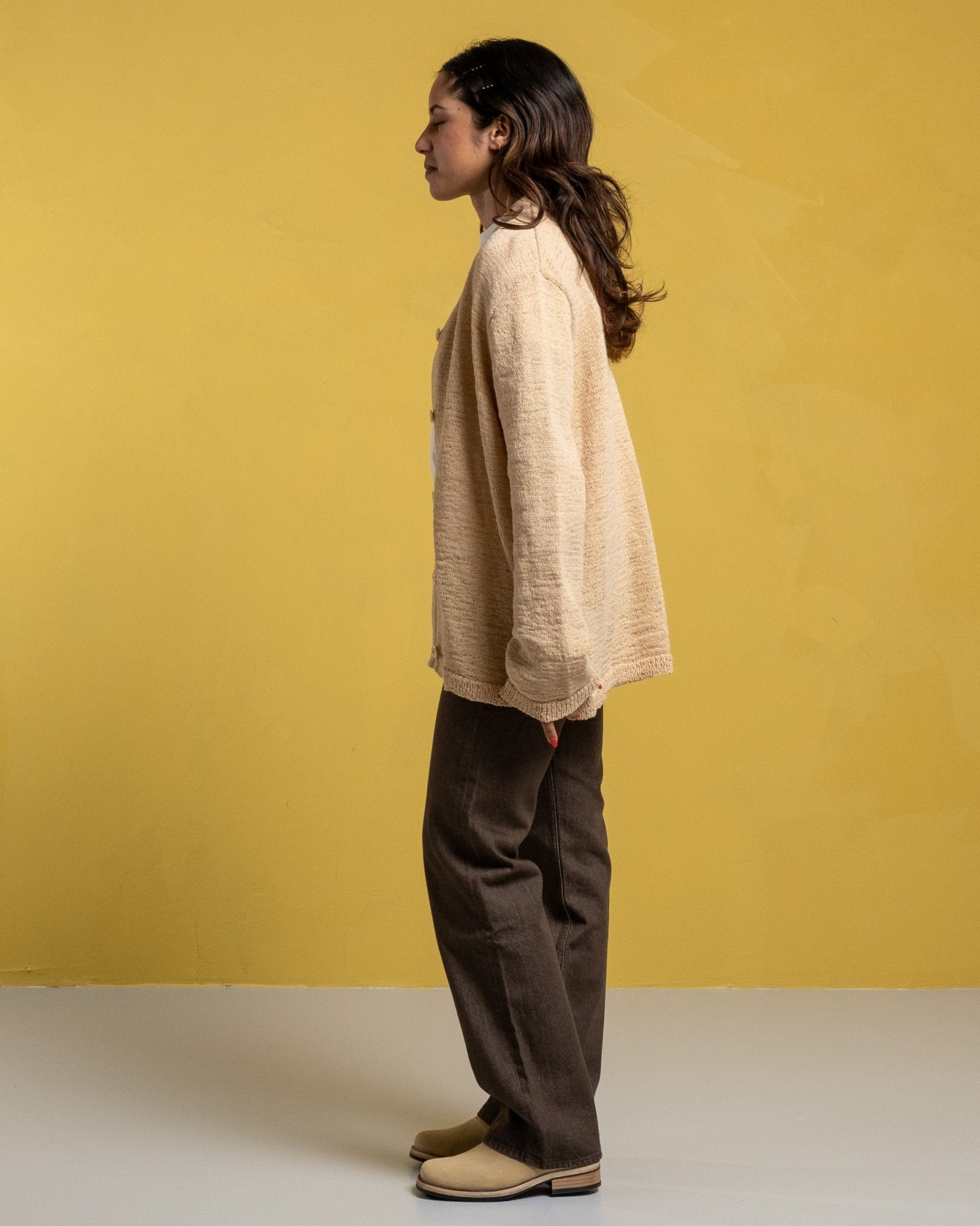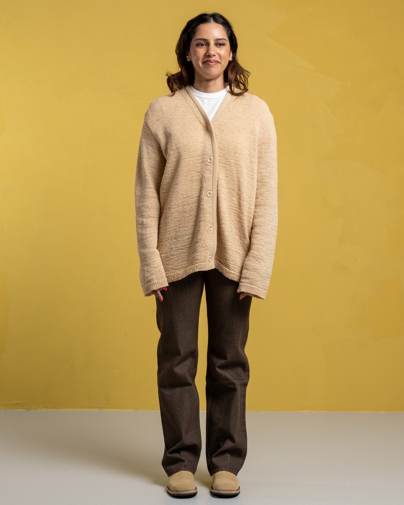 Cardigan tricot en faux cordon beige W de notre héritage. Cardigan ajusté détendu coupé à partir d'un tissu en polyamide italien à cordon italien. Avec un front boutonné avec un col à col en V et des boutons personnalisés. Fabriqué à l'aide d'un matériau délicat avec une construction naturellement lâche. Veuillez gérer avec soin et laver en fonction des instructions de lavage. Soyez particulièrement prudent avec les bijoux et autres objets pointus qui pourraient nuire à la surface. Fabriqué au Portugal.