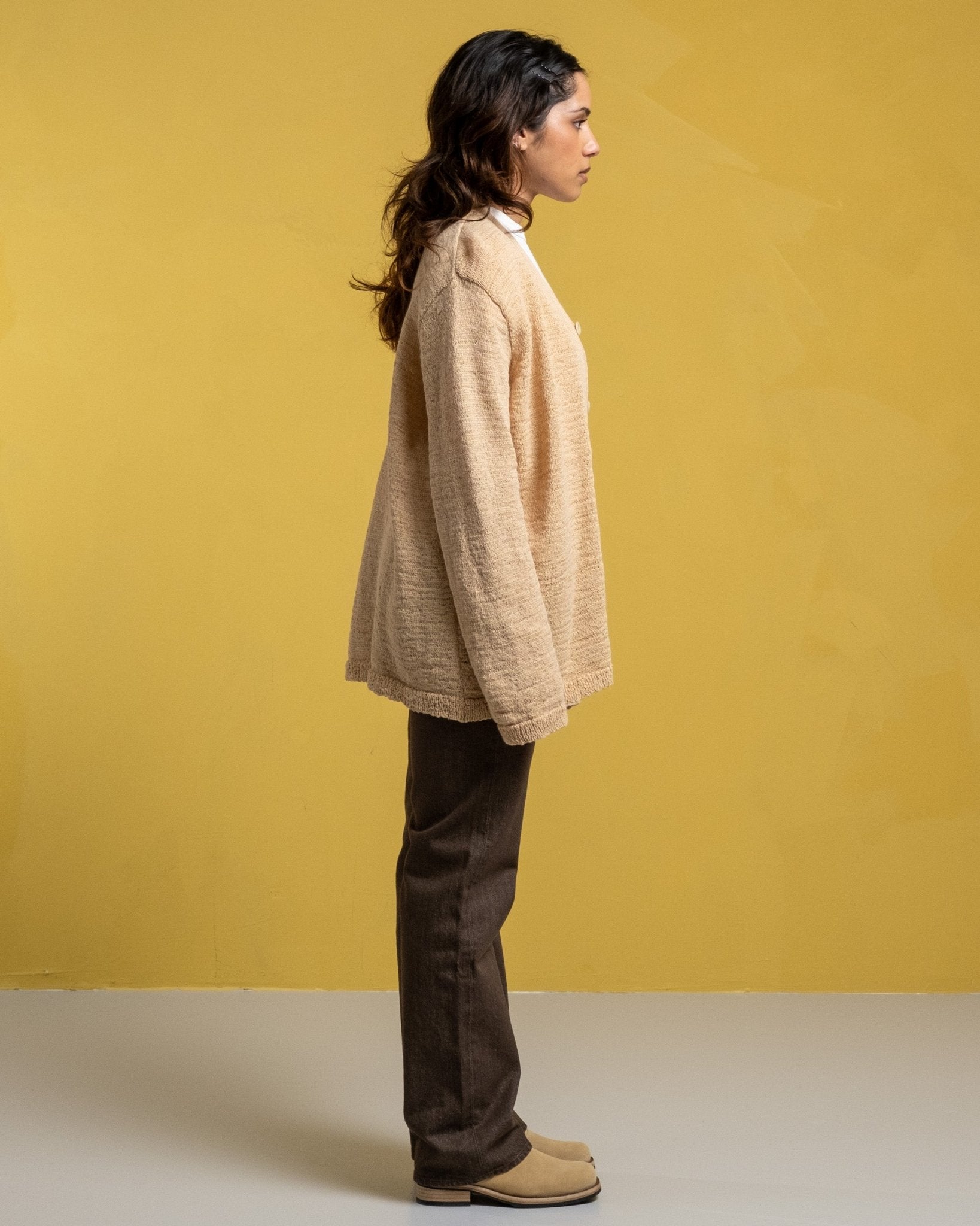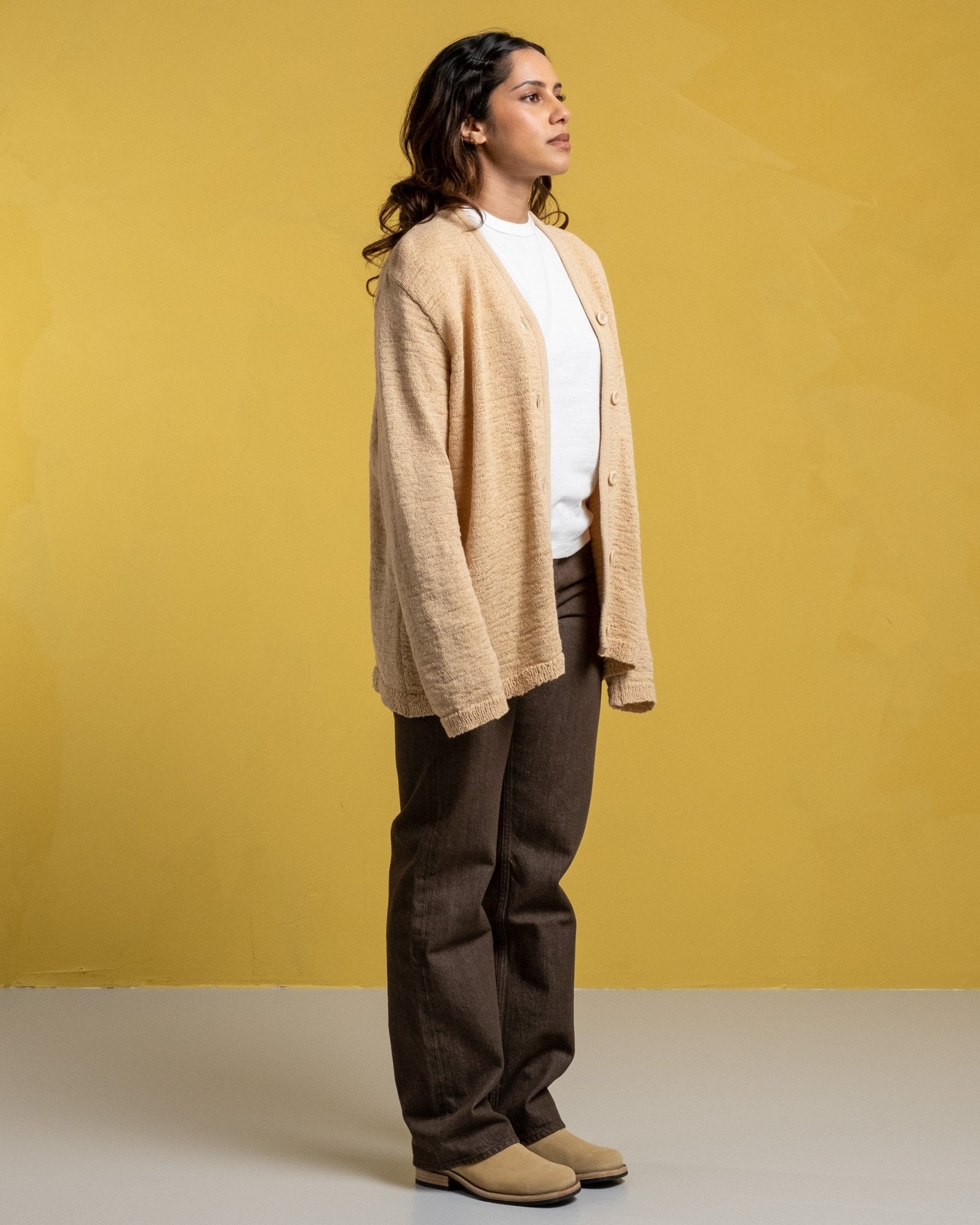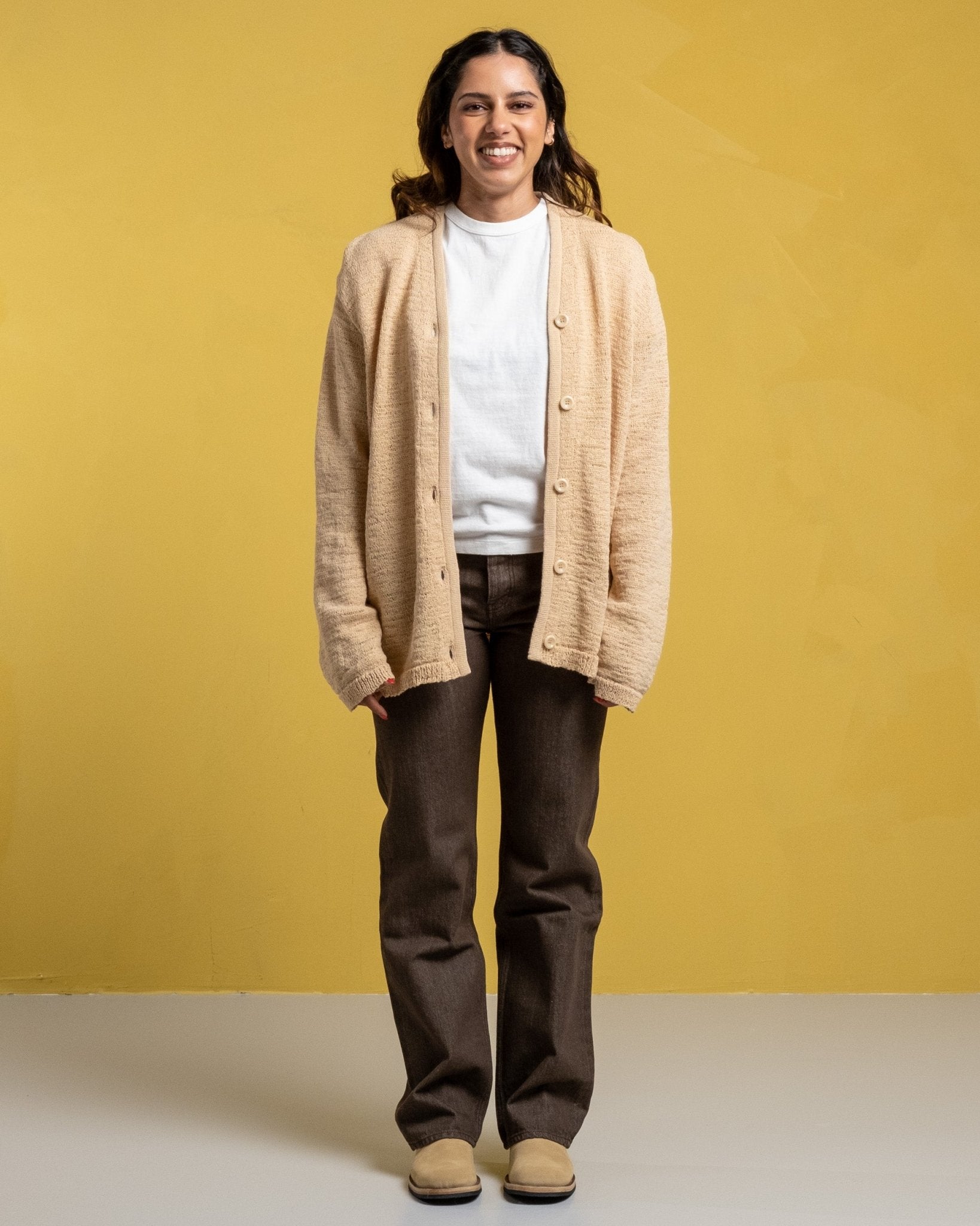 Cardigan tricot en faux cordon beige W de notre héritage. Cardigan ajusté détendu coupé à partir d'un tissu en polyamide italien à cordon italien. Avec un front boutonné avec un col à col en V et des boutons personnalisés. Fabriqué à l'aide d'un matériau délicat avec une construction naturellement lâche. Veuillez gérer avec soin et laver en fonction des instructions de lavage. Soyez particulièrement prudent avec les bijoux et autres objets pointus qui pourraient nuire à la surface. Fabriqué au Portugal.