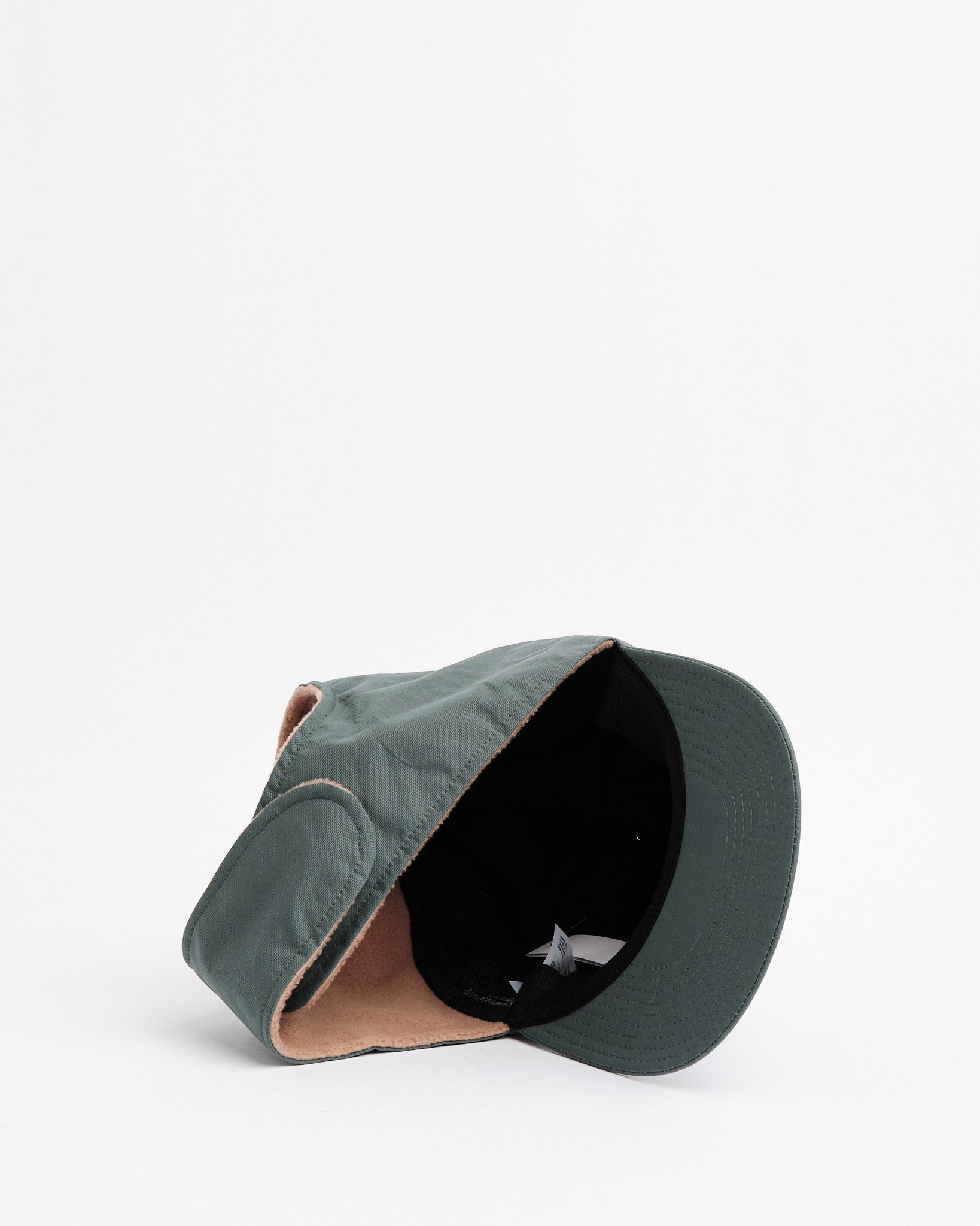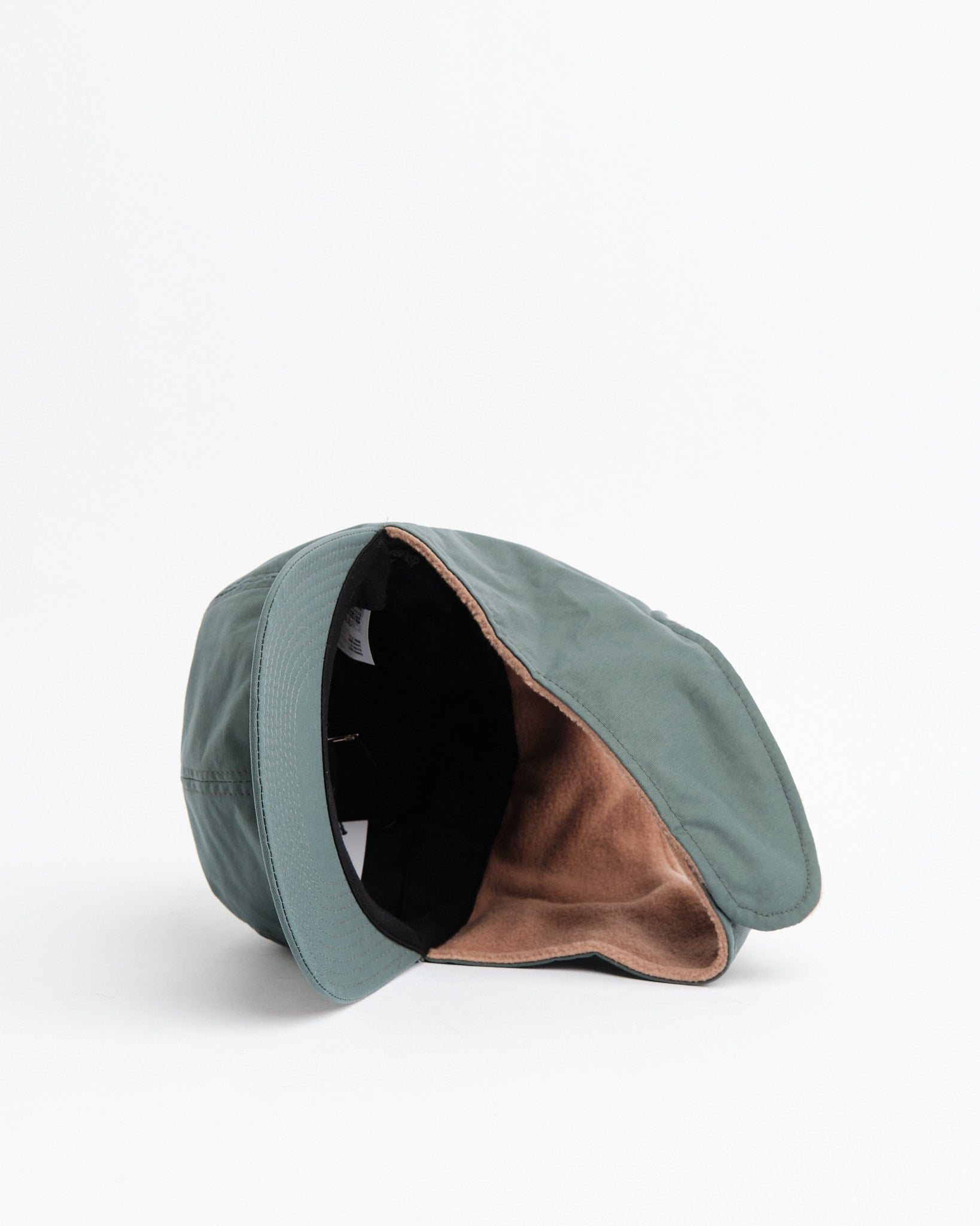 6 Panel Baseball Cap + Ear Flap, Char/Beige