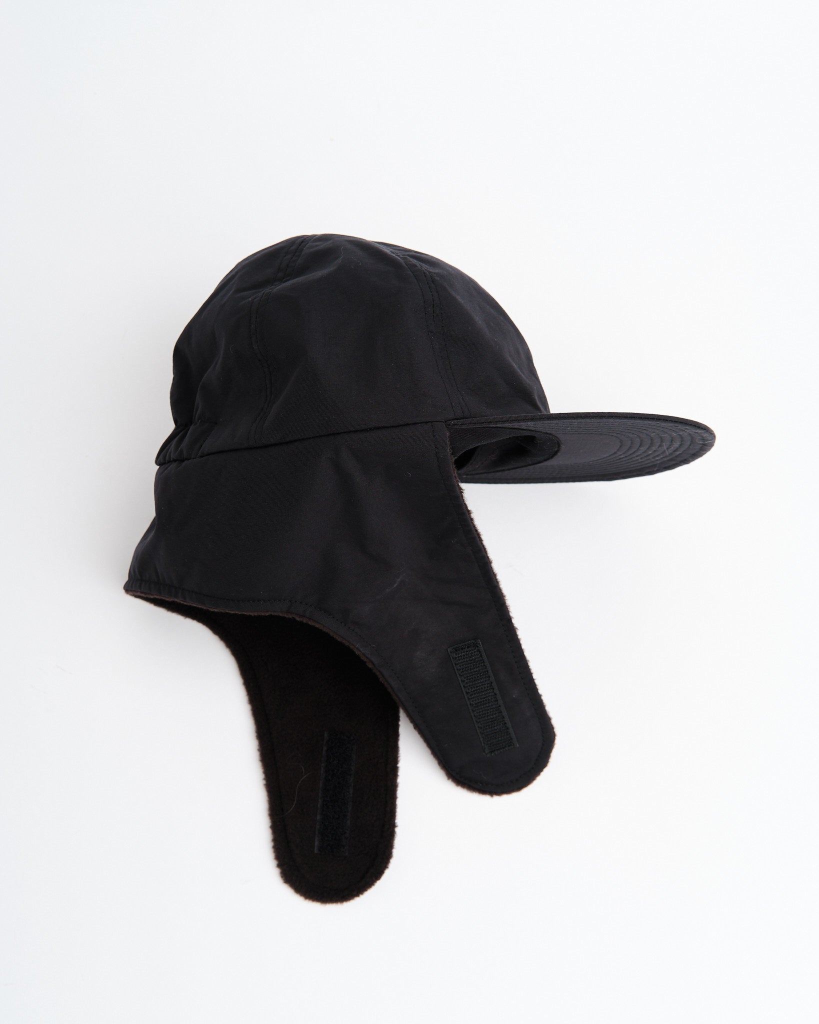 6 Panel Baseball Cap + Ear Flap, Black/Black