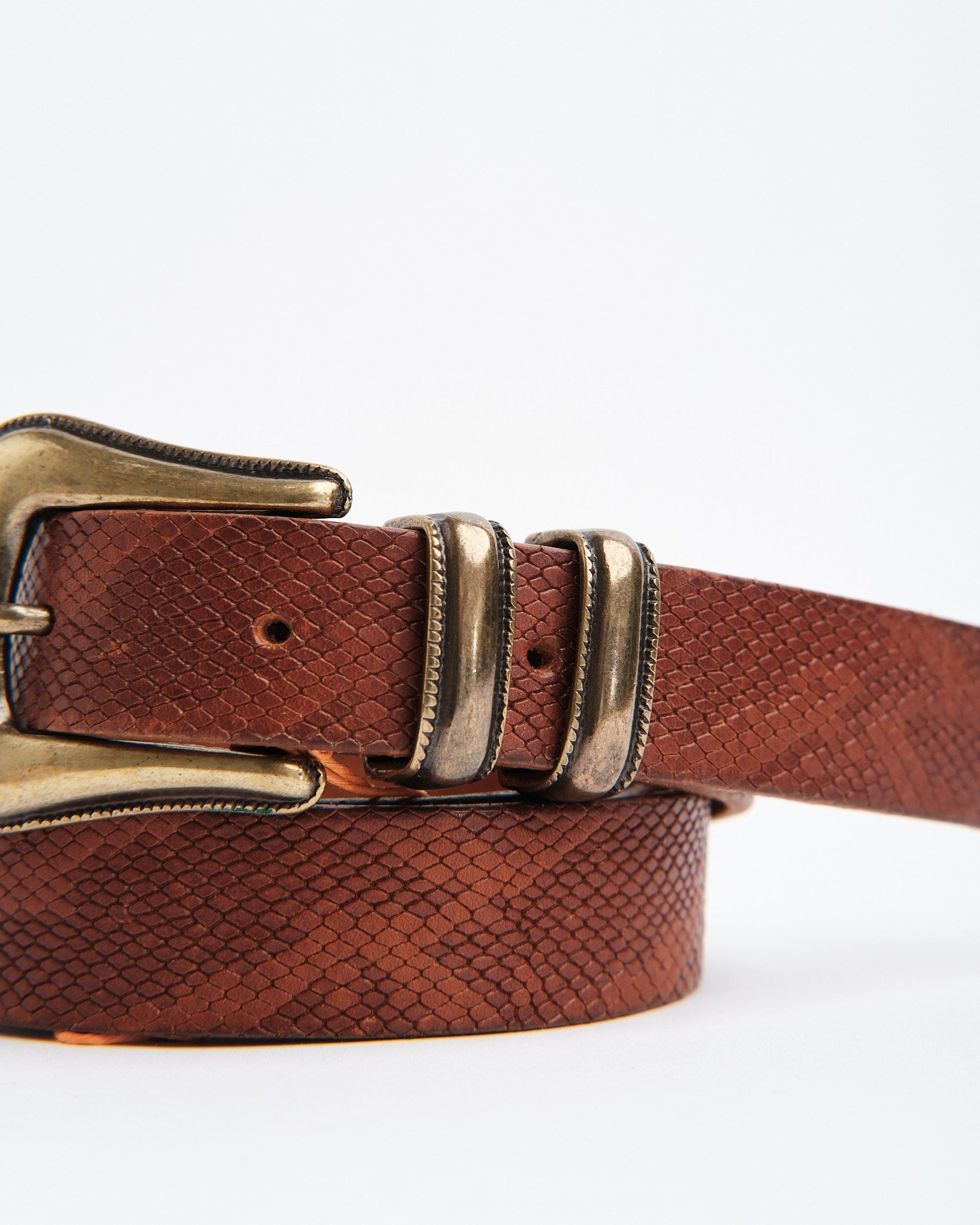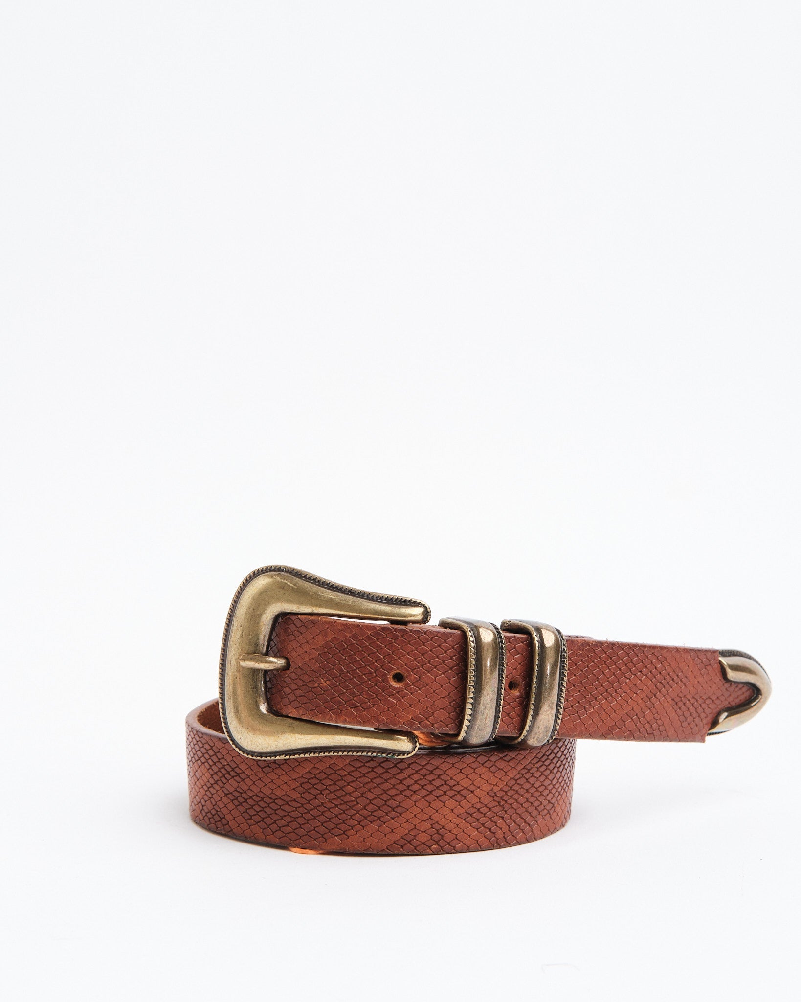 Western Faux Reptile Belt Cognac