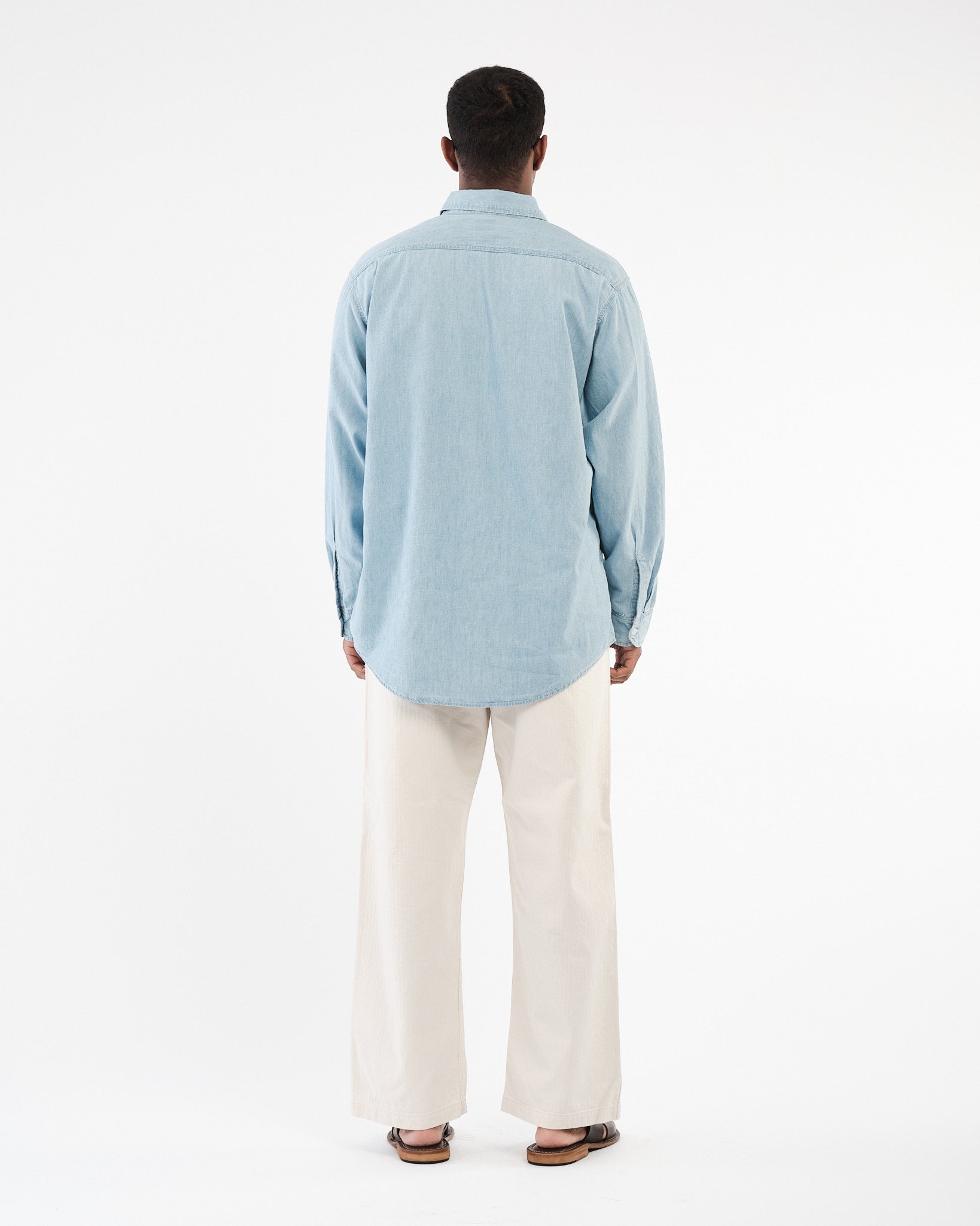 Le tissu chambray blanchi offre une apparence légère et aérée, ce qui le rend polyvalent pour diverses options de style. Que ce soit porté boutonné pour un look poli ou superposé sur un tee-shirt pour une ambiance décontractée, cette chemise mélange de manière transparente les fonctionnalités avec un style intemporel.