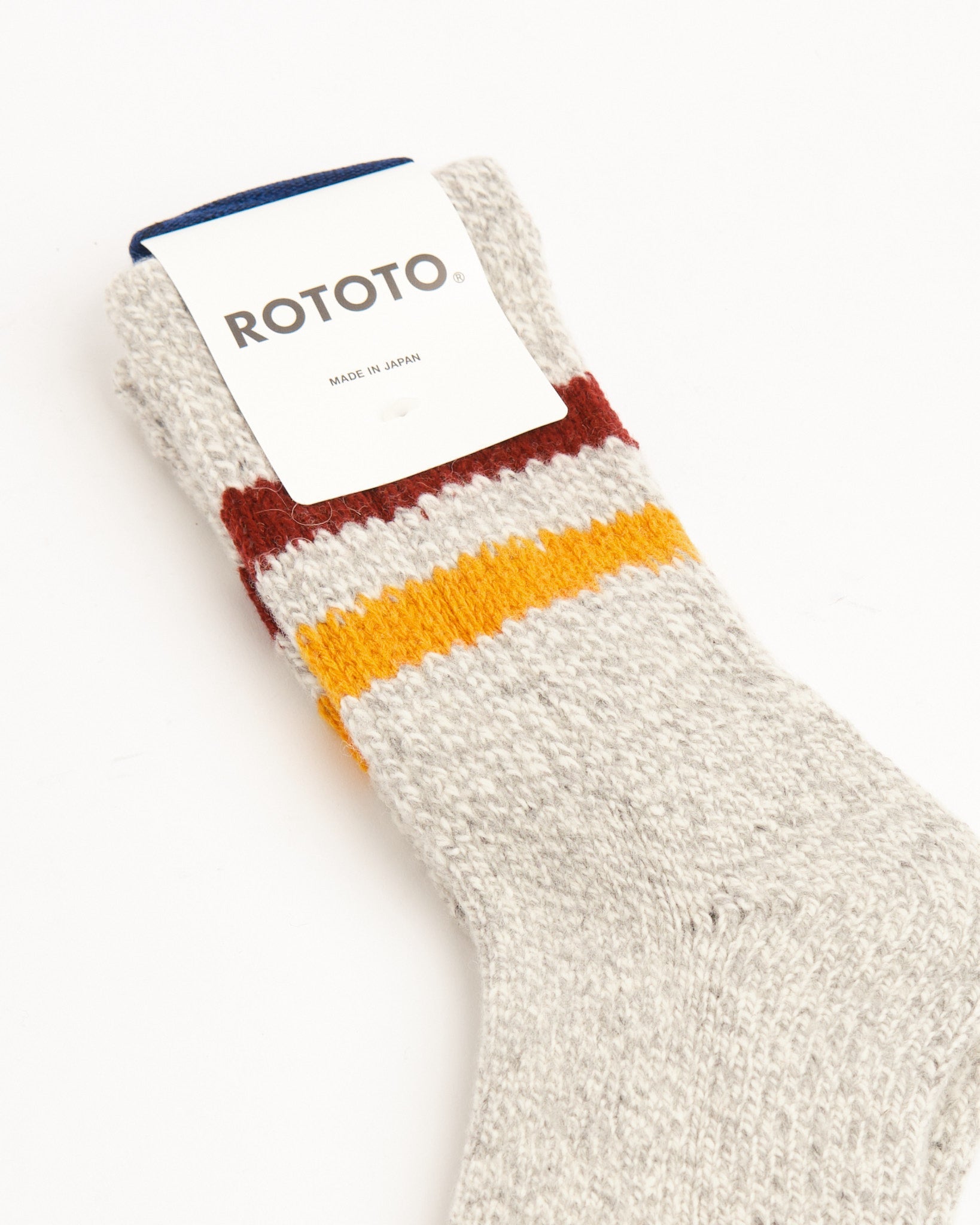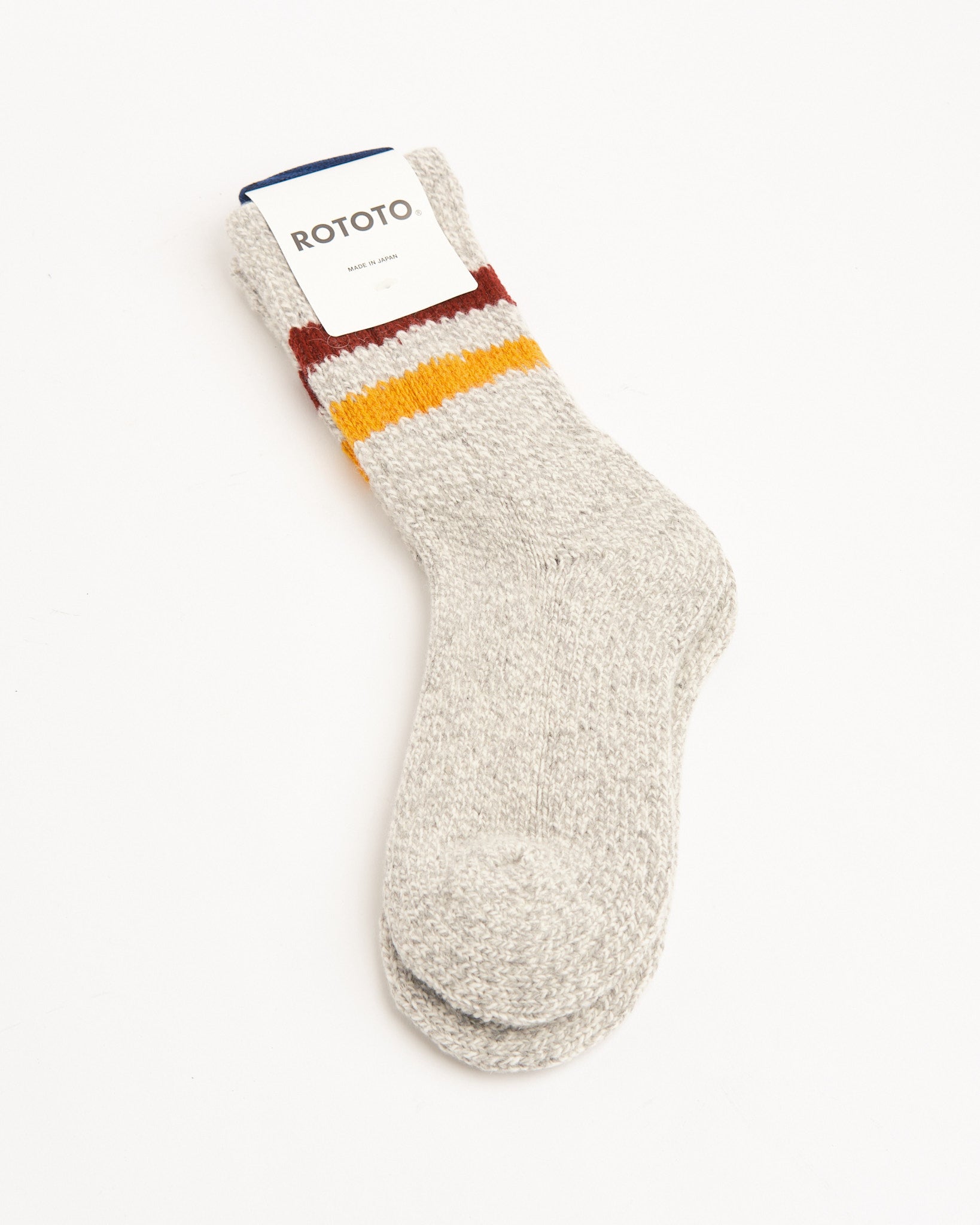 Rototo combine l'artisanat et la durabilité séculaires avec leurs chaussettes extérieures hivernales rétro, inspirées des styles d'hiver en plein air emblématiques. Parfait parfaitement adapté aux aventures de ski et de montage de la colline, ils promettent de la chaleur pendant des moments froids. Fabriquées au Japon à partir d'un fil de mélange de laine moelleux, ces chaussettes grises et blanches sont un clin d'œil à l'esthétique vintage. Leur design rayé ajoute non seulement un charme rétro, mais vous invite à embrasser le plein air, quelle que soit la saison. Avec seulement une poignée d'artisans qui peuvent gérer la machine à tricoter vintage utilisée dans leur construction, chaque paire est un témoignage de l'artisanat authentique.
