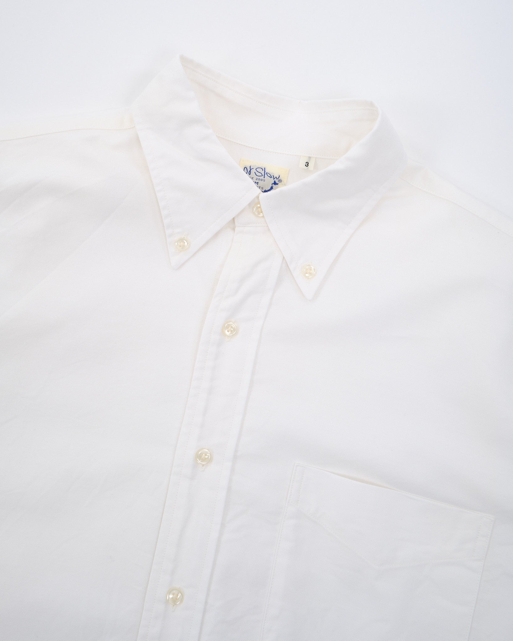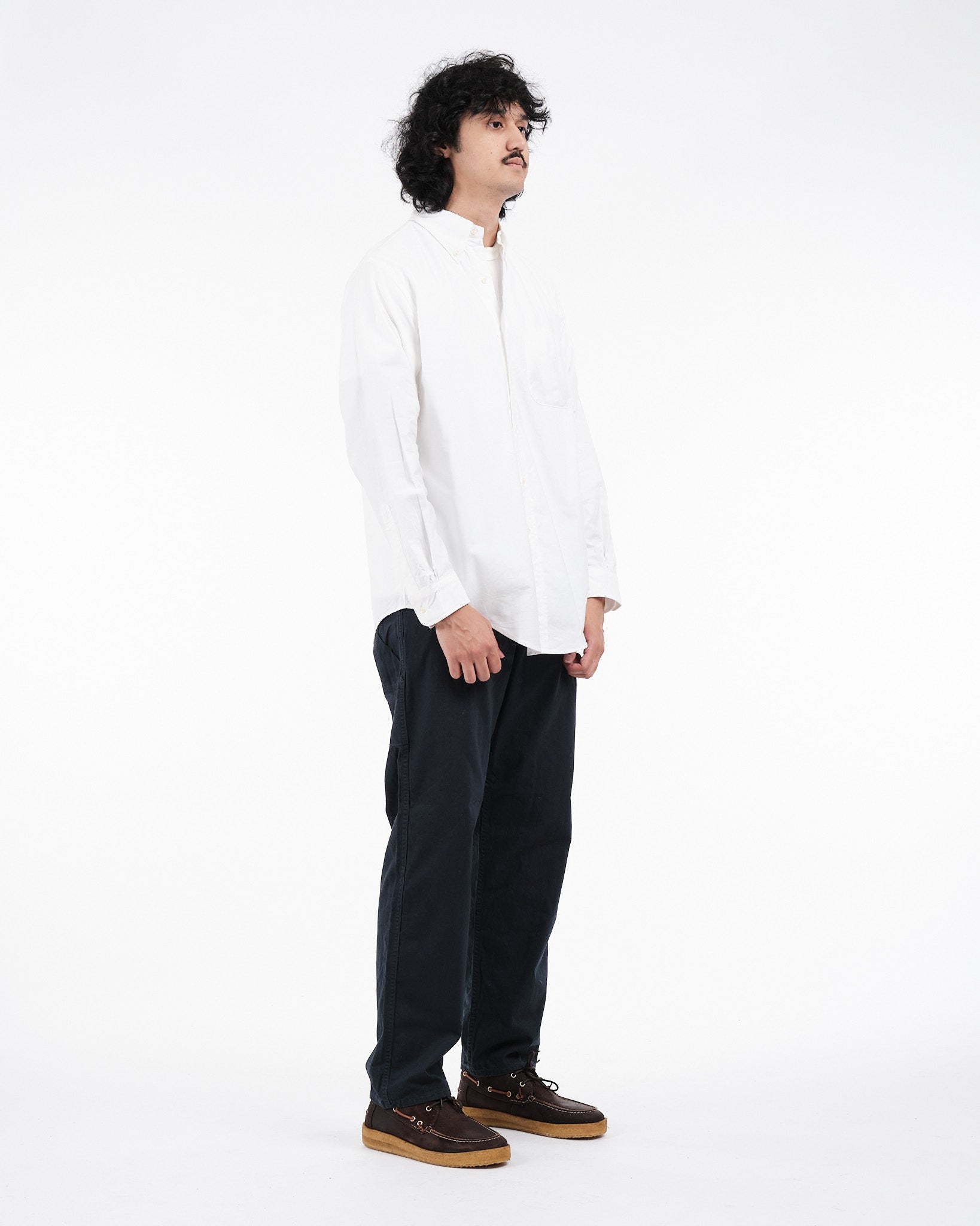 La orSlow Chemise Blanche Oxford à Boutons Standard apporte une élégance intemporelle au quotidien. Confectionnée au Japon à partir de tissu oxford japonais 100% coton de première qualité, cette chemise combine durabilité et confort. Sa coupe décontractée, offrant amplement d'espace au niveau du torse et des bras, assure une aisance de mouvement tout en maintenant une silhouette classique. Avec un col boutonné, une poche poitrine unique, et des poignets boutonnés, elle reflète le style des cols blancs américains des années 1950. Le pli creux prononcé au dos en rehausse la forme, et l'ourlet arrondi offre des options de style polyvalentes. Parfaite pour les occasions décontractées comme semi-formelles, cette chemise incarne l'engagement de orSlow envers la mode durable et l'artisanat de qualité.