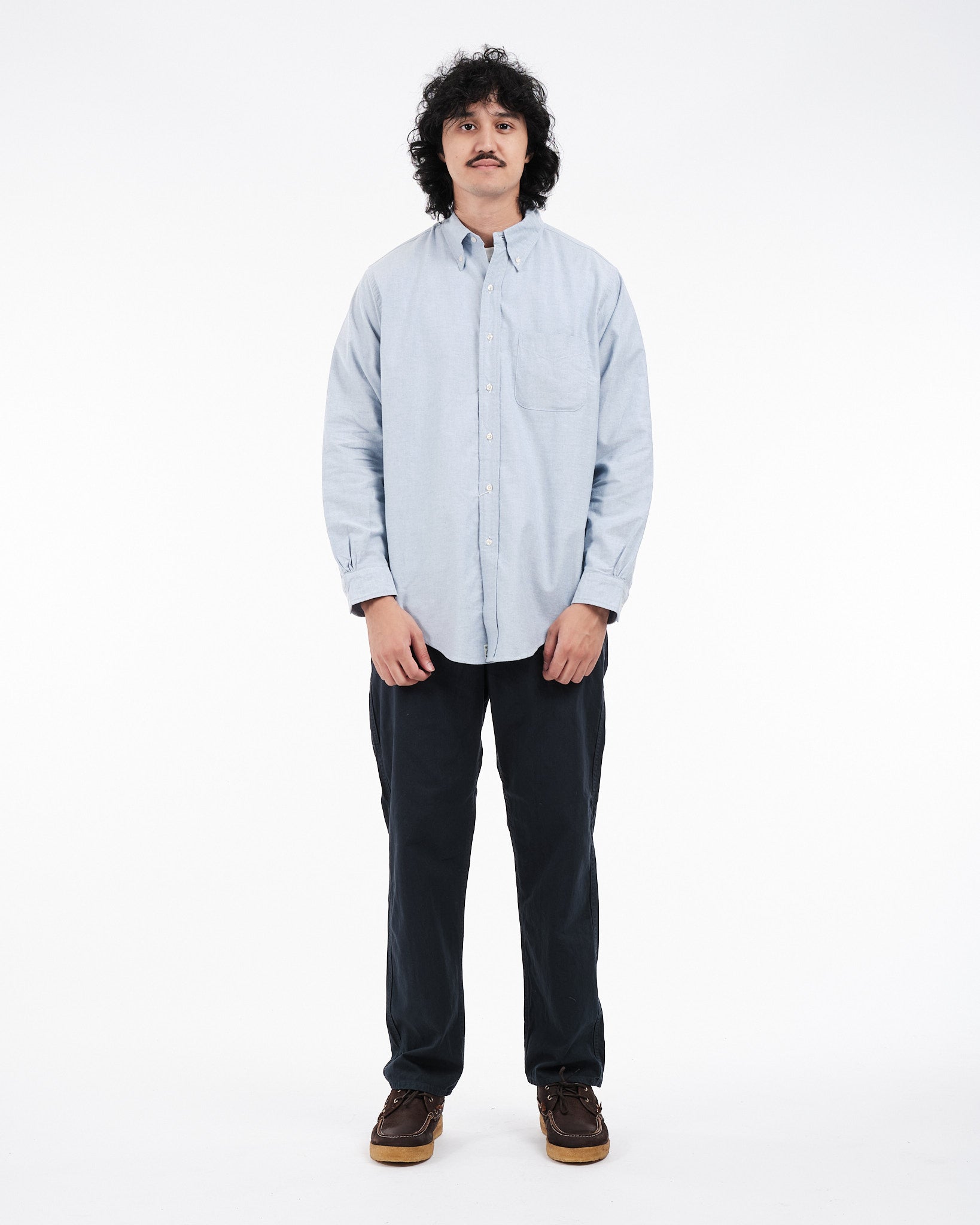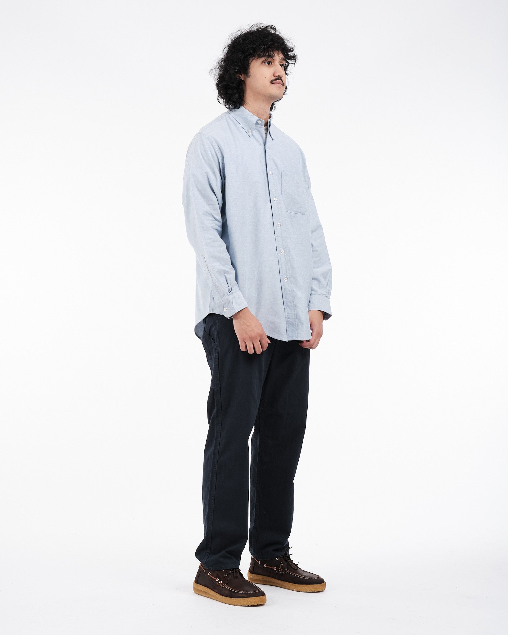 Présentation de l'élégance intemporelle de la CHEMISE BOUTONNÉE BLEU CLAIR STANDARD d'orSlow. Faisant écho aux chemises de travail col blanc américaines des années 1950, ce chef-d'œuvre est confectionné dans un tissu oxford japonais sur mesure dans une nuance de bleu clair apaisante. Sa coupe décontractée, complétée par un col confortable et un espace ample au niveau de la poitrine et des bras, promet un confort inégalé. Le pli dans le dos de la chemise assure une fluidité de mouvement et offre un tombé soigné, la rendant parfaite pour être rentrée dans le pantalon ou portée lâche. Son ourlet arrondi distinctif offre une polyvalence pour les deux styles. Conçue en 100% coton, le tissu de poids moyen a une touche de rigidité qui s'adoucit magnifiquement avec le temps. Représentant l'engagement de OrSlow à redéfinir les classiques indispensables, cette chemise est un ajout essentiel à toute garde-robe moderne, méticuleusement fabriquée au Japon.
