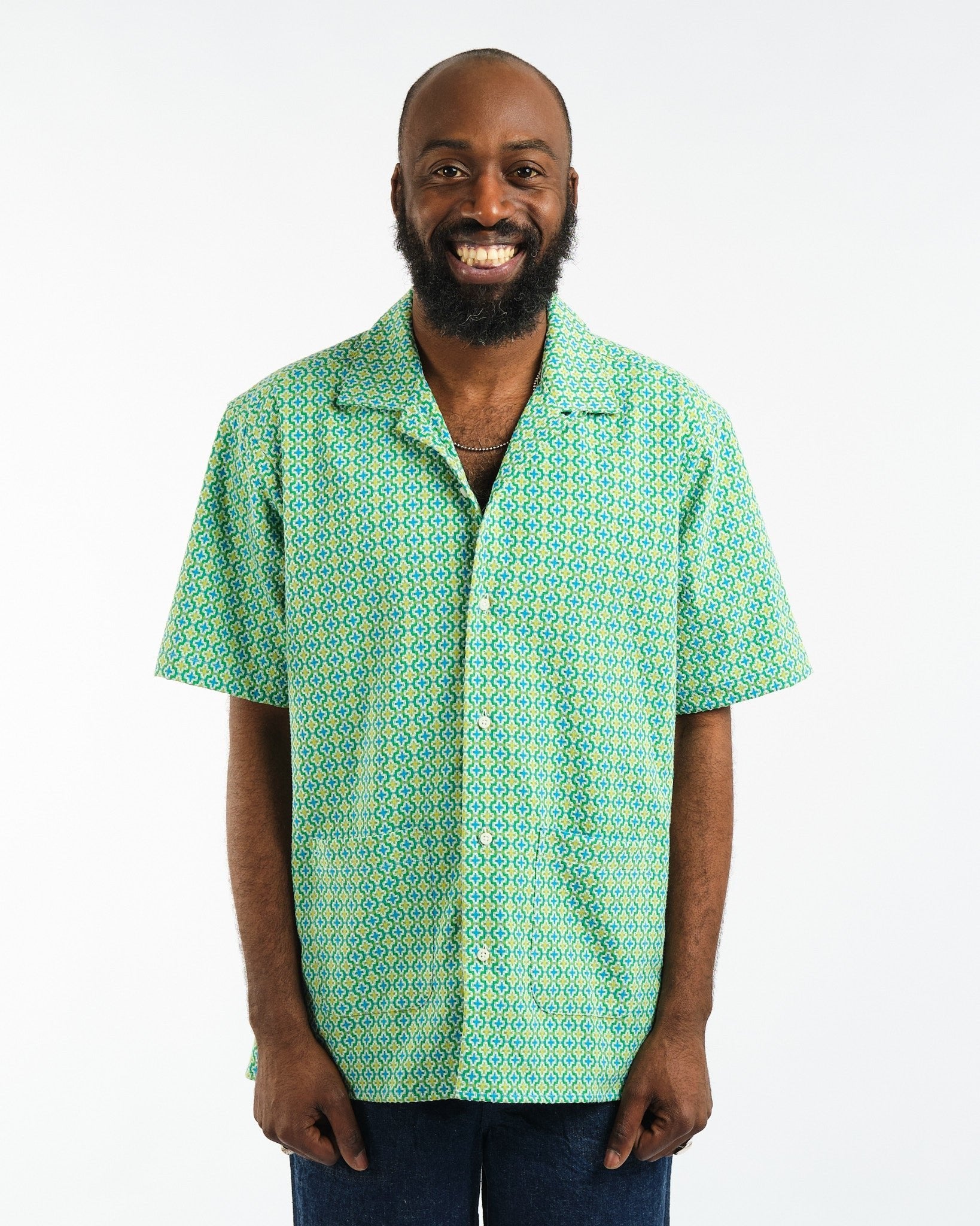 Beach Shirt Green Summer Ready Jaquard