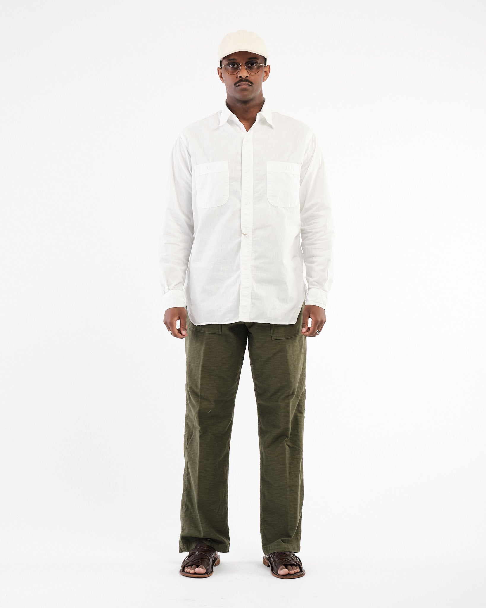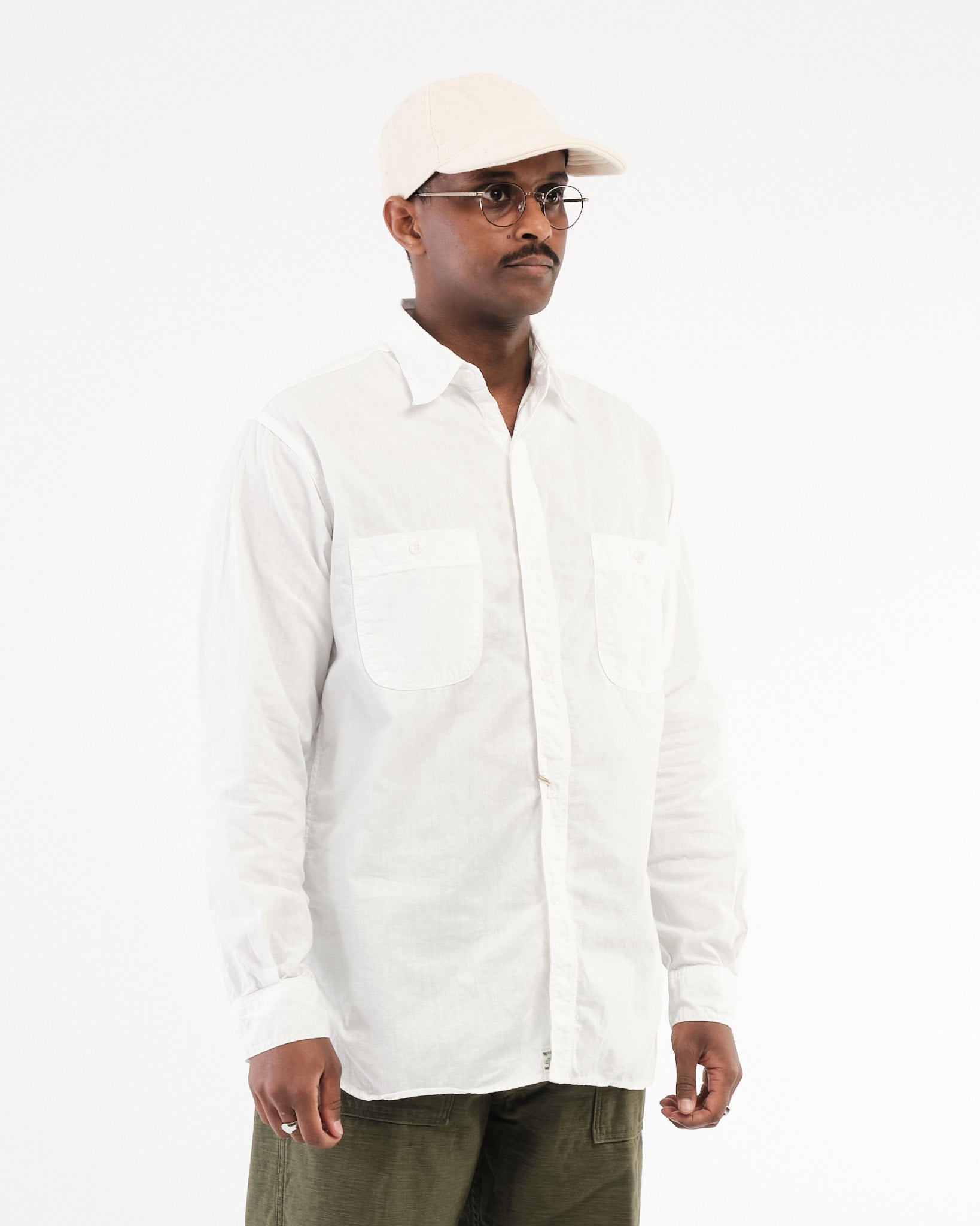 La orSlow Chemise de Travail en Chambray Blanc Coupe Détendue en Blanc est une interprétation raffinée du vêtement de travail classique, méticuleusement conçue pour offrir à la fois confort et durabilité. Fabriquée à partir de tissu chambray 100% coton de première qualité, cette chemise offre une sensation douce et respirante, la rendant idéale pour un port toute l'année.