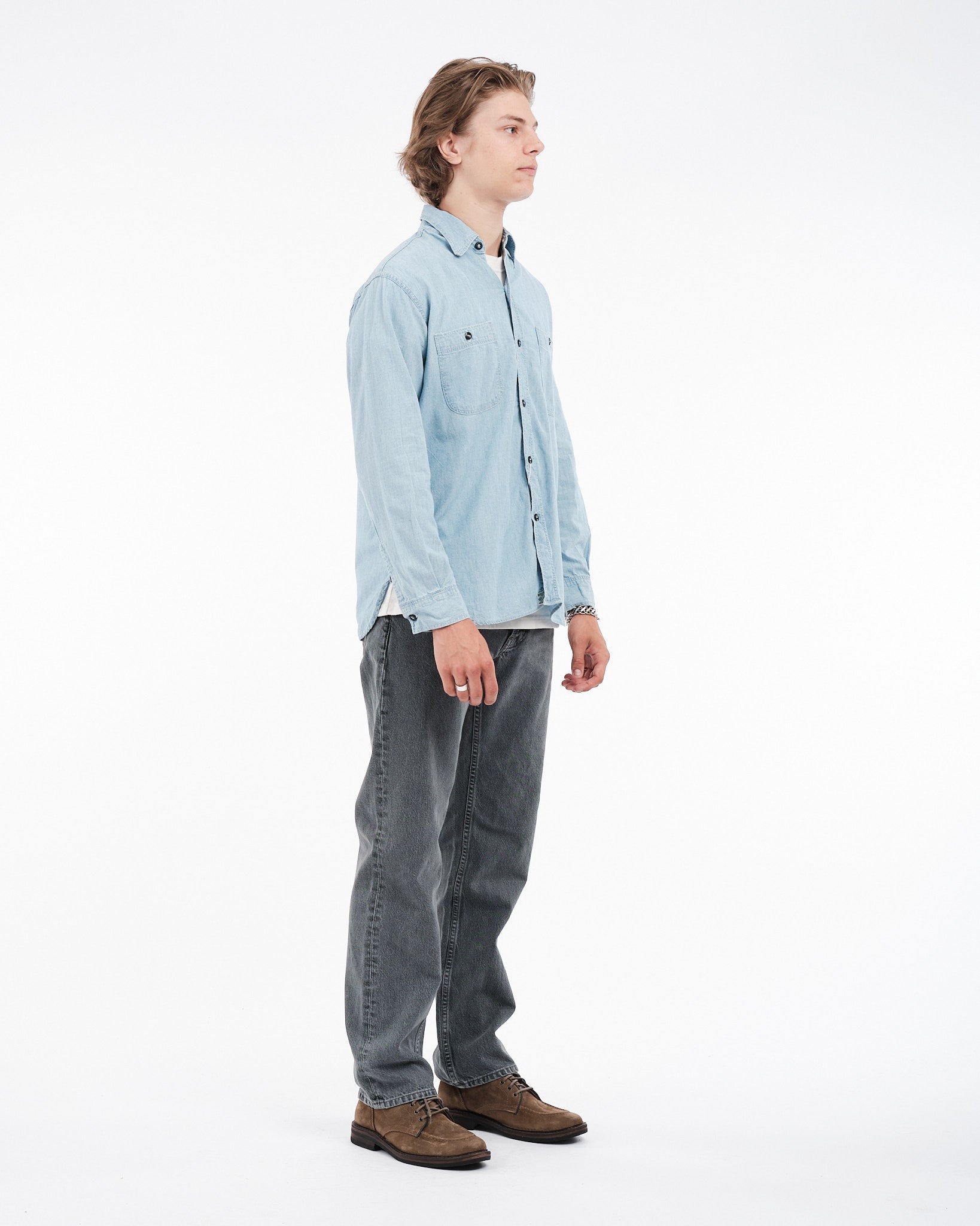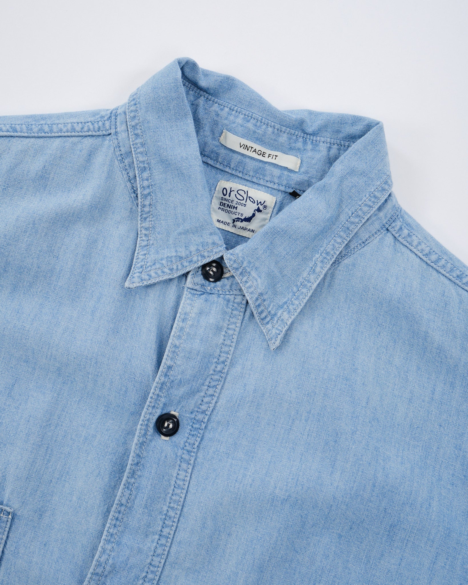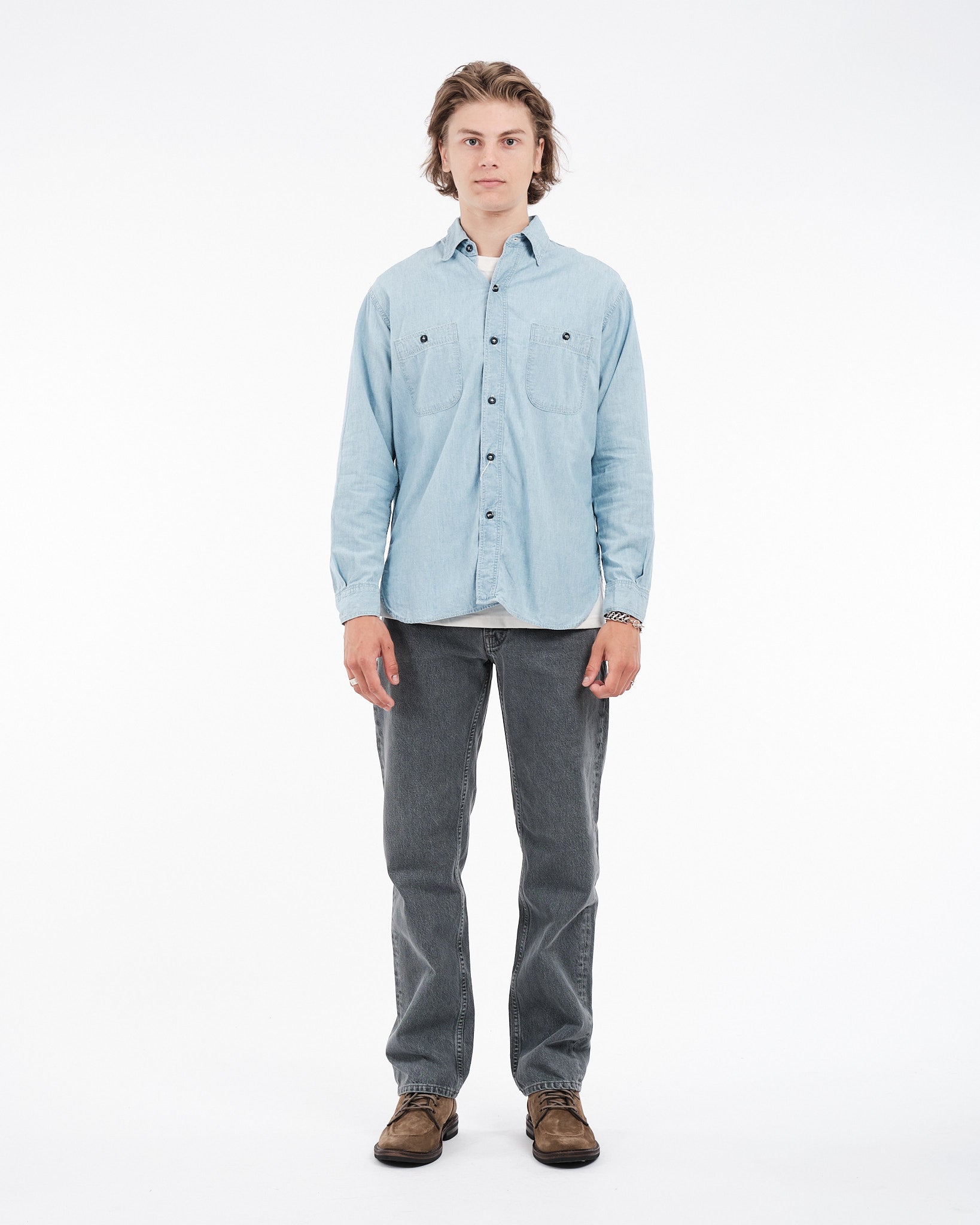 VINTAGE FIT CHAMBRAY WORK SHIRT USED WASH BLEACHED