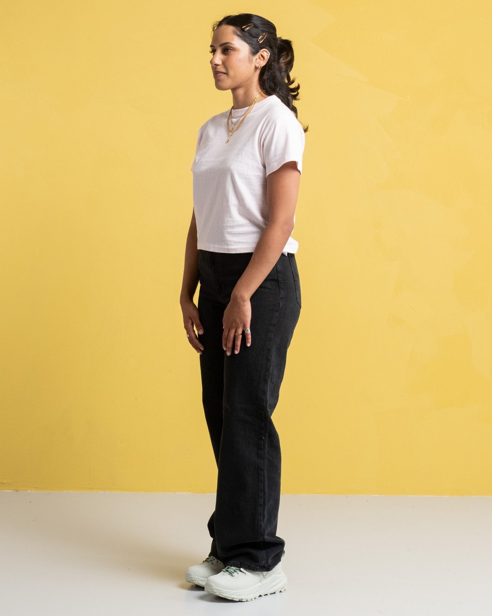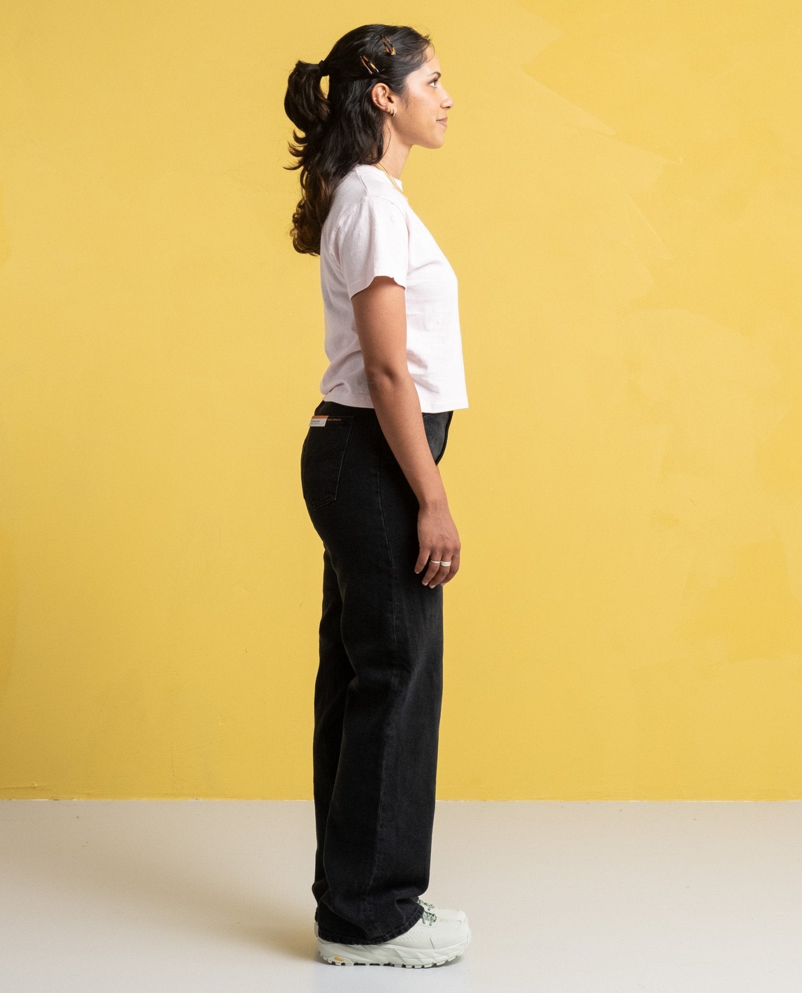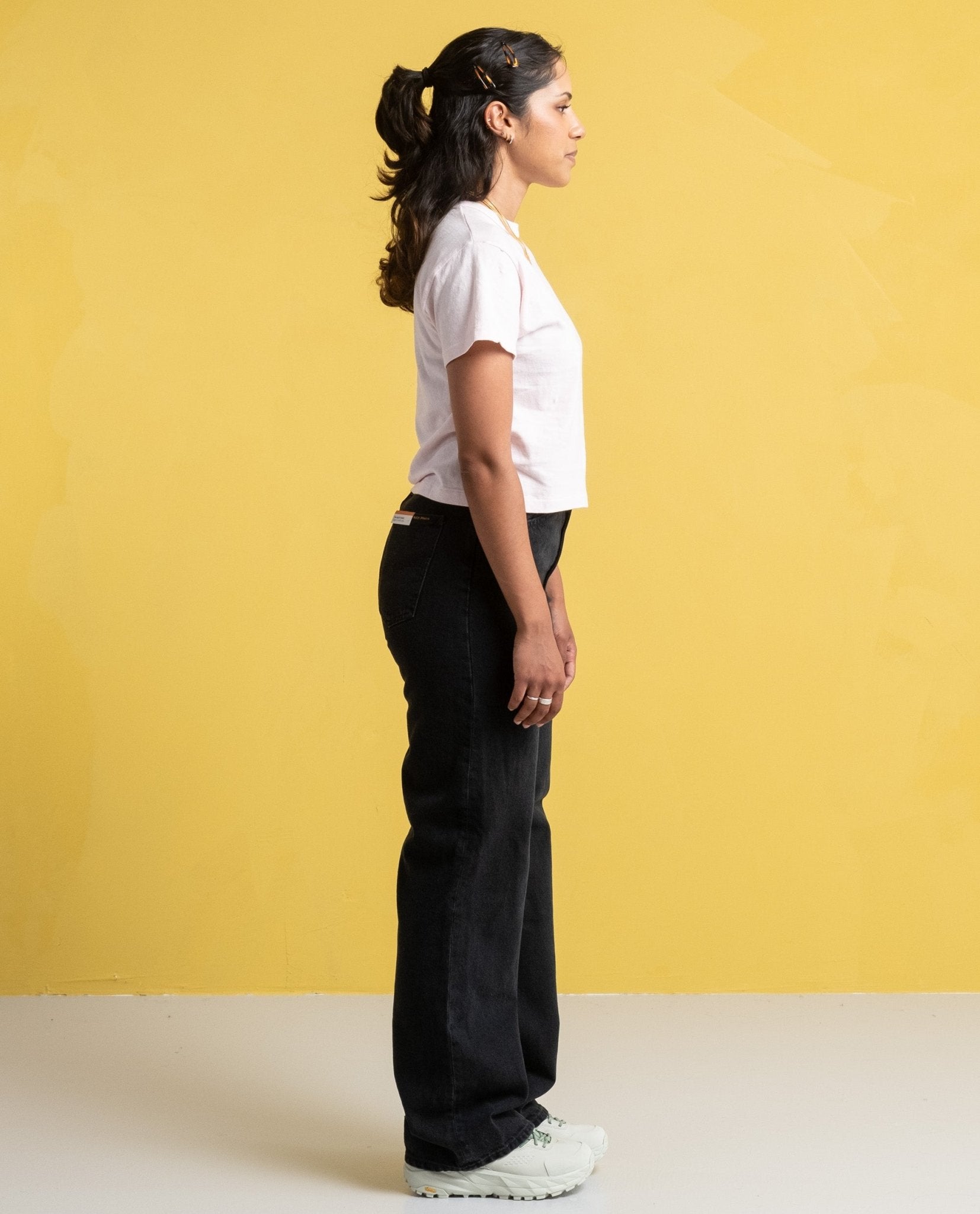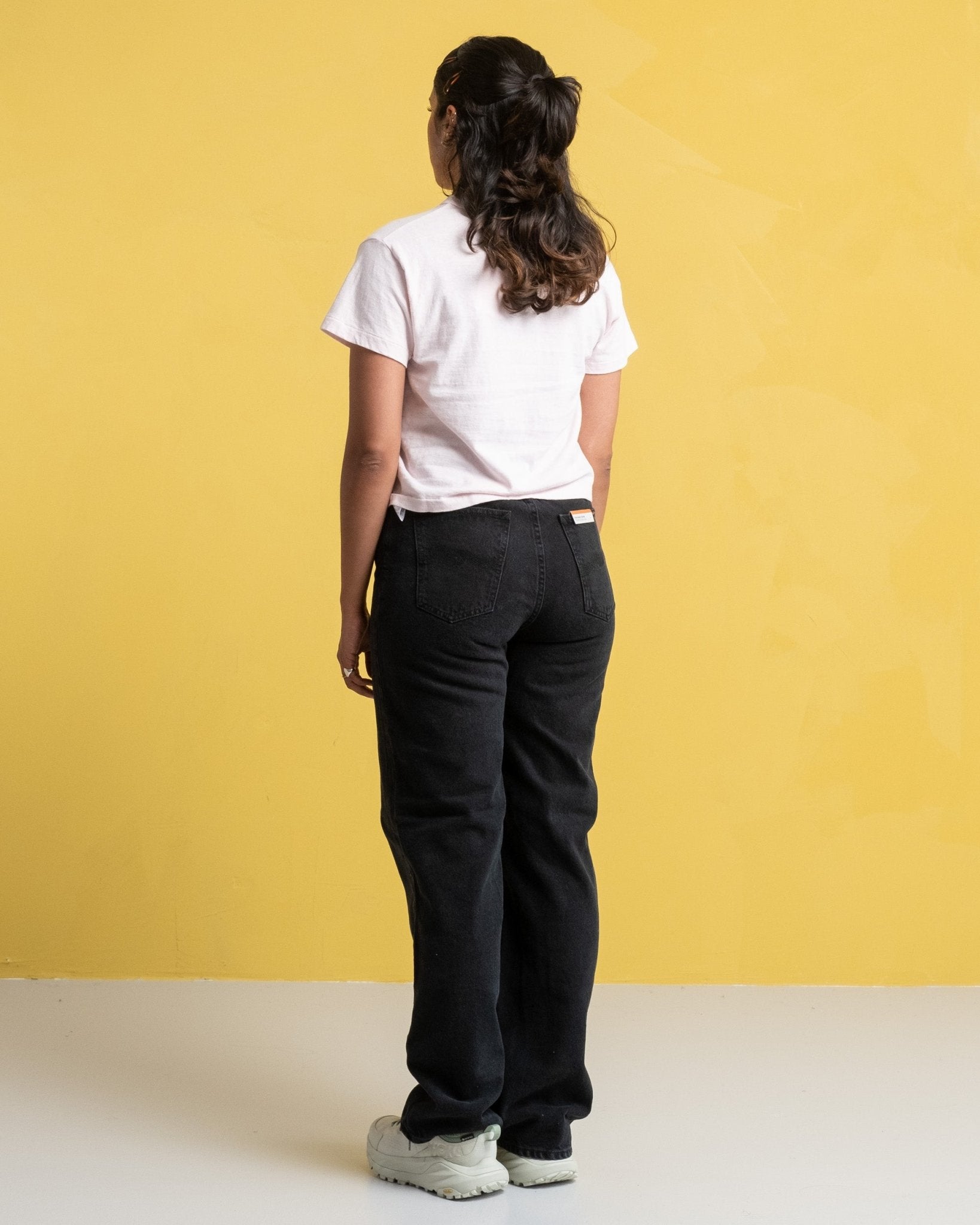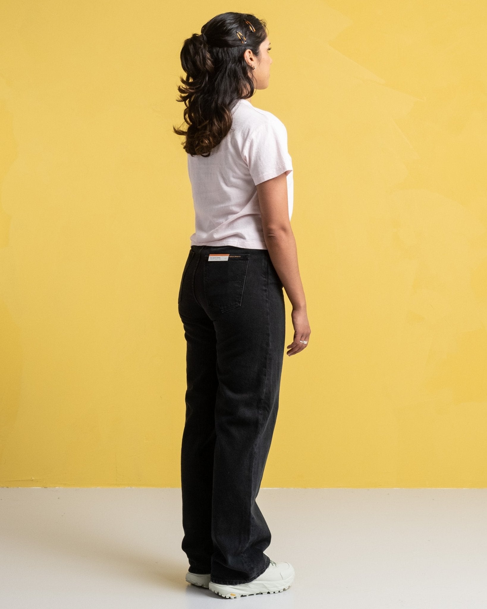 Clean Eileen a lavé le noir de Nudie Jeans Co. Jeans en vrac pour femmes avec une taille haute et des jambes larges. Ici, dans un joli lavage noir avec un look subtil usé. Fait à partir de 100% de coton biologique. Fabriqué en Tunisie.