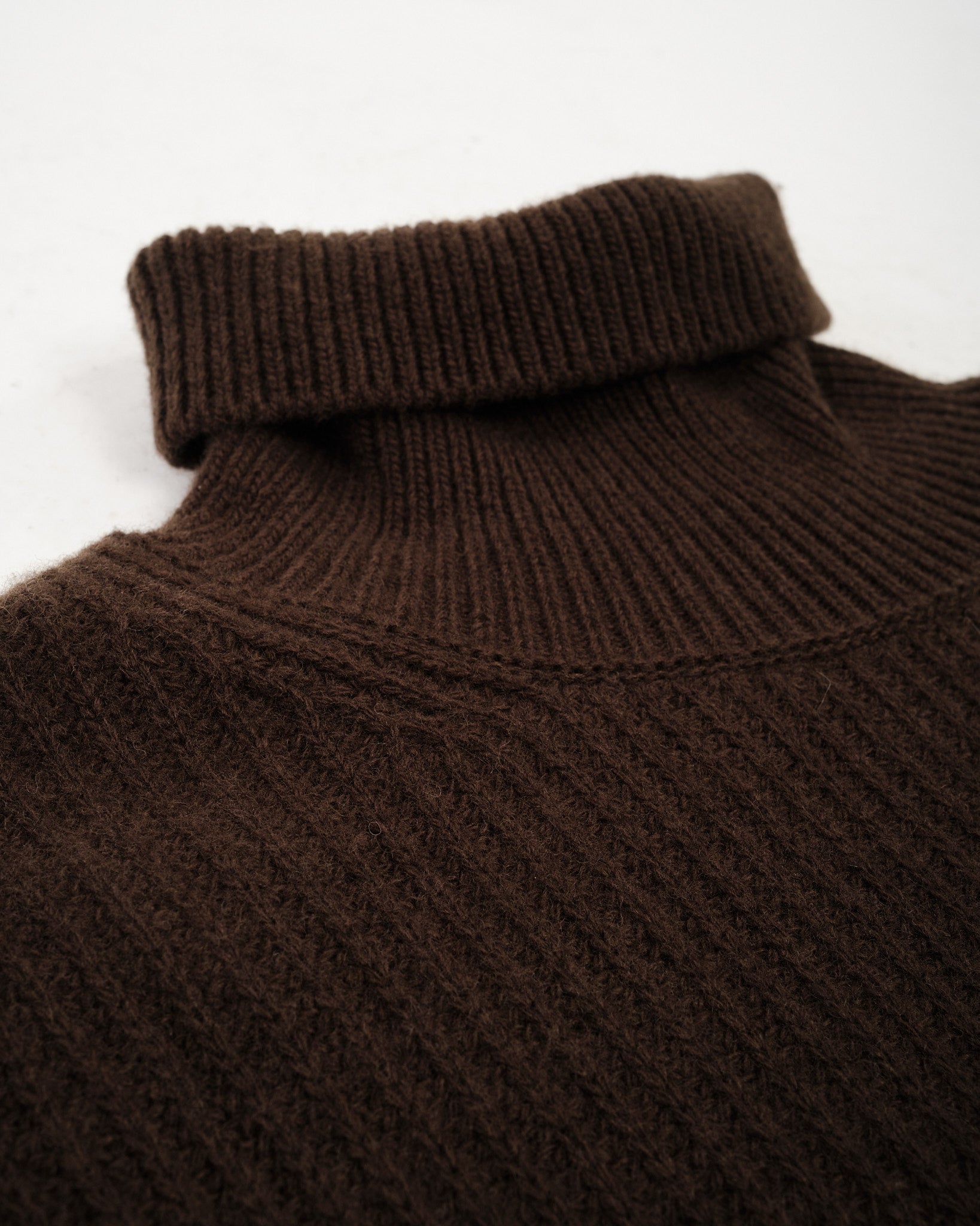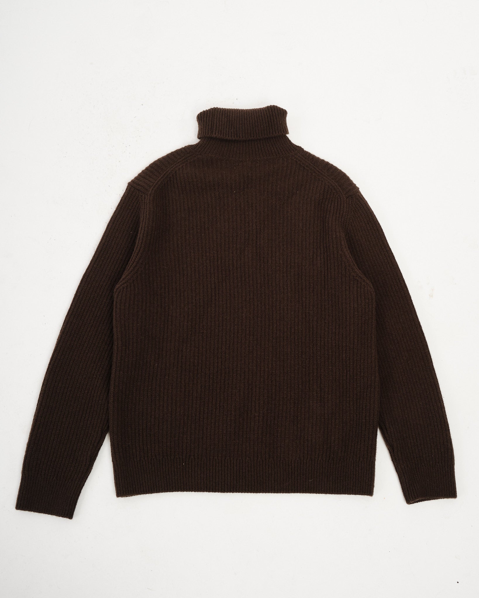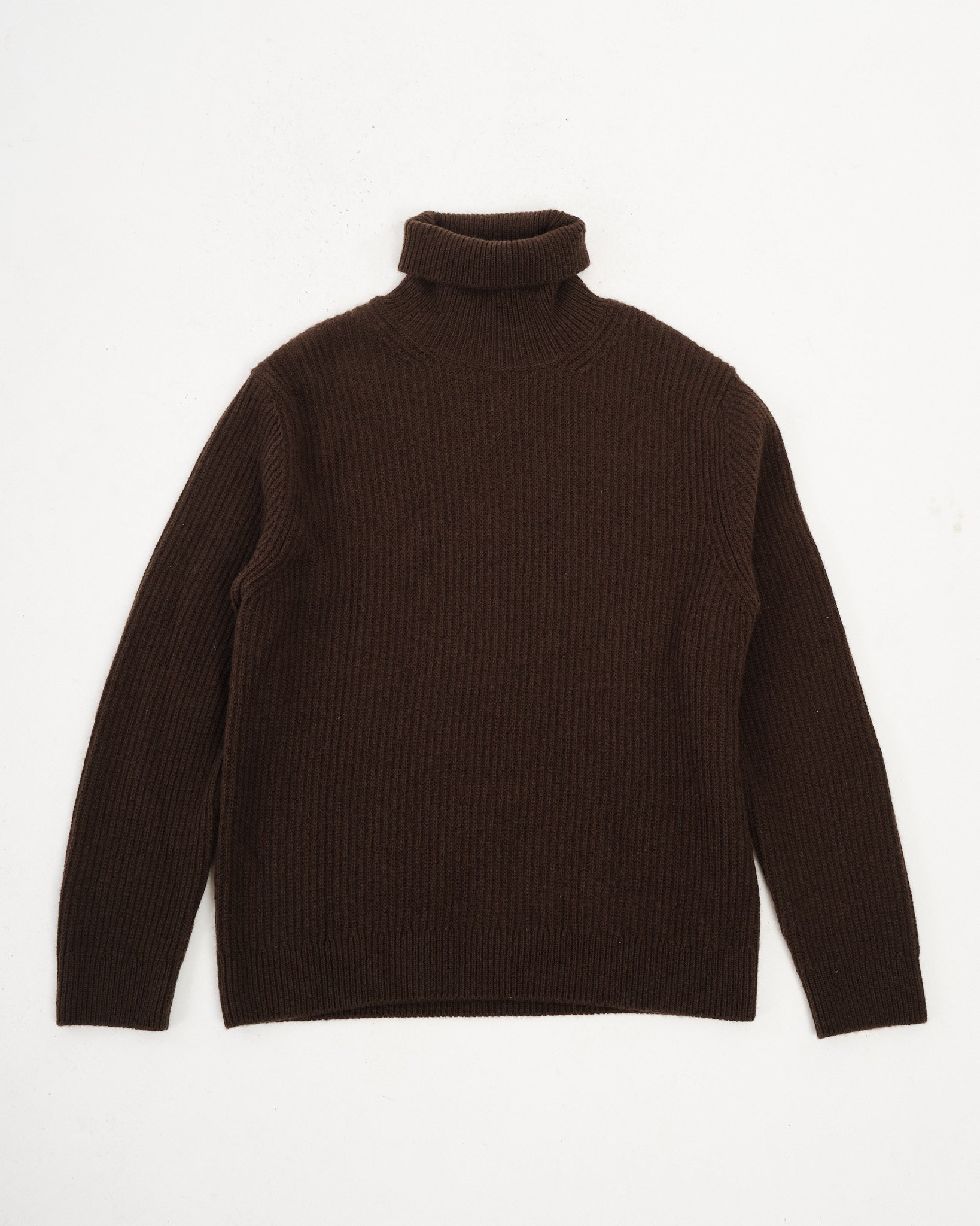 Le pull à cou de couleau d'août est fait avec de la laine biologique. La technique de tricot est appelée point de cardigan complet. Il ressemble à une côte mais donne un tricot plus complet avec un Pays de Galles plus distinct. Le tricot offre un combo de chaleur et de légèreté caractéristique des vêtements en laine. Fabriqué en Turquie