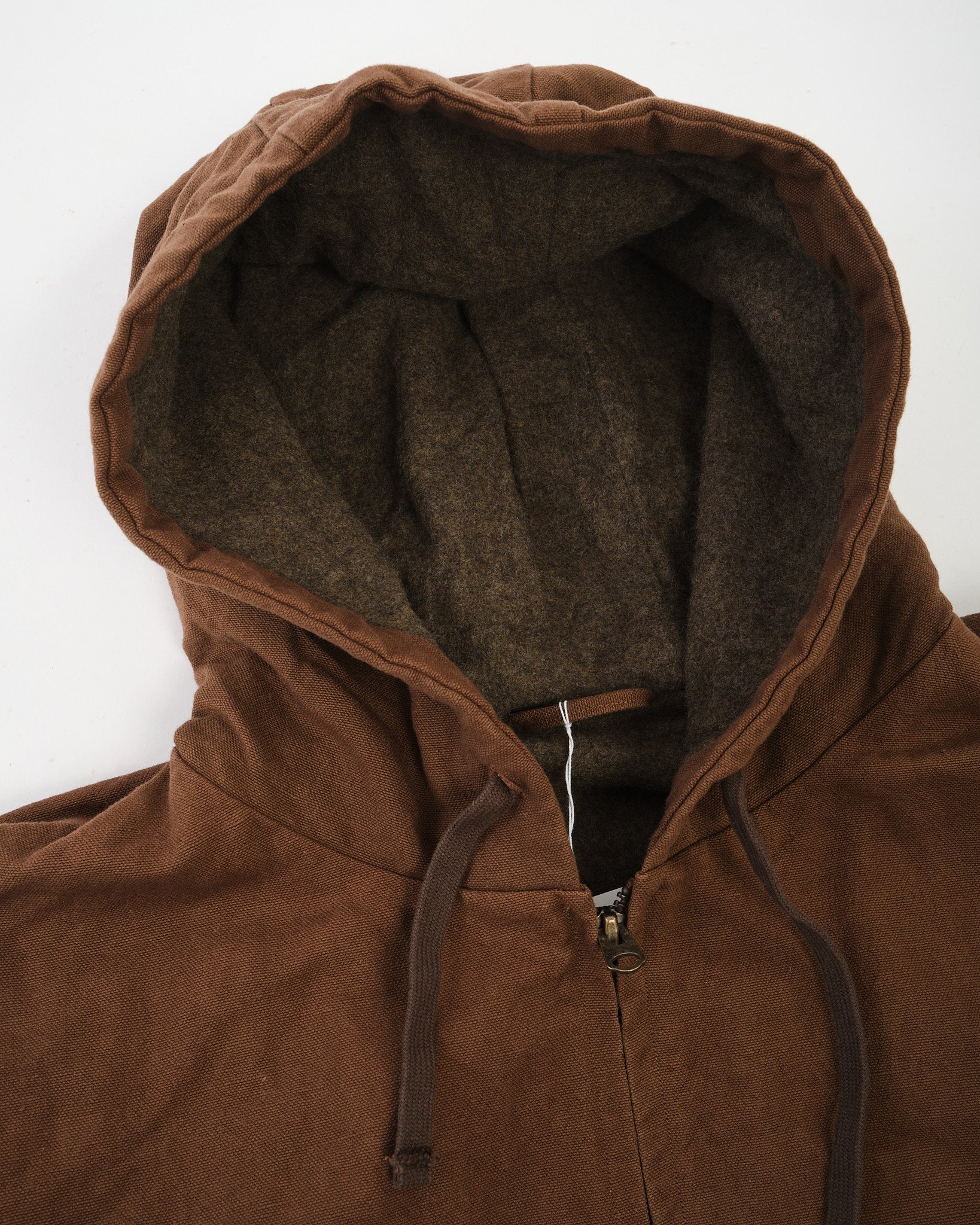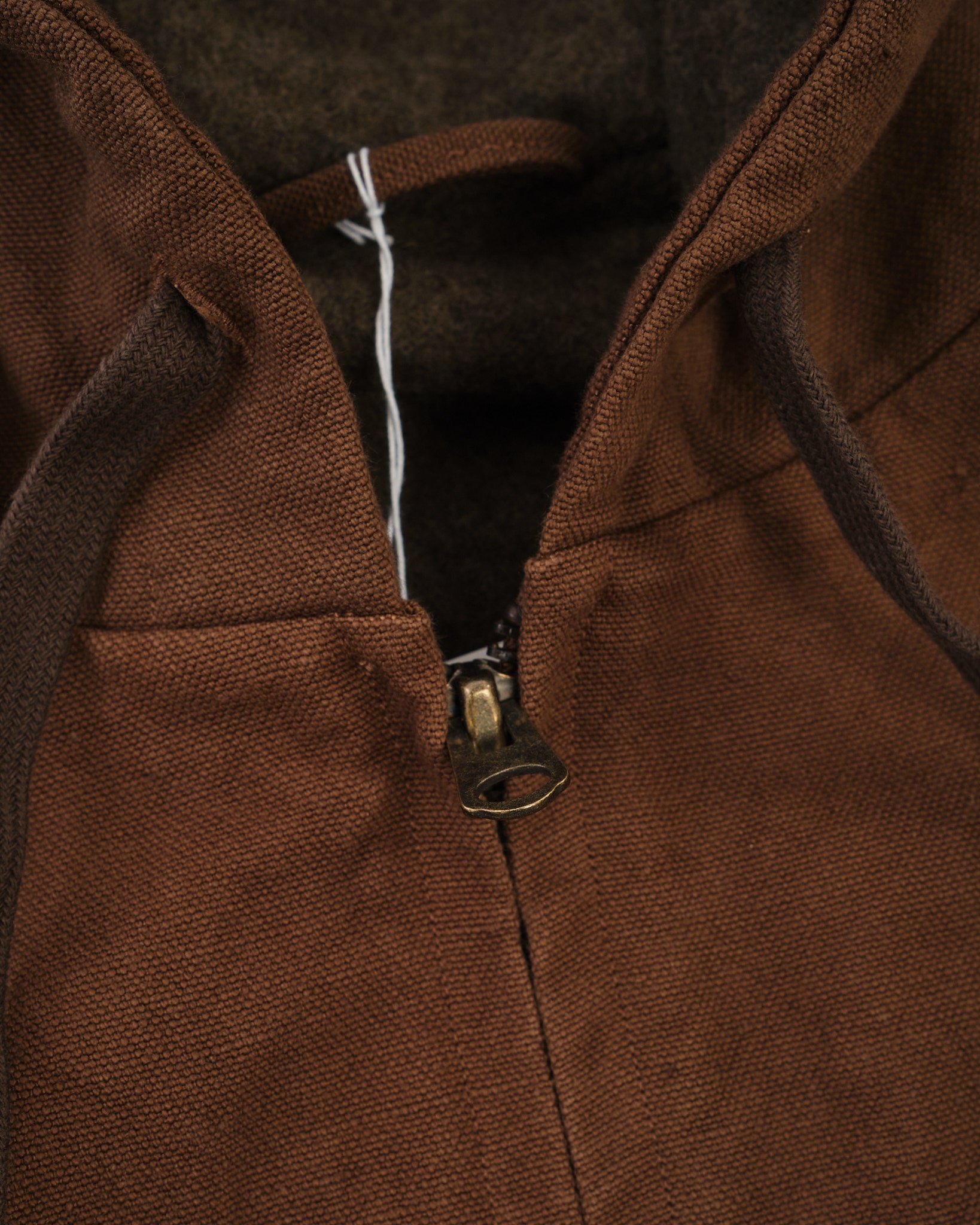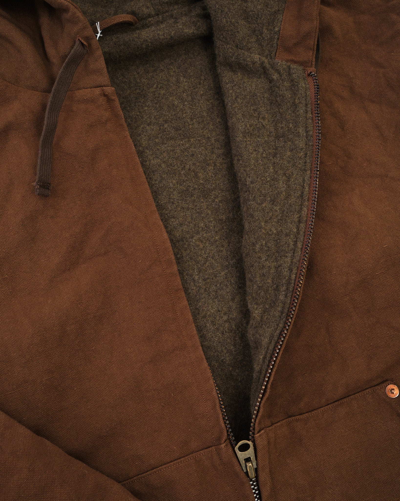 Le Kaptain Sunshine Cotton Chanp Hoody Veste (KS25FJK15) dans Kakishibu combine la durabilité avec un esthétique vintage. Fait à partir d'un tissu oxford lourd, cette veste est tissée avec épaisse chariot en coton et trame de chanvre dans un tissage à haute densité. C'est Lavé plusieurs fois sans tension, créant un texture douce et volumineuse qui lui donne un sensation luxueuse et confort. La veste est spéciale processus de teinture lui donne un riche, finition vintage, s'assurer qu'il vieillit magnifiquement au fil du temps.