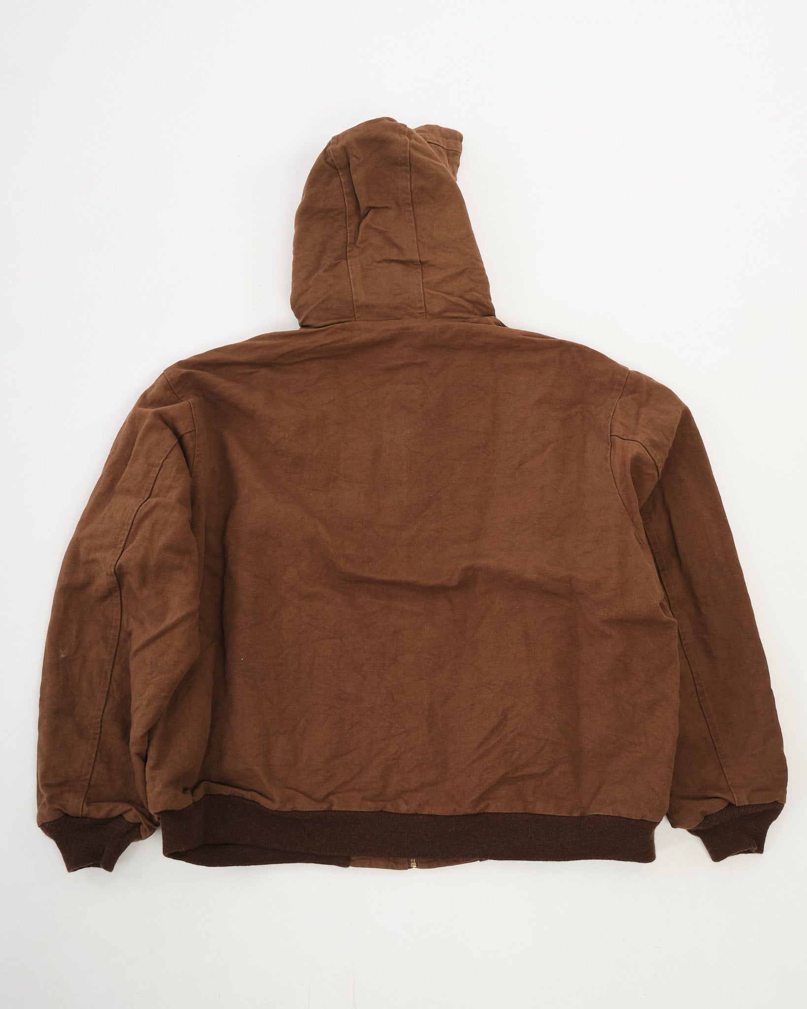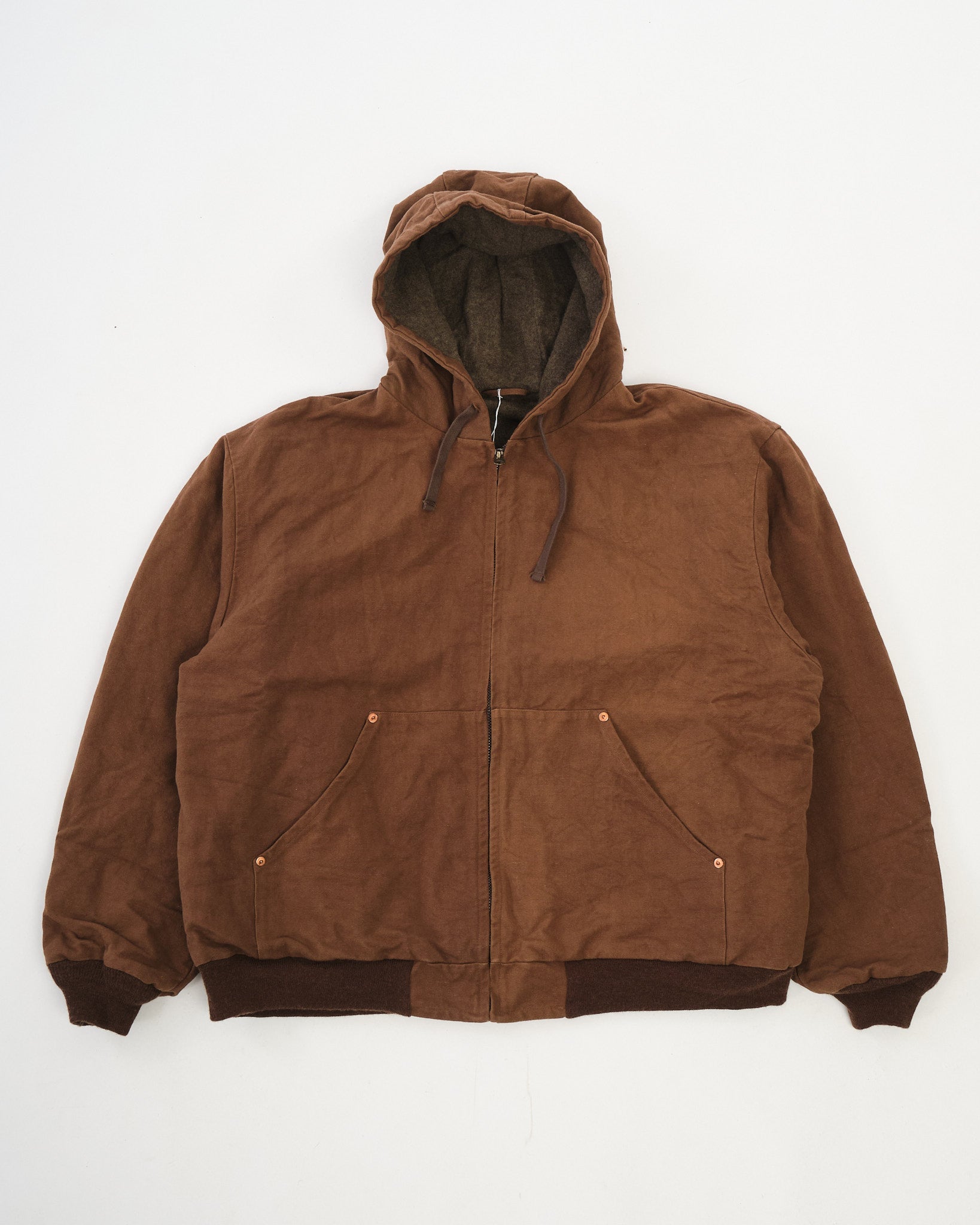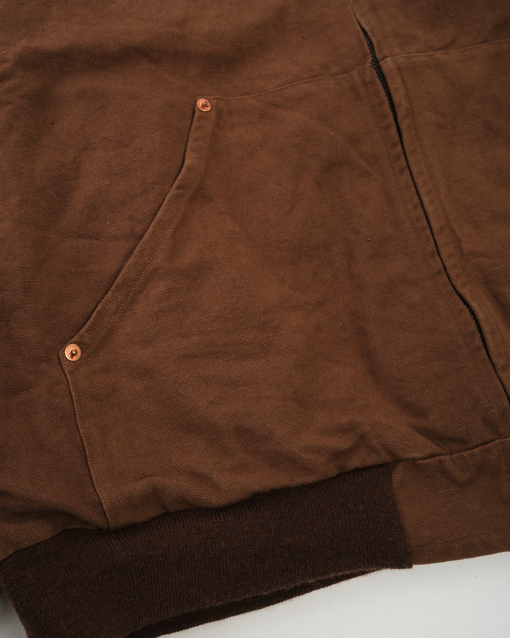 Le Kaptain Sunshine Cotton Chanp Hoody Veste (KS25FJK15) dans Kakishibu combine la durabilité avec un esthétique vintage. Fait à partir d'un tissu oxford lourd, cette veste est tissée avec épaisse chariot en coton et trame de chanvre dans un tissage à haute densité. C'est Lavé plusieurs fois sans tension, créant un texture douce et volumineuse qui lui donne un sensation luxueuse et confort. La veste est spéciale processus de teinture lui donne un riche, finition vintage, s'assurer qu'il vieillit magnifiquement au fil du temps.
