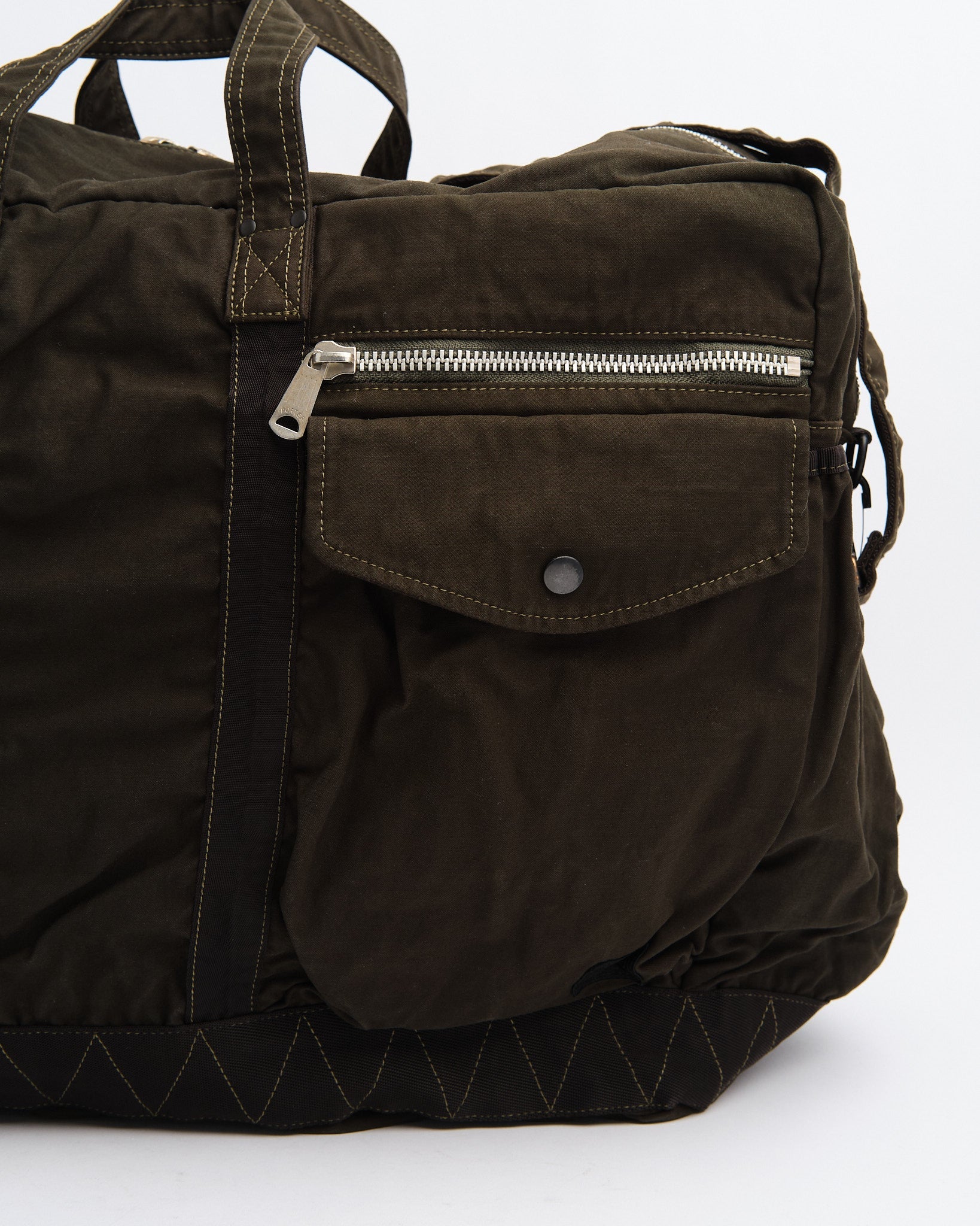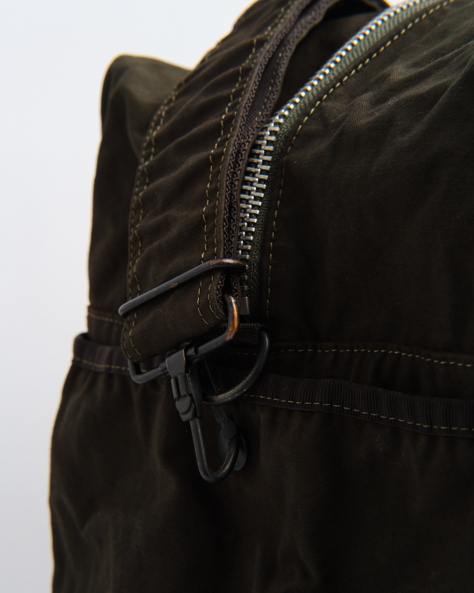 Le PORTER BY YOSHIDA Sac Boston 2-Voies (L) en Kaki fait partie de la série PORTER CRAG, réputée pour son processus unique de teinture de produit qui résulte en des couleurs profondes, riches et une texture distinctive. Fabriqué à partir de tissu en satin de dos, un mélange haute densité de nylon et de coton, ce sac à dos est durable, tout en offrant une texture douce et ferme. La technique de teinture en deux bains améliore la profondeur de la couleur et assure des variations subtiles, donnant à chaque pièce son propre caractère unique.