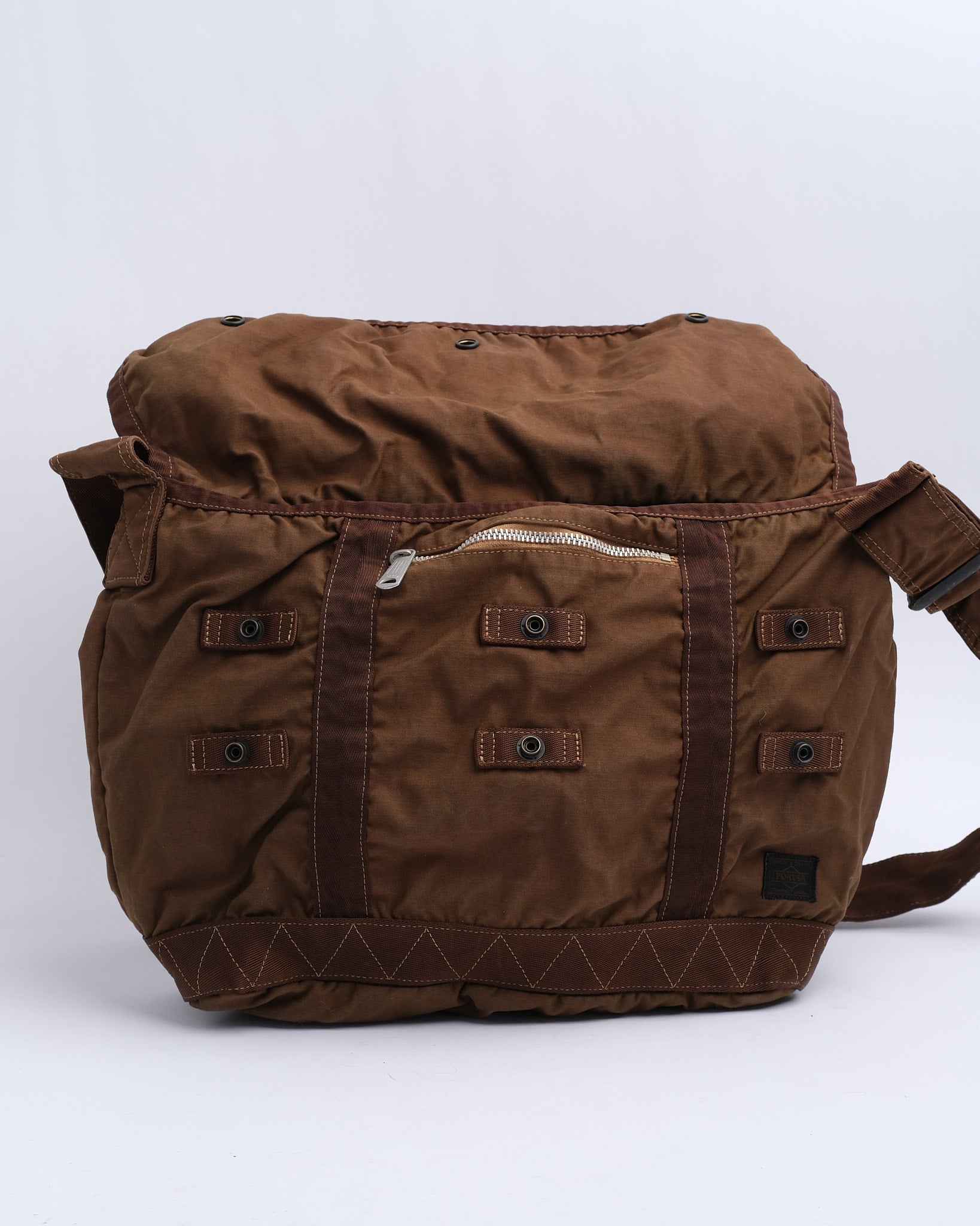 Le PORTER BY YOSHIDA Sac Messager Crag (M) en Coyote fait partie de la série PORTER CRAG, connue pour sa technique unique de teinture de produit qui crée des couleurs riches, profondes et des textures distinctives. Fabriqué à partir de tissu en satin arrière, un mélange dense de nylon et de coton, le sac est durable mais léger. La technique de teinture en deux bains produit des teintes multidimensionnelles et des variations subtiles dans chaque sac, assurant qu'aucun n'est exactement identique.