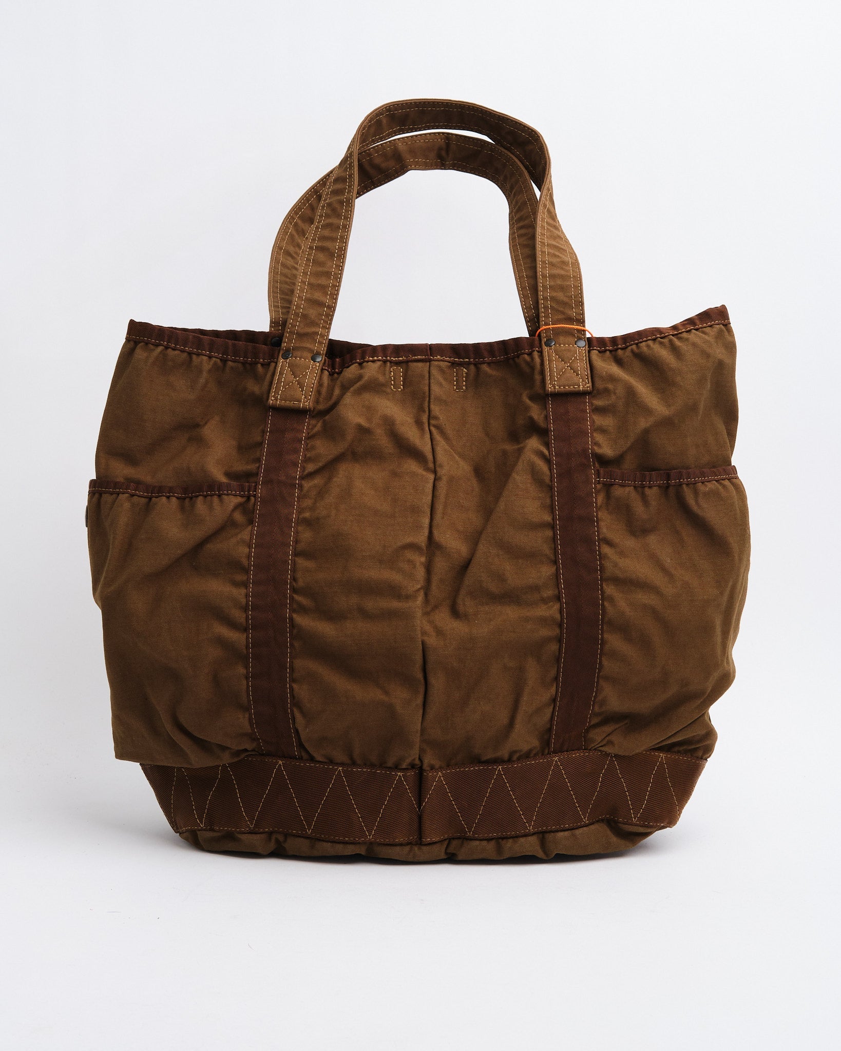 Le Porter par Yoshida Crag Tote Bag (540-19643-40) fait partie du Rasage de portier Series, connues pour son processus unique de dyeing de produit qui crée des couleurs et des textures riches profondes. À partir de tissu satiné arrière, un mélange haute densité de nylon et de coton, le sac est à la fois durable et léger. Le Teinture à deux salles de bain La technique assure des teintes multidimensionnelles et des variations naturelles, ce qui rend chaque sac distinct.